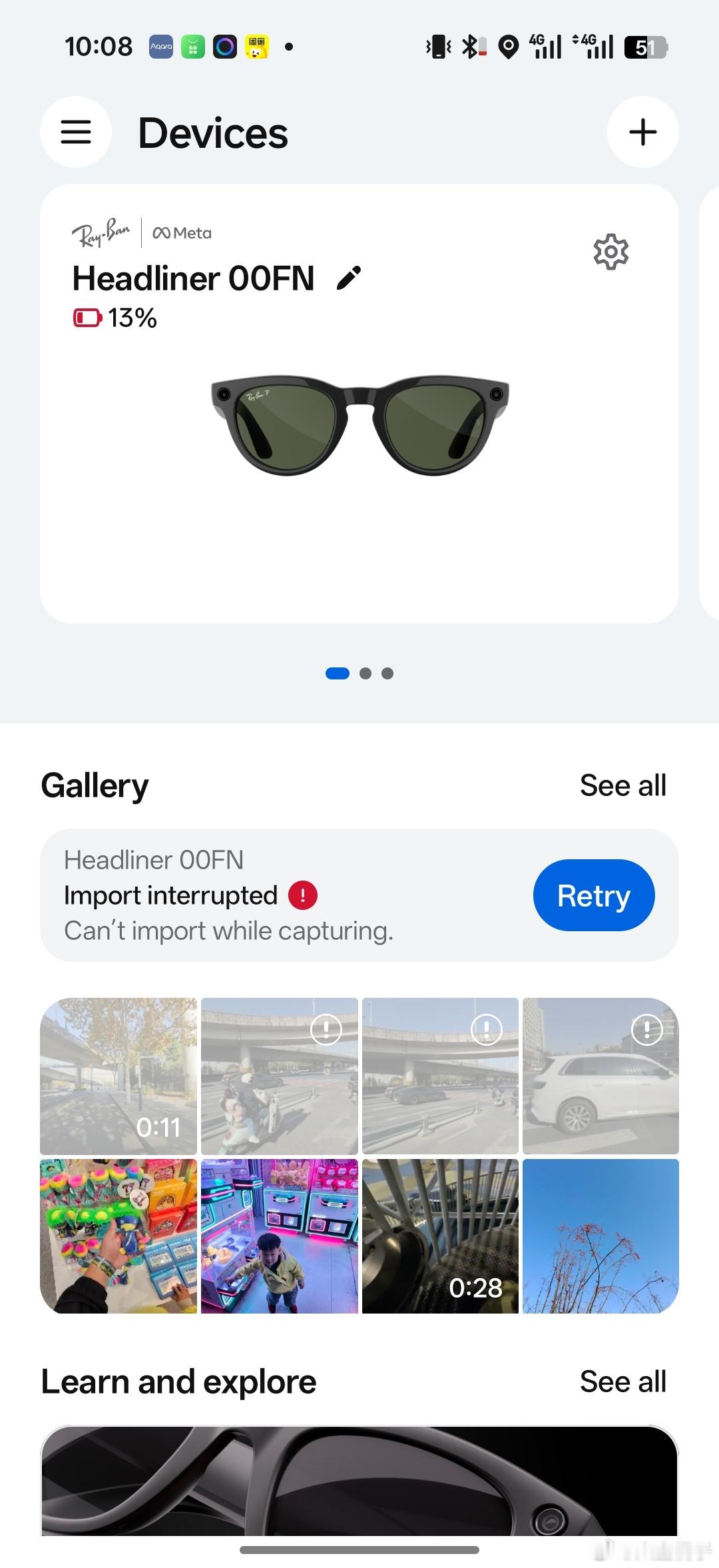 看来智能眼镜的电池在冬天也不抗冻啊,出门的时候电量大约有70%多,然后拍了三张照片,只剩50%,又拍了个10秒的小视频,电量直接到0主要今天也不冷啊体感也就10°左右吧如果到东北去玩那眼镜的续航不靠谱啊