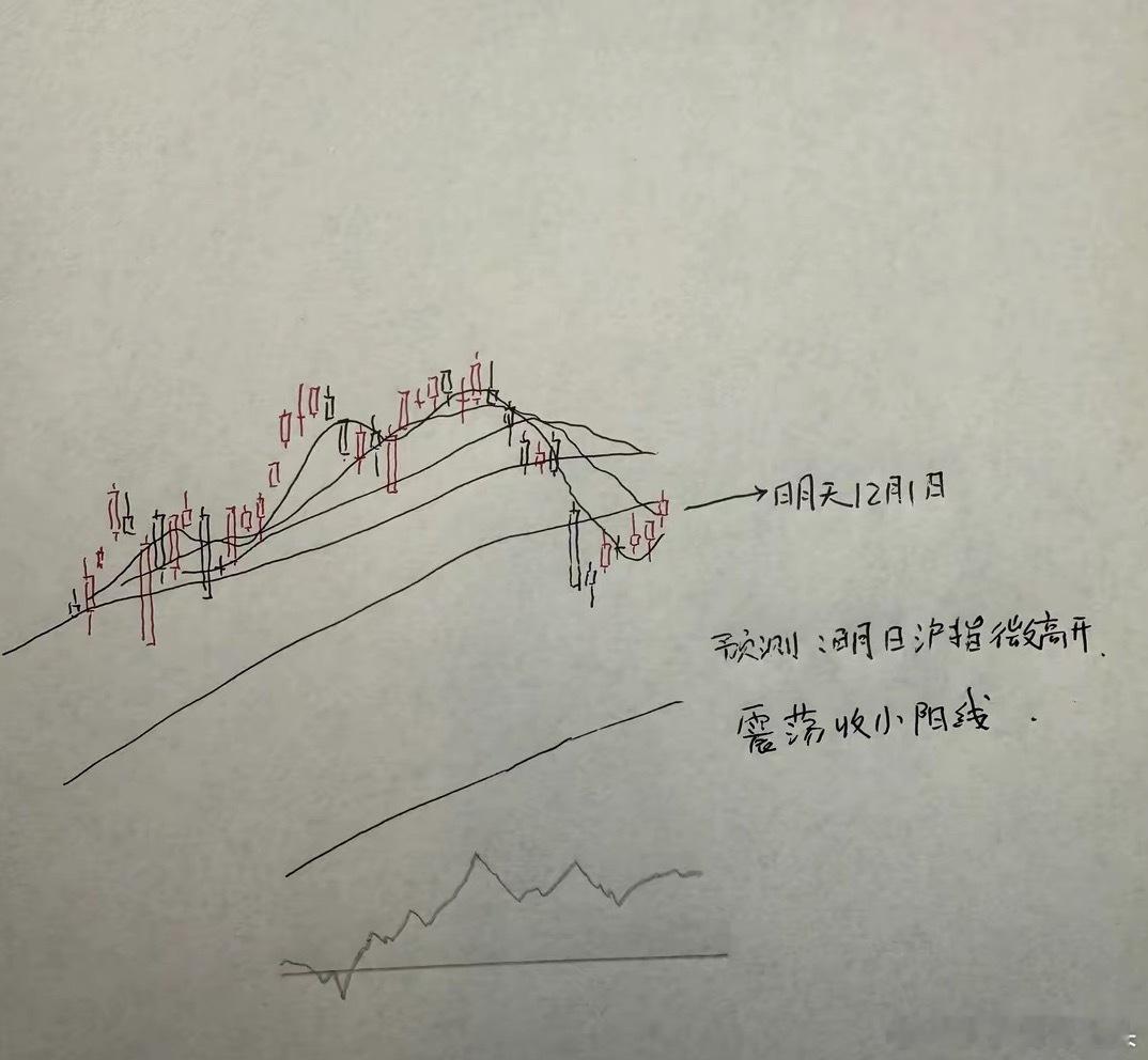 明天A股怎么走?莎莎的判断是再一次收阳线,大家来听听莎莎的三个具体理由第一,本周星期四,三大指数都出现了非常明显的冲高回落,杀尾盘的走势。但是本周星期五,三大指数又完成了探底回升对星期四上影线进行修复的走势。星期五的走势,直接说明了超短线来看,主力的意图还是要往上去走一走的。第二,三市的成交额在星期五的时候,萎缩到只有1.6万亿的水平。这个成交量的水平可以说是大半年以来的极限地量水平。而一般到达地量水平的时候,往往很有可能是行情出现大转折的时候。所谓“地量地价”,说明了地量出现的时候,很可能主力将会再次出手,重新激活市场的人气,激活市场的行情。第三,本周五个交易日,从三大指数的角度来看,整体都出现了重心缓步上移的走势。这种重心缓慢上移,小阴小阳的走法,从历史的经验来看 往往有可能意味着短线出现突然加速行情。再者我们可以看到,周五晚上美股三大指数再次上行。日线级别,已经走出了五连阳的走势。外围市场持续走强,A股市场自然也没有单独走弱的理由。所以综合以上分析,莎莎认为明天上证指数或者还能走出一颗震荡上行的小阳线。高点有望挑战上周星期五跳空缺口,3912点附近。那么明天A股到底怎么走?大家请看下图,关于明天走势莎莎手绘的预测图对于市场走势的分析,莎莎多半从纯粹的技术面出发。对于消息面和基本面的分析则相对较少。所以我的观点不一定正确,仅代表个人见解,不代表任何投资建议!最后莎莎想要补充一点的是,最近一段时间以来,我一直强调市场的趋势,他是一步一步来自证的。也就是说,如果想要发现市场趋势,可能需要一点时间。而当足够的时间出现之后,市场的趋势也会逐渐变得明朗起来。就目前来看,我们通过耐心的观察,已经发现了短线市场重心上移的倾向性。所以我们不妨就大胆的顺势而为,继续向上看多。关注莎莎的朋友都知道,从4034点最高点以来,一直到3816点的最低点,这一段的下跌,我让大家都完全的规避了,而从3816开始的反弹,到目前为止,也基本上让大家完全把握到了。作为一个纯技术派的老手,个人认为还是比较靠谱的。兄弟朋友们点赞,评论➕关注就是对莎莎这个纯技术派的最大支持。