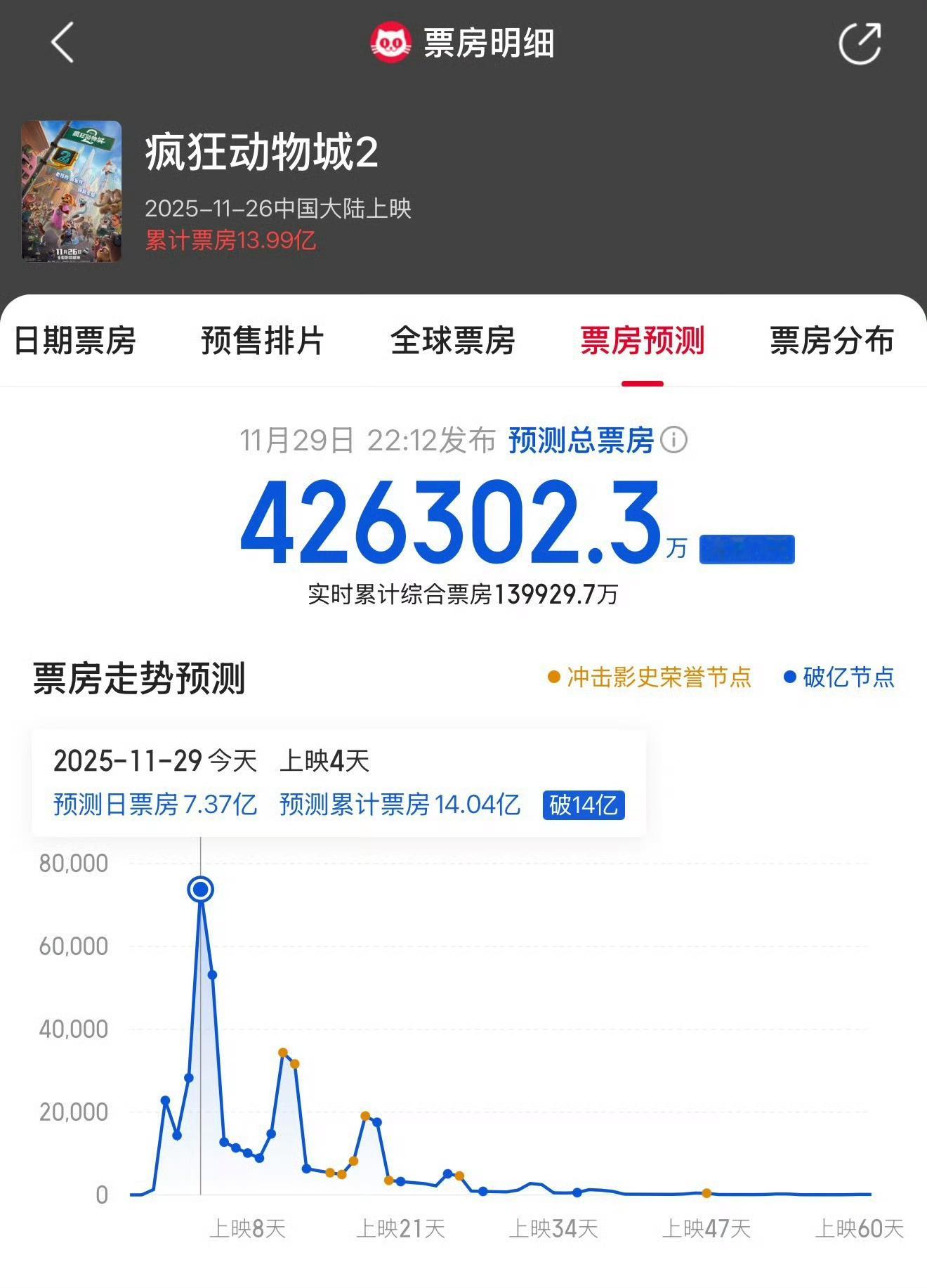 很少看到如此压倒性的一片独大局面……《疯狂动物城2》每天排片占比高达70%~80