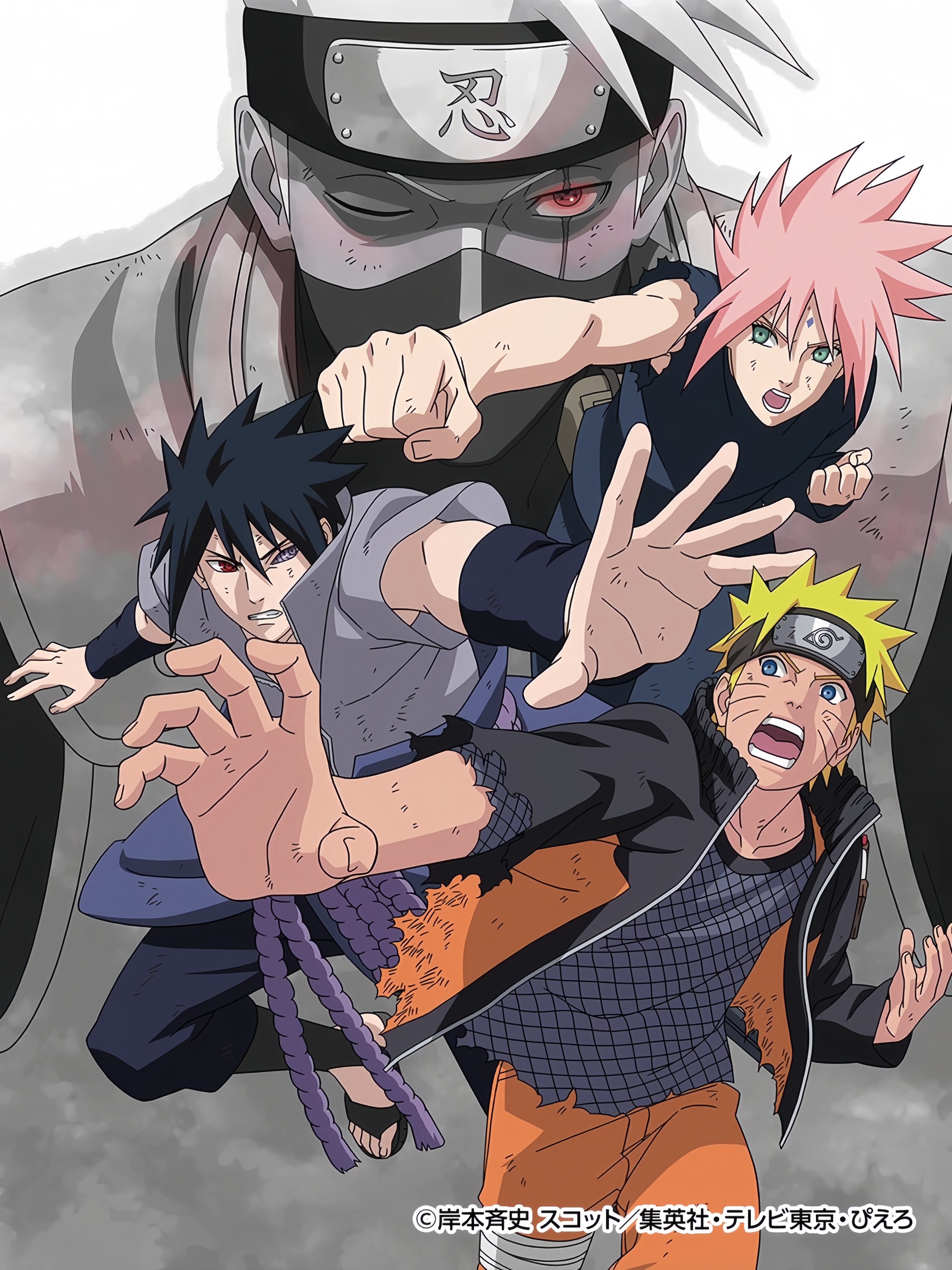 小丑社以动画风格重绘的新插图 & 原画封面作对比。第71卷封面 & 第59卷封面火影忍者 第七班