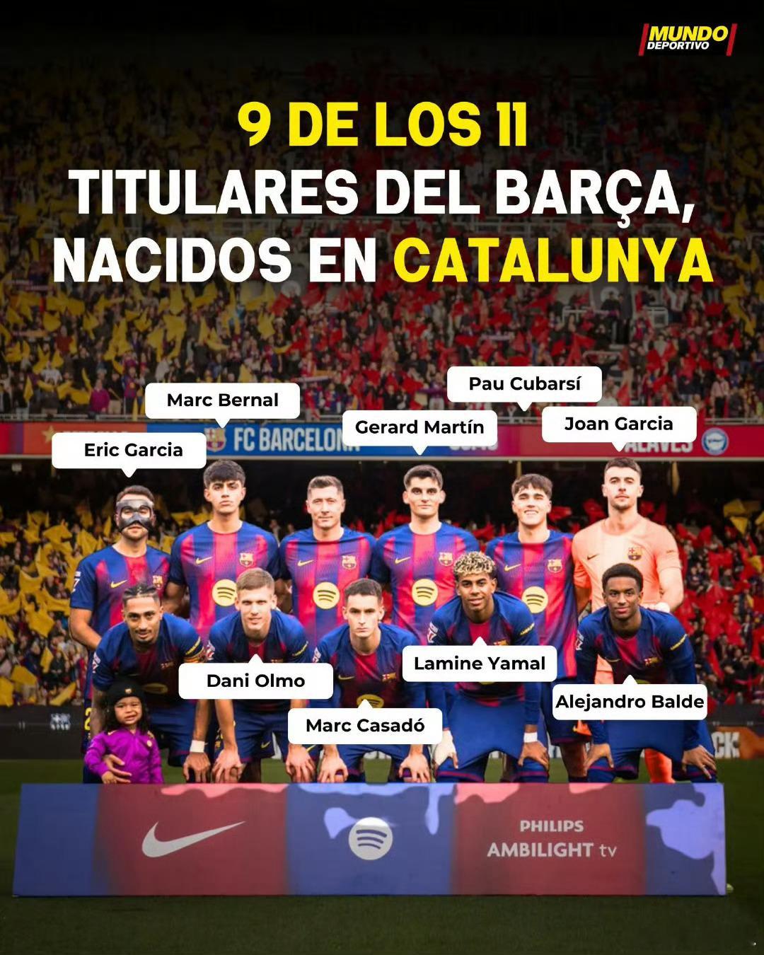 巴萨逆转阿拉维斯获得联赛4连胜,先赛一场以2分优势登顶西甲榜首。此役奥尔莫双响,亚马尔传射。在这场比赛中,巴萨11名首发球员中有9人出生于加泰罗尼亚,这是自1959年以来首次实现这一里程碑。赫拉德·马林:"比赛前卡萨多告诉了我这件事。这充分体现了巴萨的本质"马克·贝尔纳尔:"巴萨是一家加泰罗尼亚俱乐部,我们许多球员都深有体会"