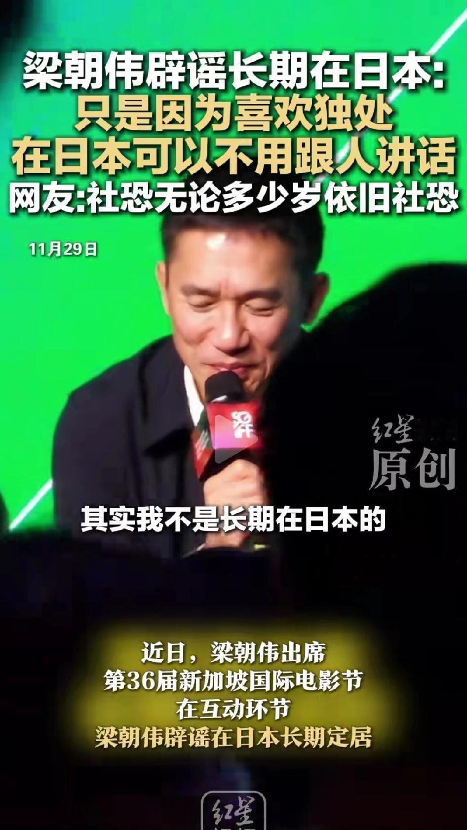 关于日本,梁朝伟都得出来说两句,避避风头。有人多次在日本偶遇梁朝伟,怀疑梁朝伟定居日本,面对记者询问时,梁朝伟说,“其实我不是长期在日本的,只不过我很喜欢独处,所以有时间的时候就会去一些城市那里住……我不会讲那个语言(日语),我也不需要跟别人说话,人家也不会跟我说话,我感到有一种很自由自在的感觉。” 梁朝伟的这番话可以在很久以前陈冠希和他的一次对话中得到印证。陈冠希问梁朝伟:“有没有一次地方是你最喜欢的?”梁朝伟回答:“我还是最喜欢日本,可能他的文化跟我满合的,他们的文化是,他们不太喜欢被别人打扰,所以他们也不太喜欢打扰别人,所以我到那里我觉得会有多一点私人空间。” 梁朝伟要的孤独感不是一个人闷在房子里,而是走在茫茫人海也没有人认识他。于是,他就选择了日本。 我们知道,现在和日本的关系紧张,如果硬要梁朝伟选择其中一方,相信他一定选择回来祖国。
