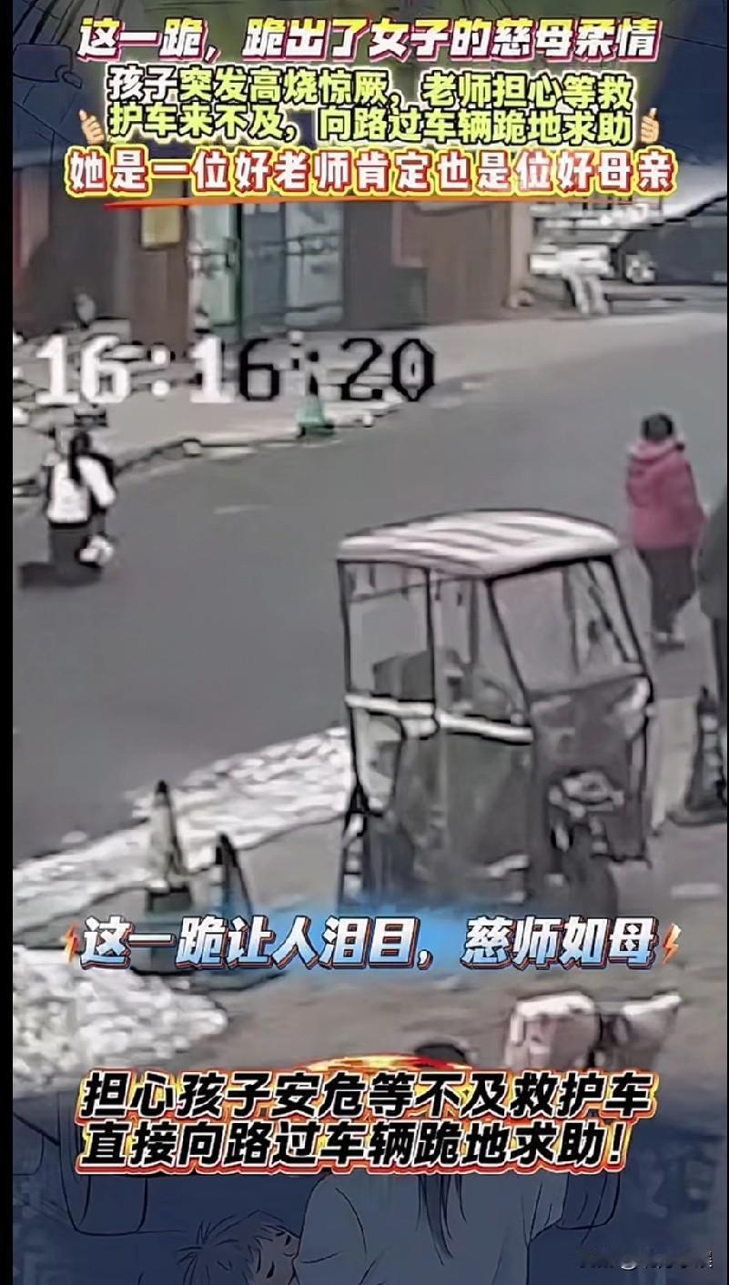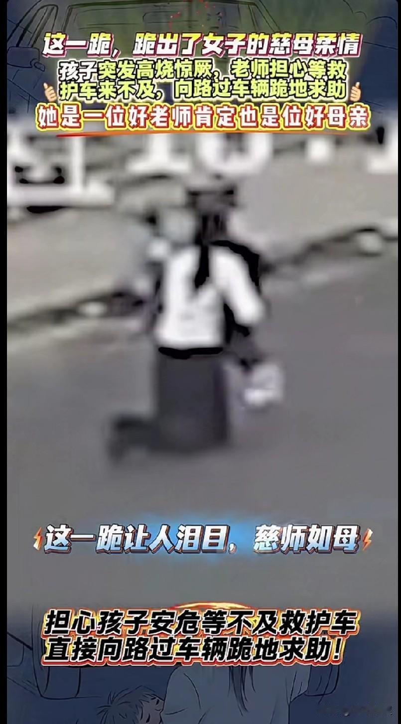当妈的真看不了这种视频,老师跪下来那一刻眼泪哗哗的[大哭]! 幼儿园中一位小朋友突发高热惊厥昏倒,幼儿园的老师发现了迅速抱起孩子准备送医,担心等救护车怕来不及,情急之下,老师抱着孩子跪在迎面而来的私家车前,好心司机将老师和孩子及时送到了医院,最后孩子已无大碍! 这位老师让人感动,这才是教育,以人为本! 当妈的看了这个视频,老师跪下的那一刻我眼泪止不住流了下来! 这位老师不仅是教孩子们知识,她更是给孩子们无私的爱!