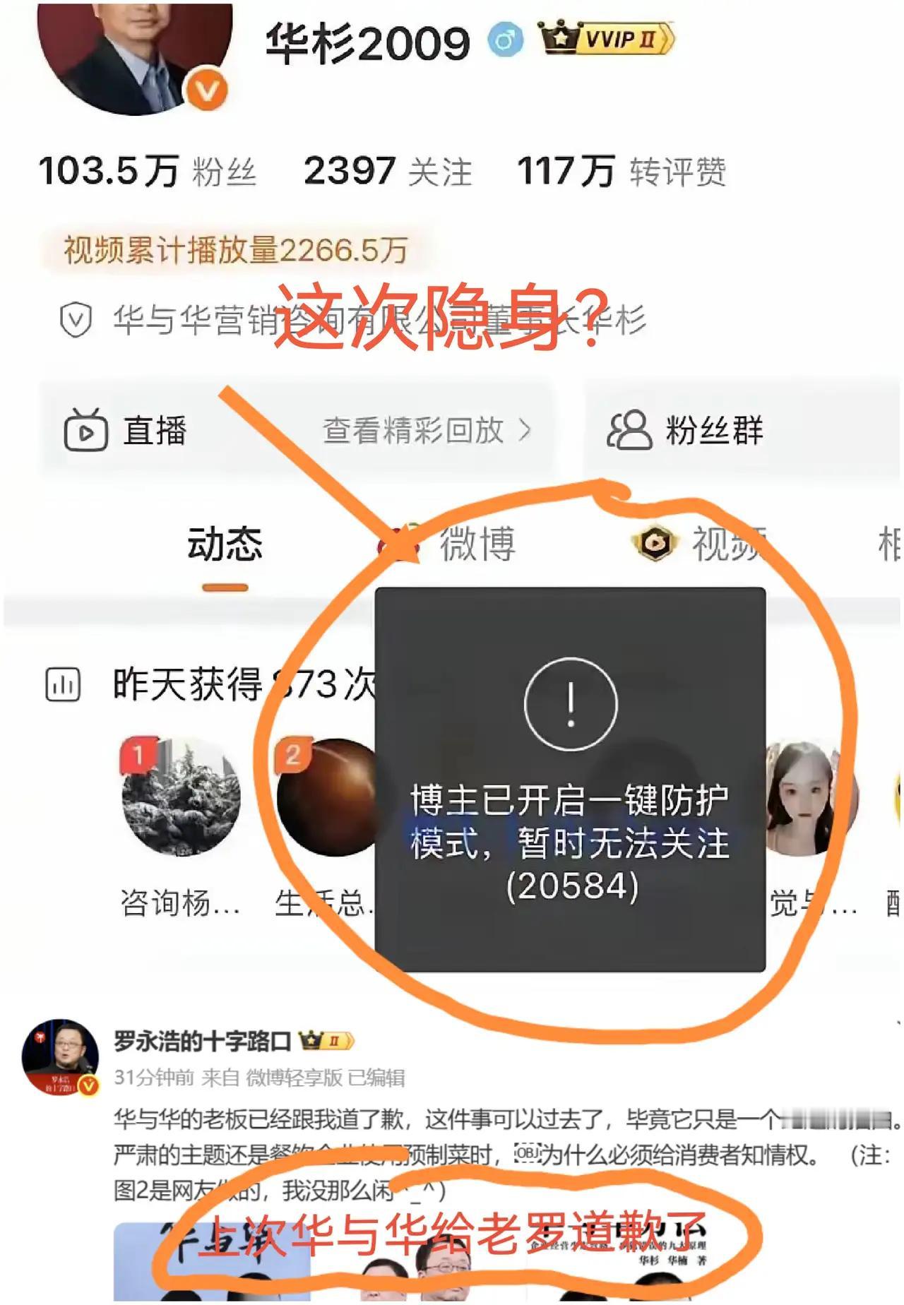 罗永浩在29号在直播间透露了 会公布手里的录音 但不会放在社交网站 而是放在一个特定的地方,给个链接,并且说了录音没有特别之处,无非就是 “华与华”老板私下骂人脏话连篇。 这一番话把吃瓜群众的胃口给吊没了,还以为要憋个大招,爆个猛料,没想到是玩了出“空城计”。 “华与华”说其研究过兵法,确实如此,账号开启了一键保护,拒不道歉玩起了隐身,不能关注和评论。 “华与华”是在2002年创办,至今已有23年,曾说过这么一段话:“消费者有两个特点,一是茫然,二是健忘。” 正是对消费者超强的洞悉力,让其飘了,在飞机杂志上投放广告,在电梯里投放广告,无所不用其极。 自说其打造的广告语大气新颖,不敢苟同,理论上说其为西贝服务了十年,给西贝说几句好话也应该。 但上次惹老罗就连夜去道歉了,这次又内涵,不知是何意。据说“华与华“在西贝风波后,仅接一个品牌的策划。 目前“华与华”进退两难,认怂会掉失市场份额,不认怂又怕老罗公布的录音,身正不怕影子斜,自身要是硬,怕啥? 想以不变应万变,但这下主动权在老罗手上,就看这次道歉不道歉,是条汉子的话,硬刚到底呗! 如何看待华与华创始人称西贝被算计 罗永浩急了