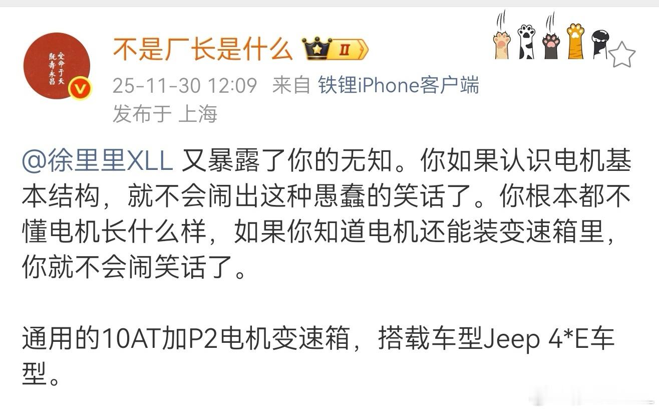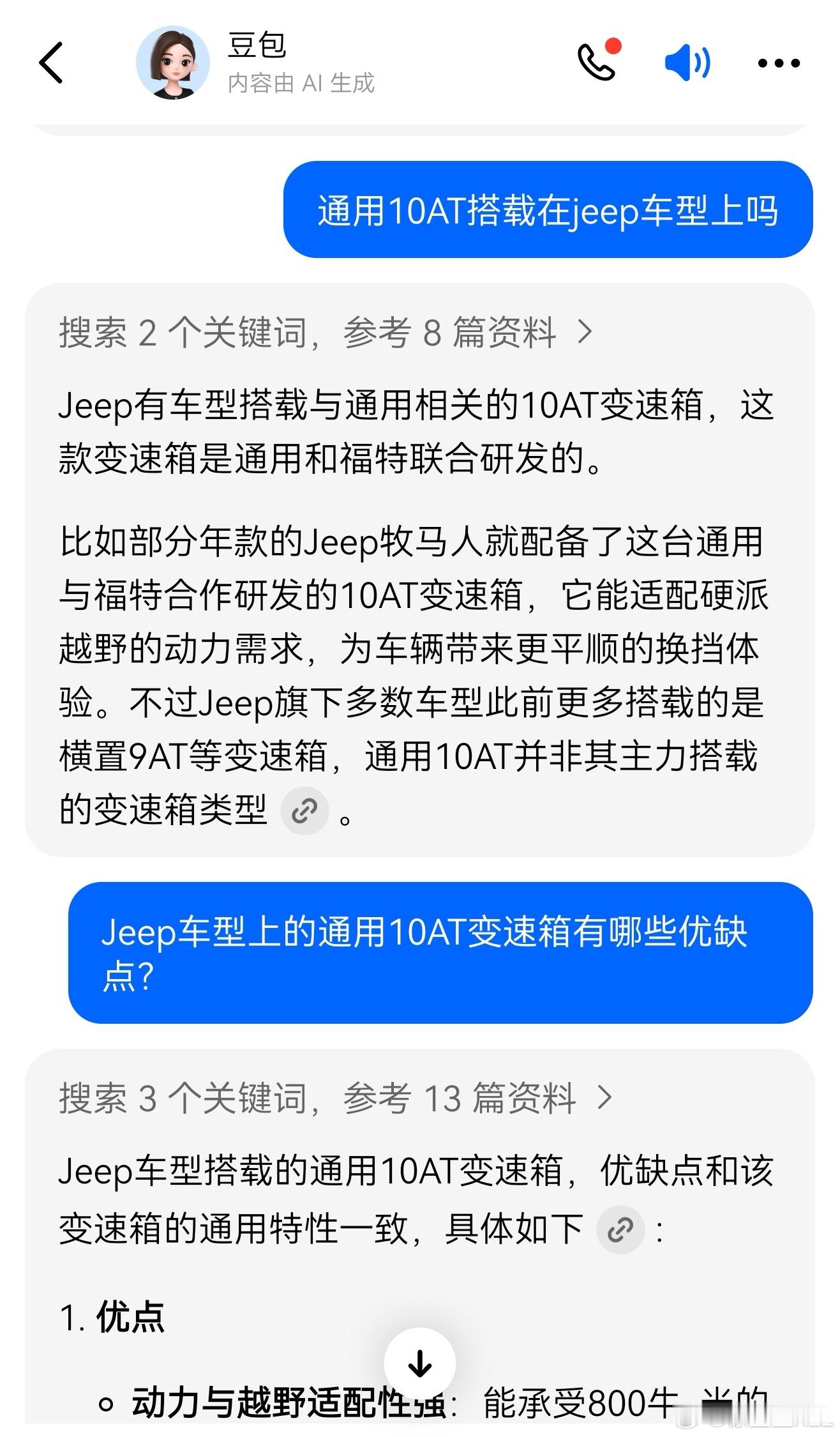 厂长用豆包跟我battle又翻车了。首先,通用没有集成电机的10速混动变速箱。其次,jeep也没有4*E这个产品。最后,jeep也没用过通用的变速箱。还有,jeep全系都没有10AT的产品。在哪能查到jeep跟通用10AT有关呢?只在豆包能问到。人工智能害人不浅啊。