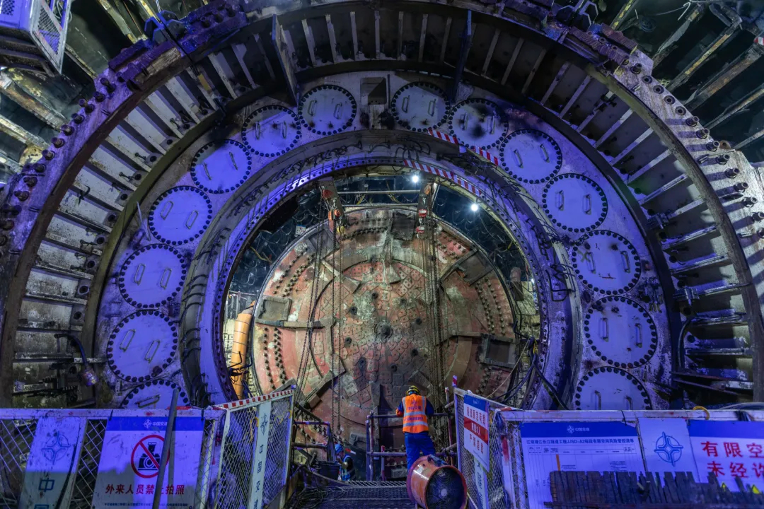 【#我国成功突破江底盾构对接世界级难题#】11月29日,由中交一公局集团隧道局承建的江阴靖江长江隧道“江底对接段”正式完工,隧道主体结构全部完成。这标志着我国成功突破高水压、强渗透地层条件下江底盾构对接的世界级难题,是我国隧道工程建设领域的一次历史性突破。江阴靖江长江隧道是长江经济带综合立体交通走廊重点项目之一。隧道盾构段全长4937米,开挖直径达16.09米,承受最大水压0.82兆帕,开工时为国内在建直径最大、承受水压最高的公路盾构隧道。面对高水压、强渗透的地质条件,中交一公局集团自主研发出相向掘进可视化系统等技术成果,全方位监控掘进过程。最终,两台盾构机在距离江面54米深的地层中实现水平偏差0毫米、垂直偏差2毫米的高精度对接。(科技日报)