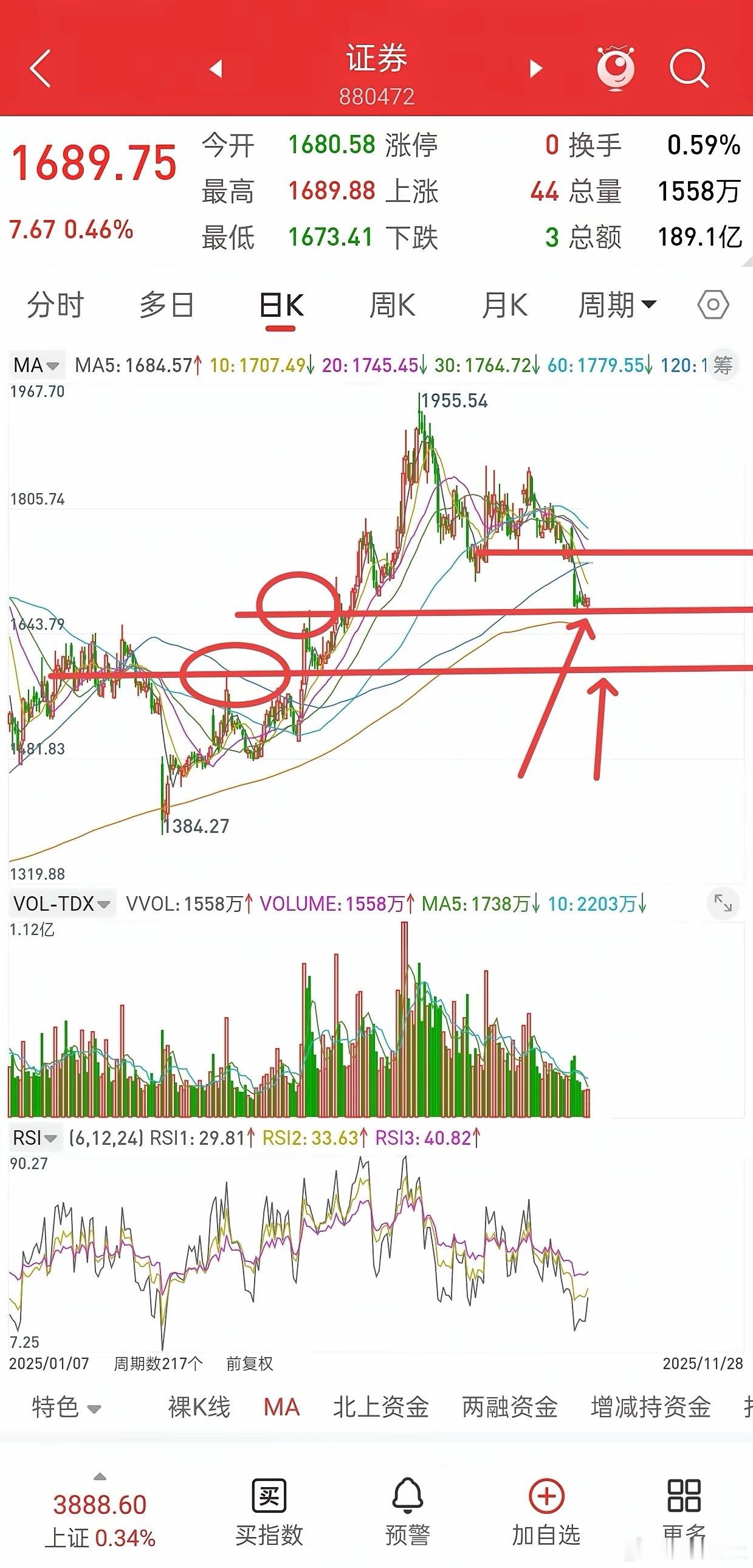 A股,下周要谨防牛市旗手的小动作!就是证券,我在本周三的时候,也提示了,防止证券搞偷袭,原因是,接下来证券是先涨,还是先跌再涨。如果证券先涨后跌,那大盘就会先拉到3900,甚至3930,再回调,如果证券先跌后涨,那大盘就会先二次探底,再反弹。所以,我认为下周大盘的走势,取决于证券的走势。因为目前证券的位置,是已经打到前顶平台支撑,而且往下是年线,很重要,这就是为啥本周证券跌不下去,一直小阴小阳的原因。有时候行情就是反其道而行,你觉得它跌不下去,有可能突然砸一下,再拉起来,这样的目的就是让更多的人止损在底部,还有证券再往下就是大的颈线支撑位置,短线来讲,如果行情真打到这里,那机会绝对大于风险。而且证券基本是一日游,因为大方向就是下跌趋势,即使突然来一根阳线,也只能看到上方20日均线附近,再往上就是套牢盘。所以,这就是我昨天在微 公里有一只券商案例的原因!还是那句话,节奏得把握好,你预测对了没用,因为节奏一旦错了,就容易追涨杀跌。因此,每当行情出现大跌或大涨时,就要擦亮眼睛了。这个市场什么都在变,主力和散户也都越来越精明,但唯一不变的是,机会永远都是跌出来的,风险永远都是涨出来的。