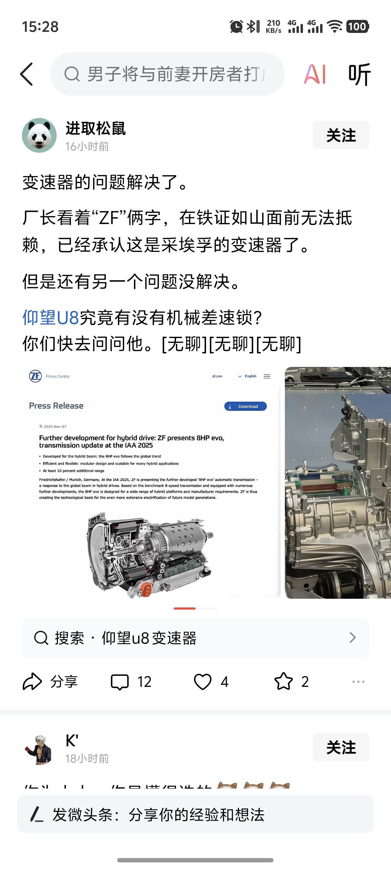 比亚迪仰望原来用的是“ZF”的变速箱的,这下跑不掉了![看][看][看]