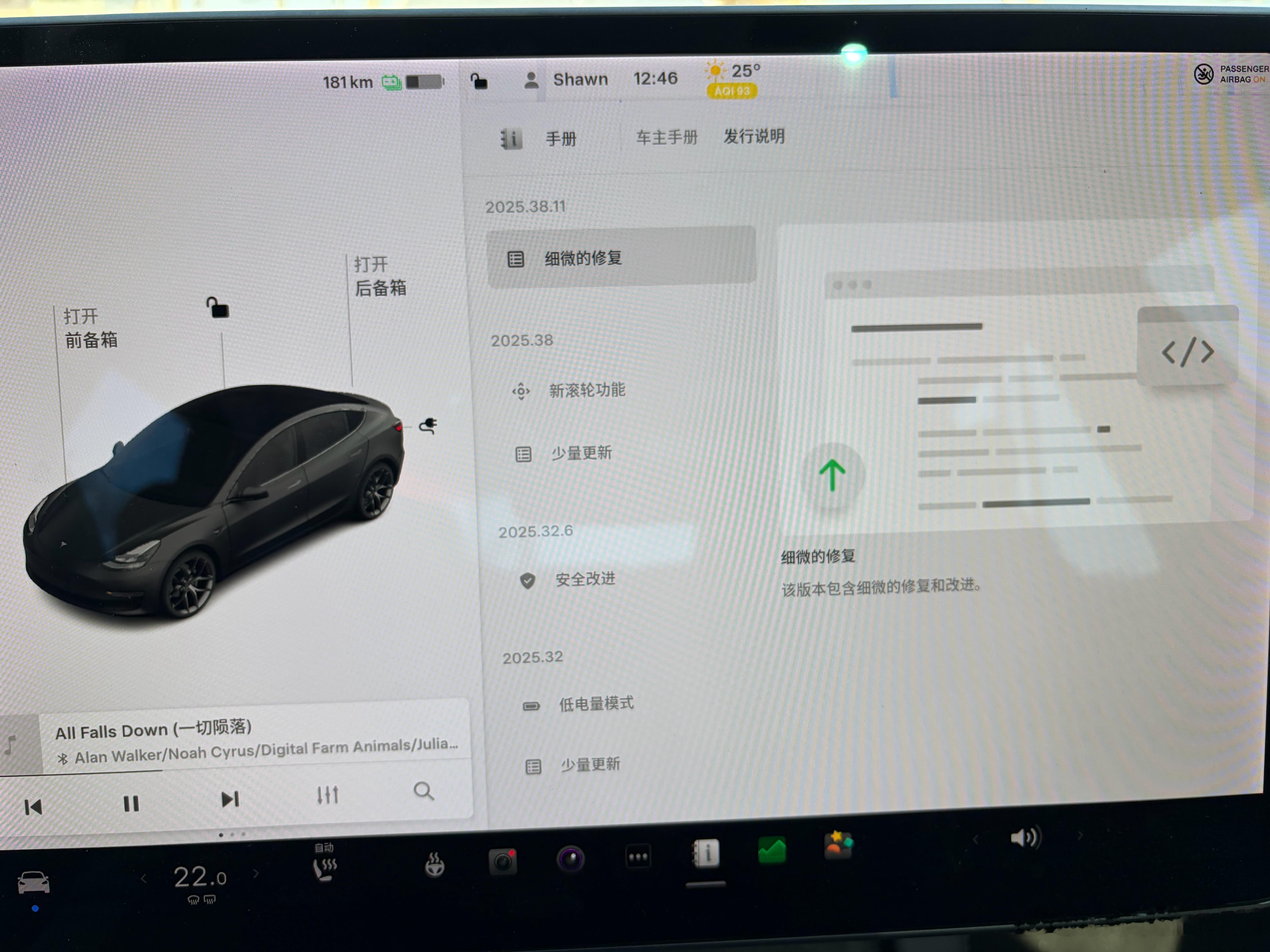 Atom+hw 3.0也更新2025.38.11了大家争论的几个问题,也替大家试了能量回收,没影响,之前啥样还是啥样辅助驾驶(AP),即使始终盯着前方,依然会出现“请手握方向盘”的提示。和之前一样,不扭或者不操作,无法消除不过原来刚开AP就出现的提示手握方向盘,现在没有了特斯拉汽场全开
