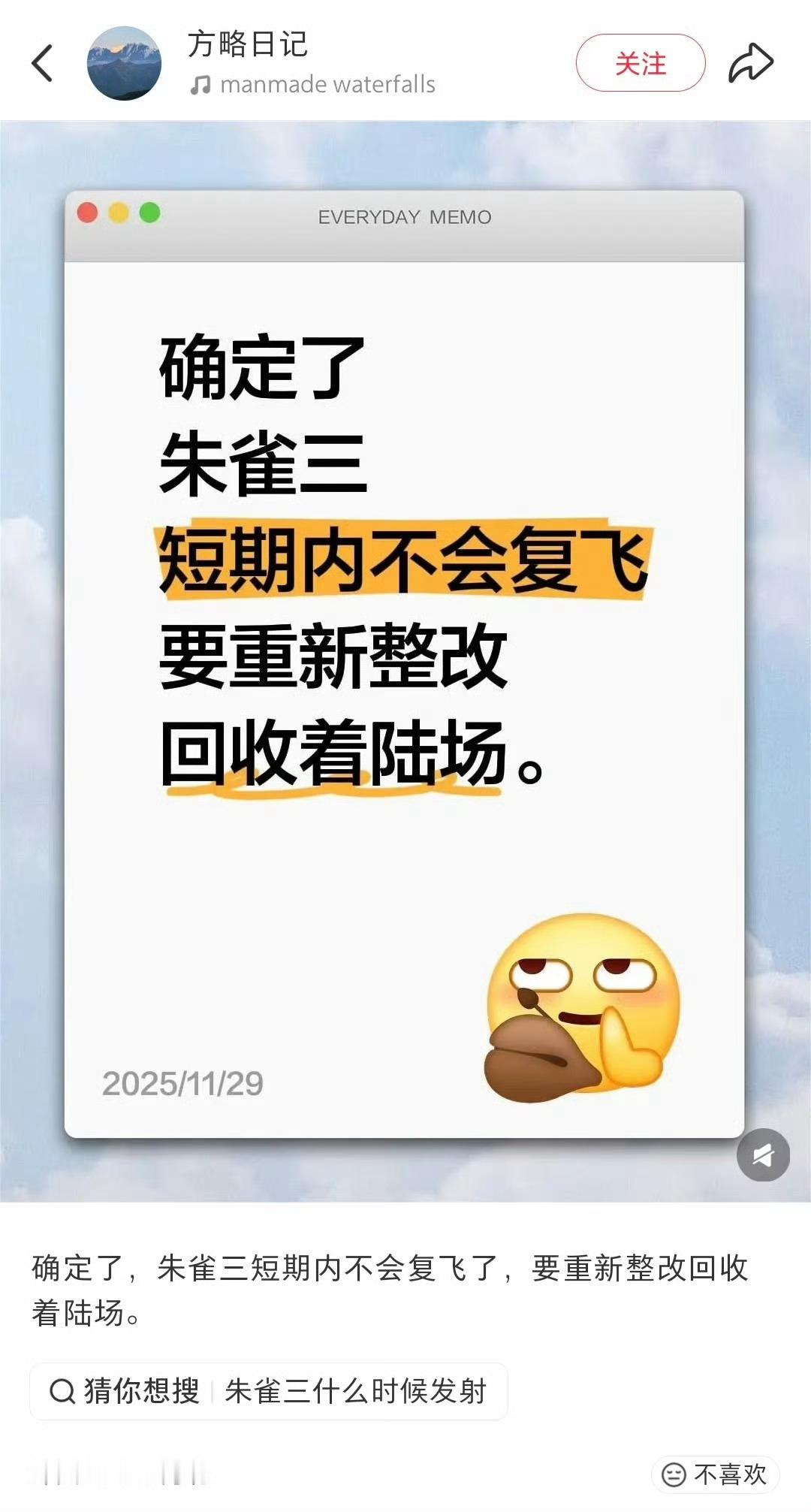 阿,这。。。。朱雀三号要大幅延期,因为要整改回收着陆场 接下来只能看长征12A和天龙三号了,希望不要鸽 来源见图烽火问鼎计划