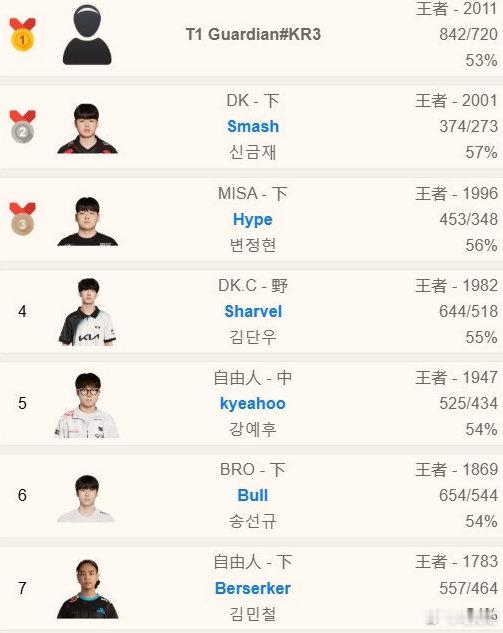 NIP官宣全员离队 红牛杯T1新阵容 还有猛将🤔04年T1青训上单Guardian登顶韩服 王者2011分胜率53%今日T1青训上单Guardian一路连胜登顶韩服,王者2011分胜率53%!NIP官宣Doinb离队