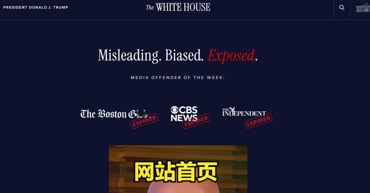 懂王的“假新闻纠偏”网站! 白宫推出了一个新的网页,旨在追踪其所谓的“媒体偏见”和不准确之处。新的“媒体偏见”页面于周五上线,白宫声称这将有助于揭露“假新闻”。 看看网页上的上榜名单! CBSNews;波士顿环球报;独立报(英国);华盛顿邮报;CNN;MSNBC;等等等等! 估计美国知名的媒体都会“有幸上榜”的。 也许会有例外。有人注意到,网站刚上线时,FOXNews(福克斯新闻)名列其中,可是很快就又被删除了!