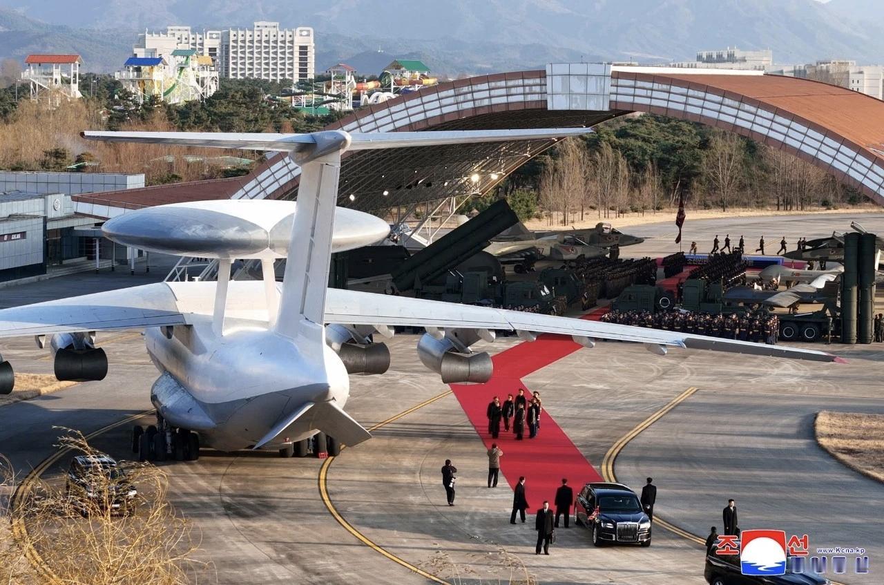 【朝鲜展示空军装备新阵容,以下这几张图片有亮点】这是朝鲜官方媒体发布的纪念朝鲜人民军空军成立80周年活动新闻图片,时间是11月28日,地点是朝鲜人民军在第2空军师59吉永祚英雄联队所在的元山葛麻机场。 请看左图中的米格29战斗机,两架摆放的米格29机头雷达罩的颜色明显有区别。摆在外侧金正恩专车最近的地方的那架的雷达罩是黑色的,有点像歼10A和歼11B战斗机的PD雷达罩;另一家的颜色是灰色的,貌似该机原本的雷达罩颜色。当场进行飞行表演的米格29的雷达罩也是灰色的。 这是否意味着朝鲜正在对米格29的火控雷达进行升级? 第2张是朝鲜版伊尔76预警机后部图片。最明显的特点是尾部的v字型腹鳍,很可能是为了平衡顶部巨大的雷达罩所形成的偏转力矩。解放军的空警2000也有类似设计。 第3张是朝鲜版的远程地空导弹系统。仔细看两型导弹还不一样,难道靠外侧的,采用的是10×10的底盘,驾驶舱后部疑似多了一个方舱;靠内侧的采用的是8×8的底盘,曾经多次参加过朝鲜的阅兵。外侧是三联装发射架,内侧是五联装。这种区别要么是追求的是集成度,减少系统的车辆,提高机动性。要么是不同型号的导弹,比如外侧的新型导弹侧重反导能力上。毕竟韩国的地对地导弹也在扩张之中。