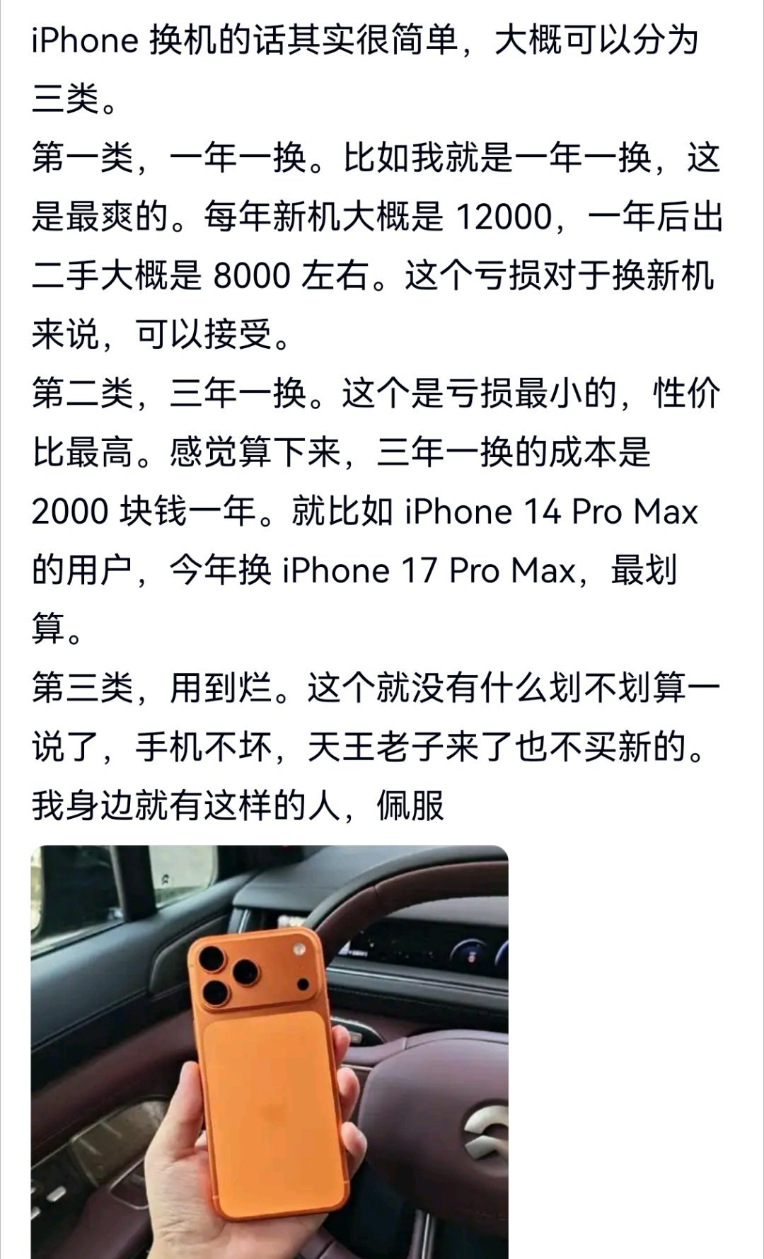 这位哥的说,手机三年一换,性价比最高,而最爽的是一年一换,用机成本一年4000左右。苹果10月全球手机份额飙至24.2%