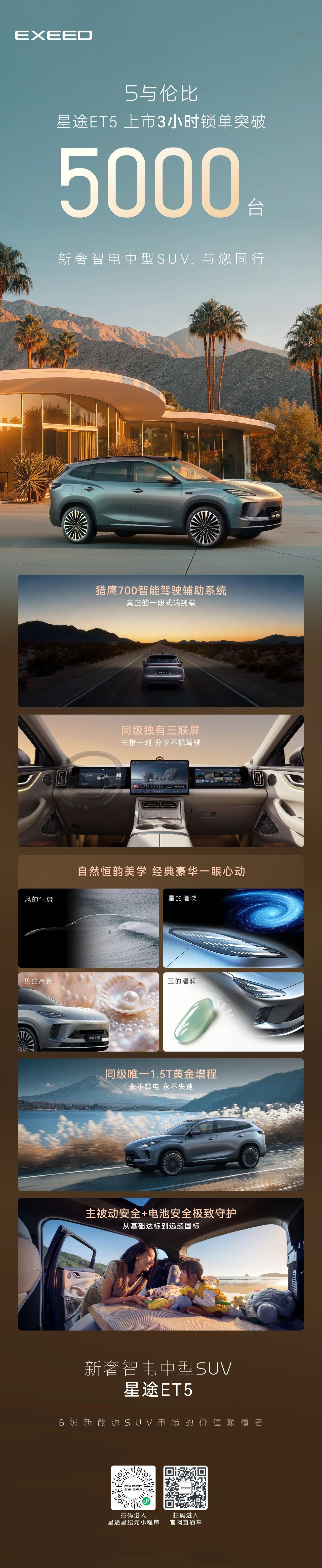 星途ET5 上市3小时,锁单突破5000台。——15级带地平线高阶辅助驾驶、带激光雷达——三联屏——1.5T大增程确实很香