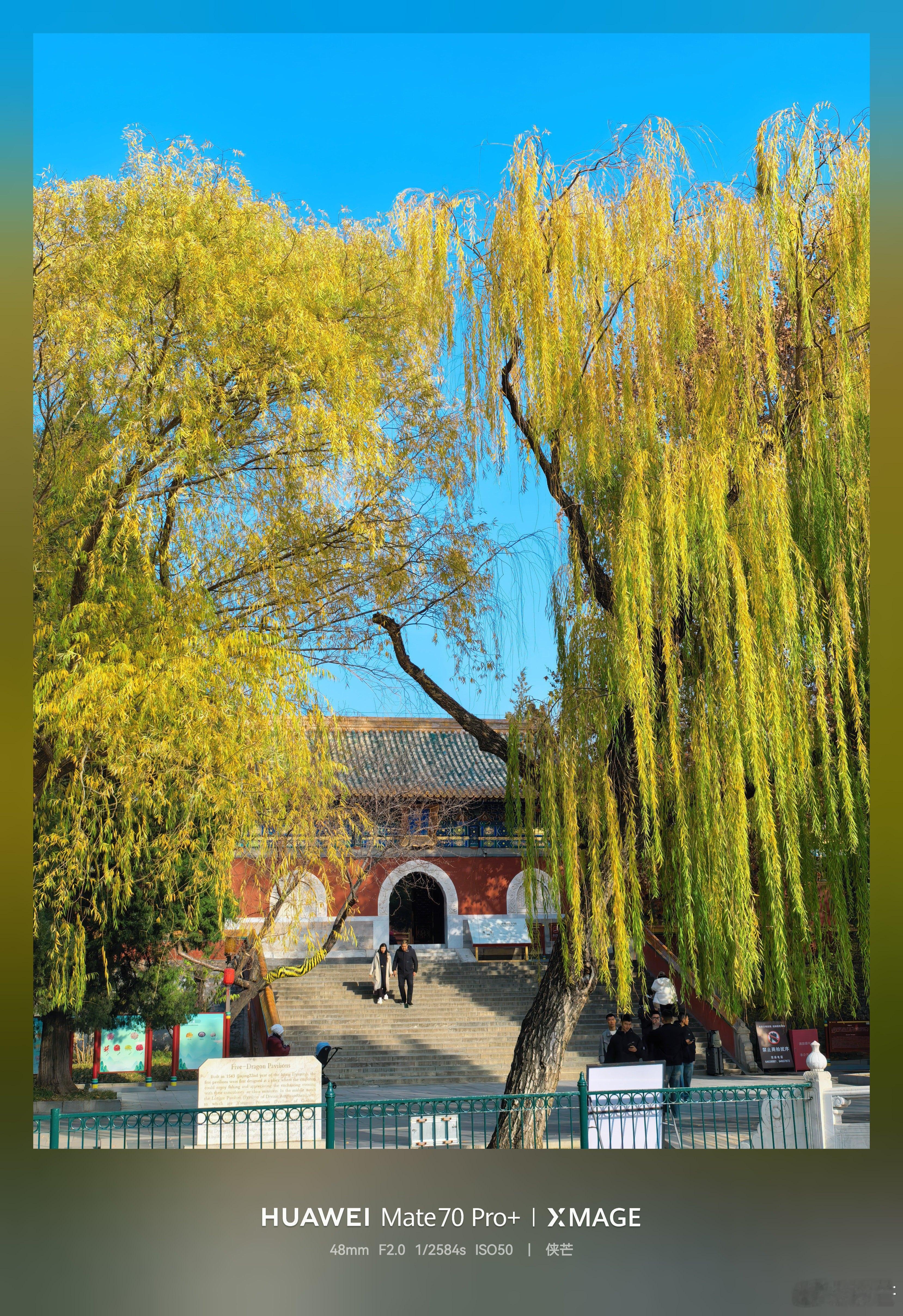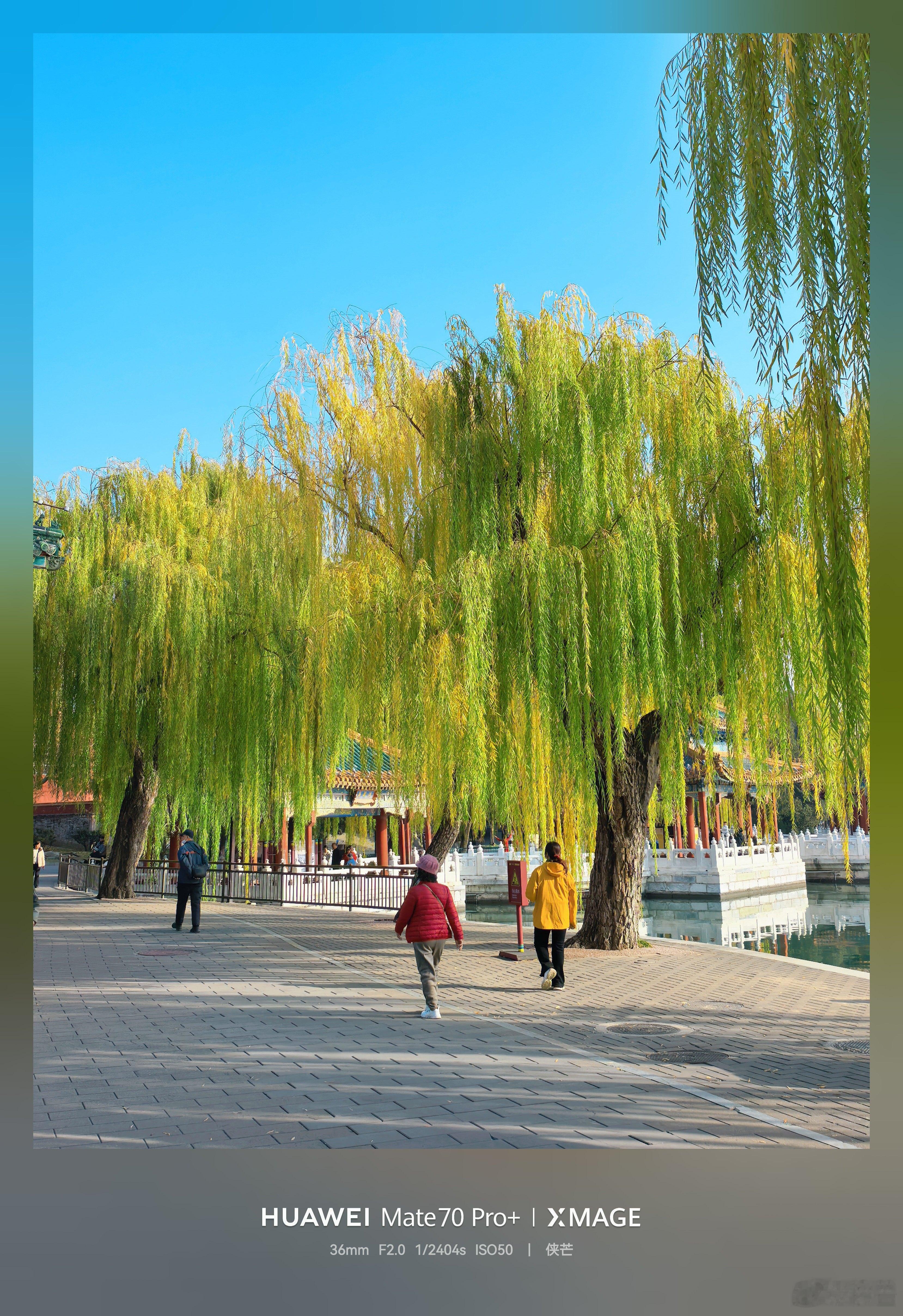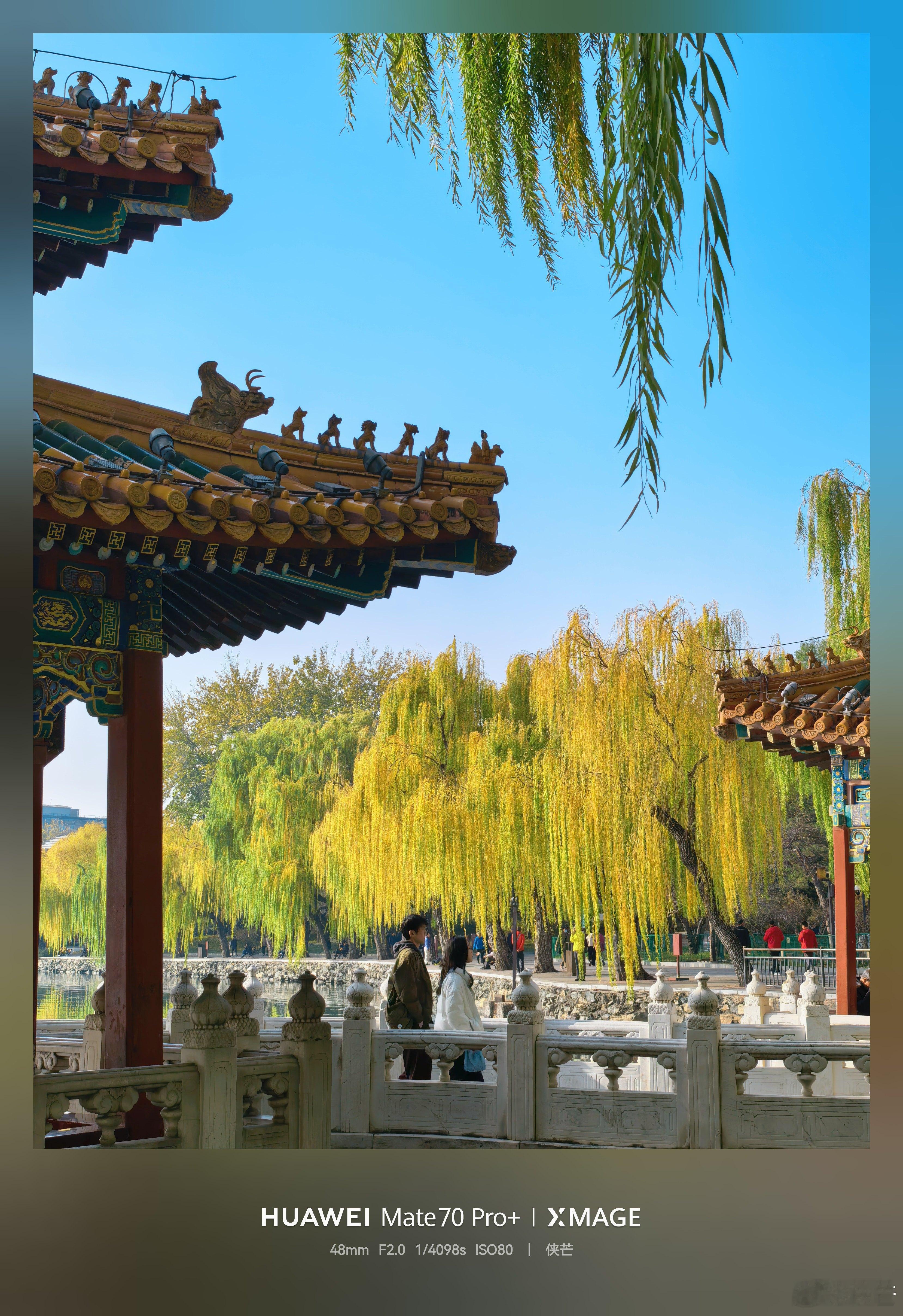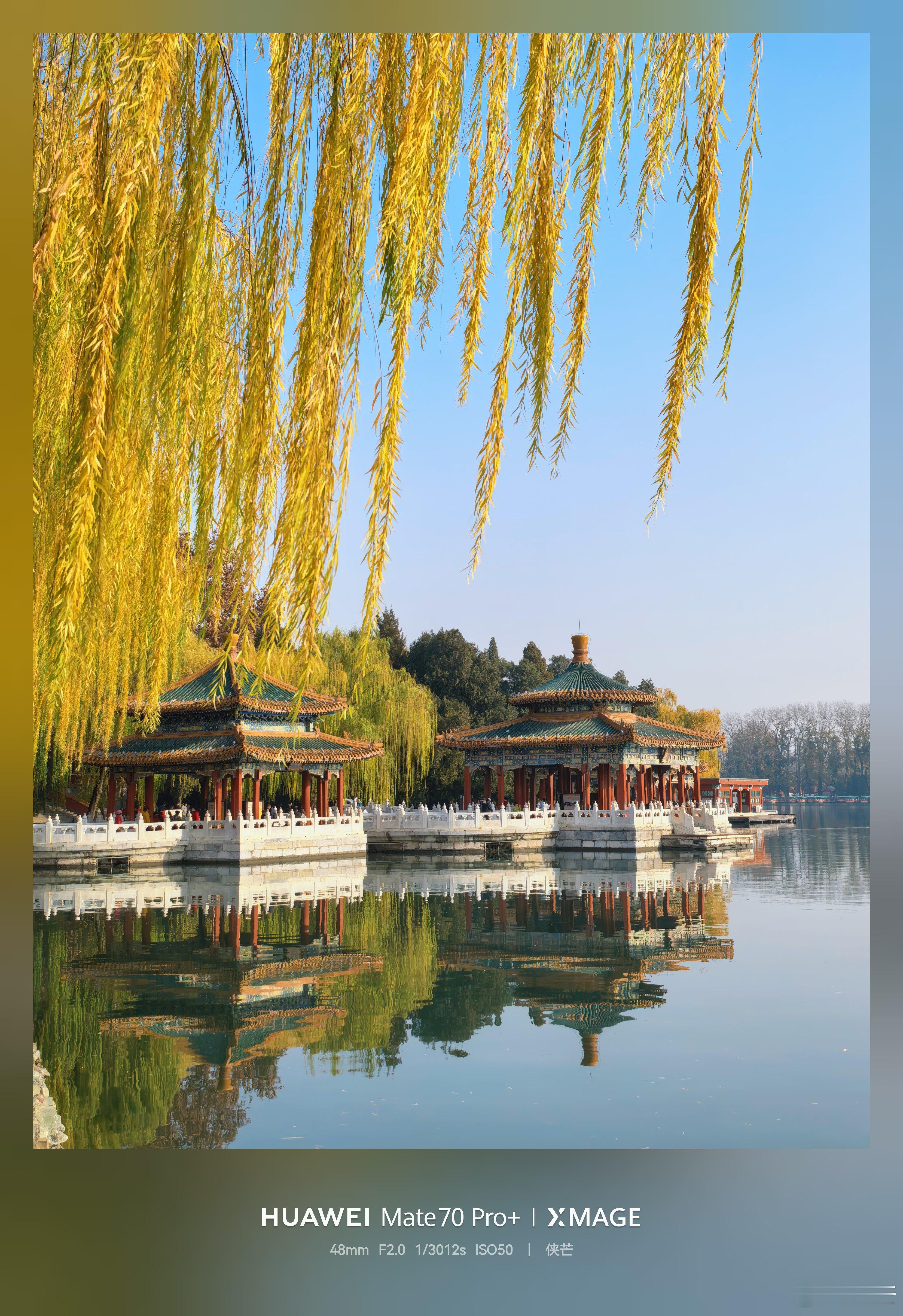 冬日北海公园 黄叶垂落,檐角鎏金, 湖心亭台倒映清波里。 石阶上人影流连, 手机框住北国秋深。摄影