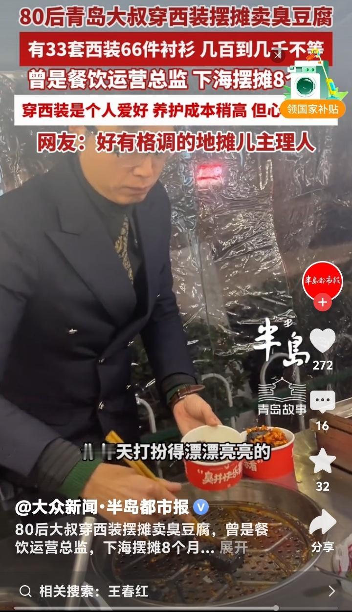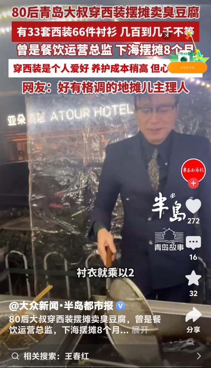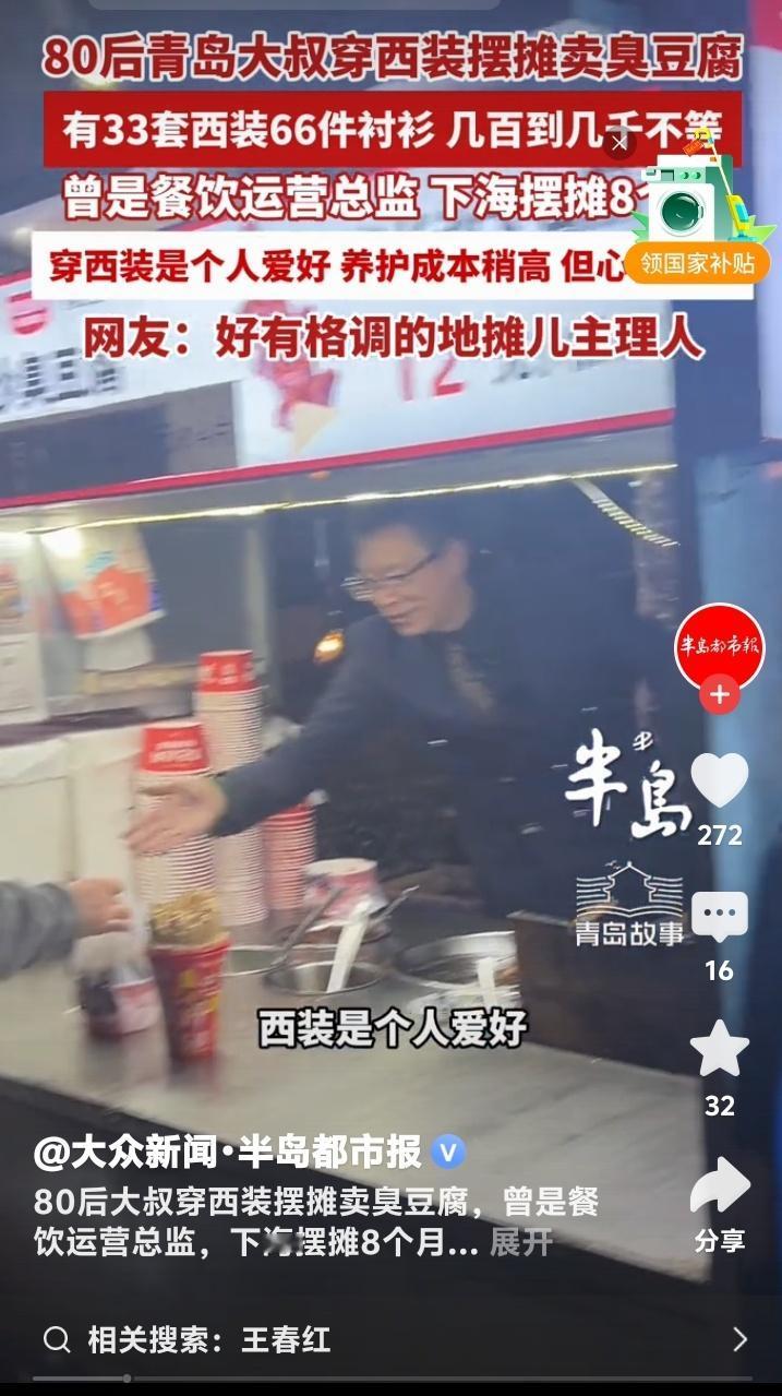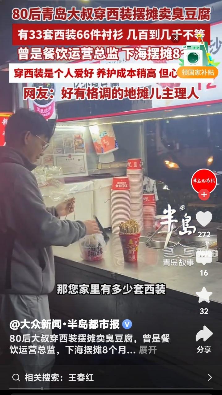 青岛台东夜市惊现西装绅士臭豆腐摊主!33套西装轮换的餐饮总监用8个月诠释什么叫生活仪式感 (来源:半岛都市报) 夜幕初垂,青岛台东步行街飘起阵阵异香。人群在某个摊位前围成圆弧,暖黄灯光下,穿着格纹三件套西装的男人正用镊子给臭豆腐插竹签。油渍溅不到他熨烫平整的袖口,烟火气染不黑他擦得锃亮的皮鞋。这位被网友称为“夜市绅士”的洛先生,曾在五星酒店宴会厅运筹帷幄,如今在烟火缭绕中重新定义奋斗的模样。 曾经的餐饮运营总监如今系着围裙调酱料。黑色西装襟前别着银色胸针,他记得每位熟客的辣度偏好:“中辣多蒜汁?今天豆腐炸得特别酥。”不锈钢餐车擦得能照见人影,调料瓶按高矮列队,这种近乎偏执的整洁,是他与生活达成的默契。 更衣室里挂着33套西装66件衬衫。从青果领礼服到双排扣商务装,每件都配好袖扣和领针。干洗店会员卡积满星星,他说:“养护成本抵半月房租,但穿上西装就像披上铠甲。”邻摊大姐笑他摆摊像走秀,他正正领带:“人要活得像个样子。” 转型源于某个加班的凌晨。看着办公楼窗外熄灭的灯火,他忽然渴望能触摸真实的温度。辞呈交得干脆,八个月前首次推餐车时,西装革履的造型让城管都愣住:“您这身……是来体验生活?”他递上名片:“以后请多关照,我是6号摊主。” 仪式感成了最佳营销。年轻白领专程带同事围观“西装豆腐男”,阿姨们举手机拍他切葱丝的优雅姿势。有姑娘坦言:“本来不吃臭豆腐,但看他用戴表的手找零钱,莫名想照顾生意。”这种跨界魅力,让月营业额轻松突破五位数。 当然遇到过不解。老同学见他系着爱马仕丝巾颠炒勺,唏嘘“沦落风尘”。他舀起一勺辣椒酱笑笑:“以前给老板写汇报,现在给生活写情书。”最温暖的认可来自穿校服的女孩,她攥着零钱说:“叔叔,你让我知道体面与干什么无关。” 国家创业补贴到账时,他刚烫好明天要穿的藏蓝条纹西装。这笔钱化作定制餐车上的雨棚雕花,变成免费提供给环卫工人的暖饮基金。他说:“政策托举着微光,我们该把光折射给更多人。” 某日暴雨骤至,摊贩们狼狈收摊。却见他不慌不忙撑开巨伞,从餐车底层取出红酒杯,斟上带给妻子的红酒。雨帘中从容切着卤豆干,仿佛身处米其林后厨。这份把苟且活成诗意的本事,恰是当代人最稀缺的修行。 如今“西装豆腐”已成夜市地标。有程序员带着烦恼来找他:“如何能像您这样不在乎眼光?”他夹起金黄豆腐浸入酱汁:“不是不在乎,是太在乎自己内心的秩序。”擦擦手补充道:“你看这臭豆腐,闻着呛吃着香——活着本就是打破偏见的过程。” 霓虹照亮他肩头的温润光泽。66件衬衫轮换的不只是衣着,是33种不向粗糙妥协的态度。当越来越多人穿着旗袍汉服来买豆腐,当整条街开始注重摊位的整洁度,他悄悄弯起眼角:“仪式感会传染。” 收摊时总见他将工具擦三遍,哼着歌给西装刷灰。有人问是否打算开连锁,他摇头:“就想让每个夜归人记住,生活再难也有人认真对待。”最后一片星光落在他别着茉莉花的衣领,那香气混着臭豆腐的浓烈,飘成城市上空温柔的月亮。 生活仪式感 跨界奋斗 职场转型 青岛身边事 青岛生活