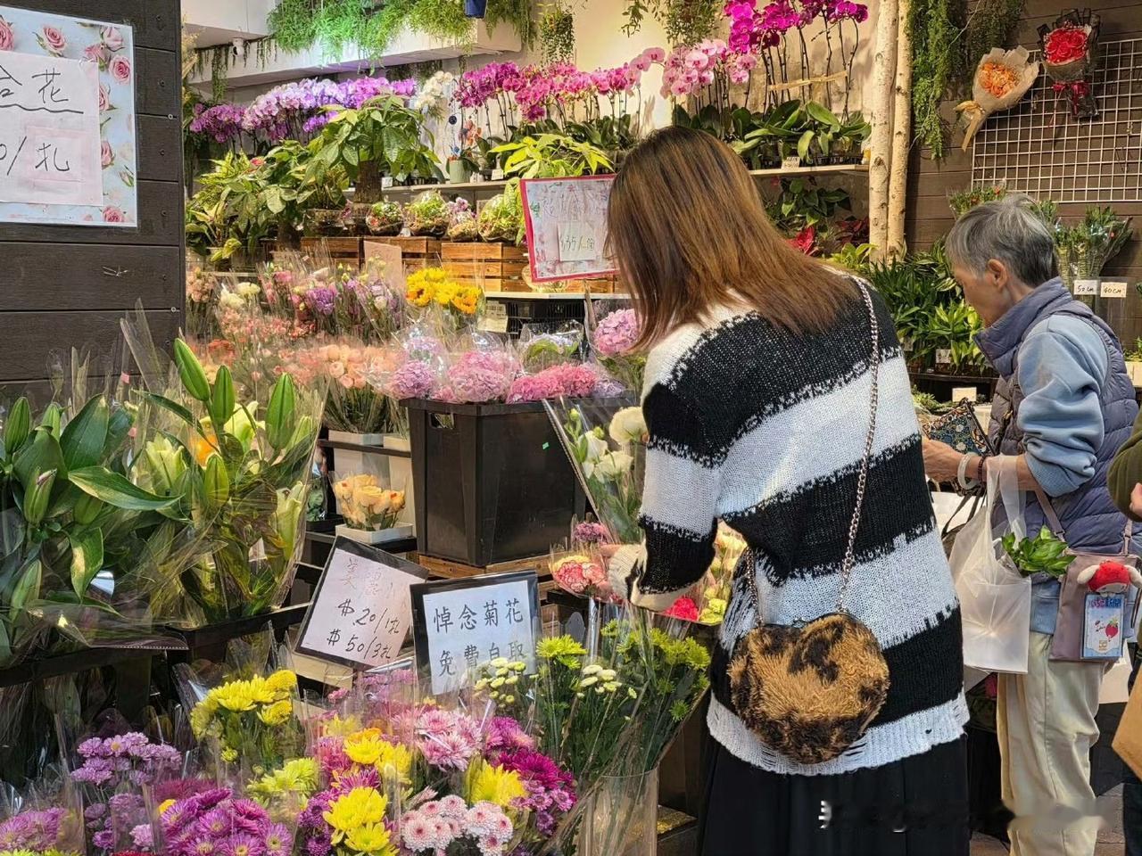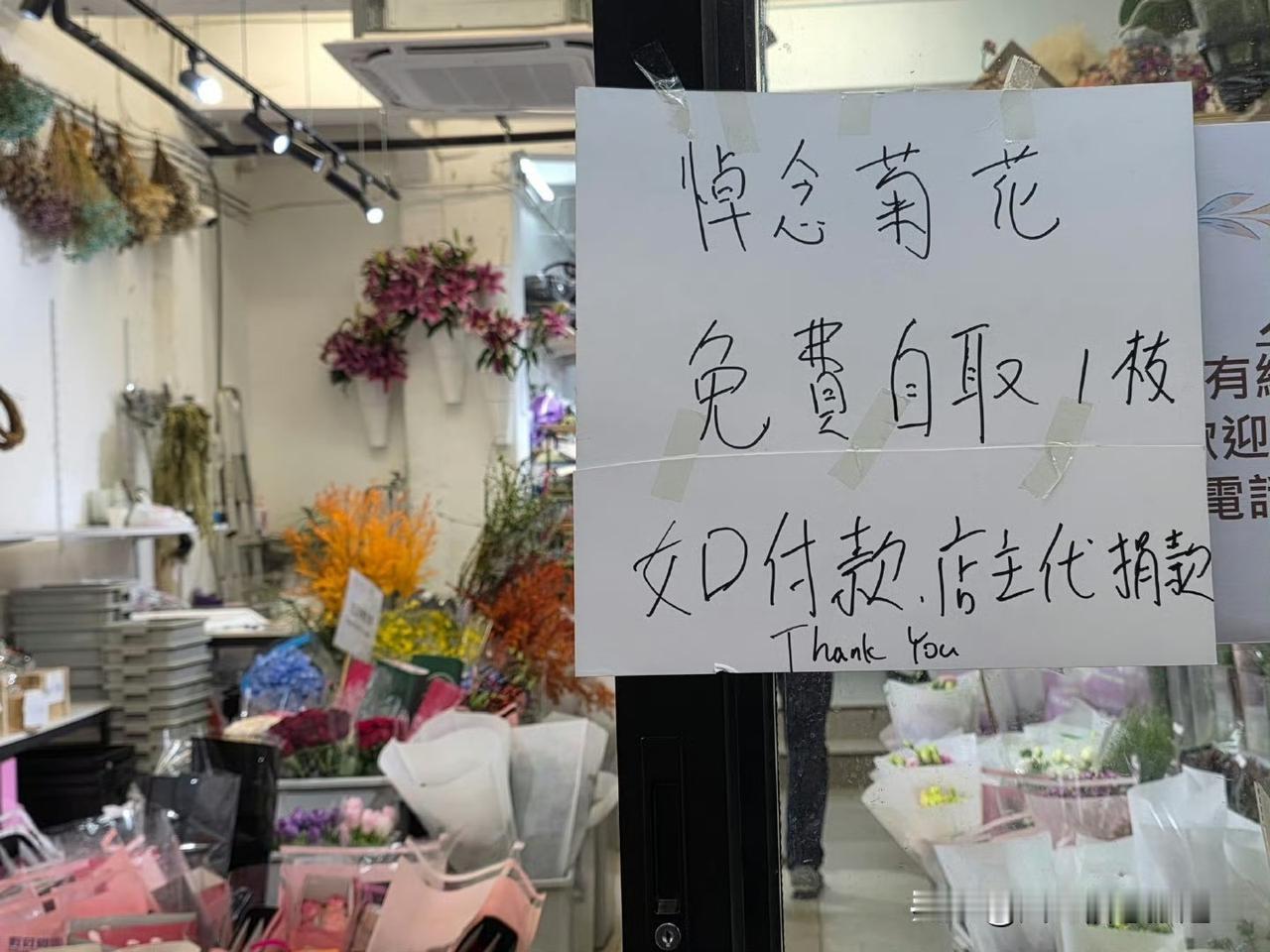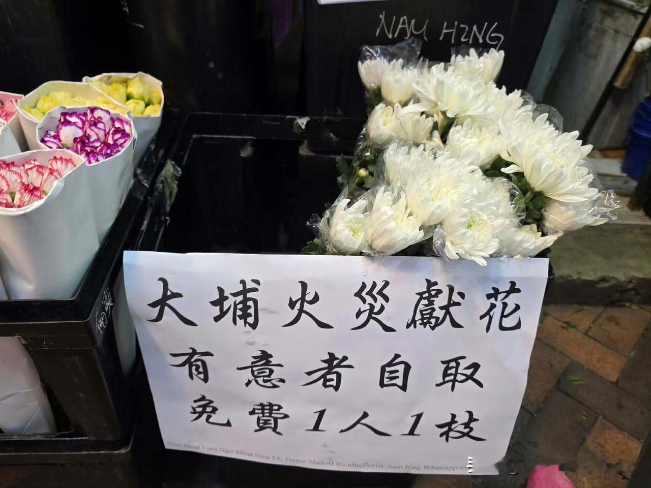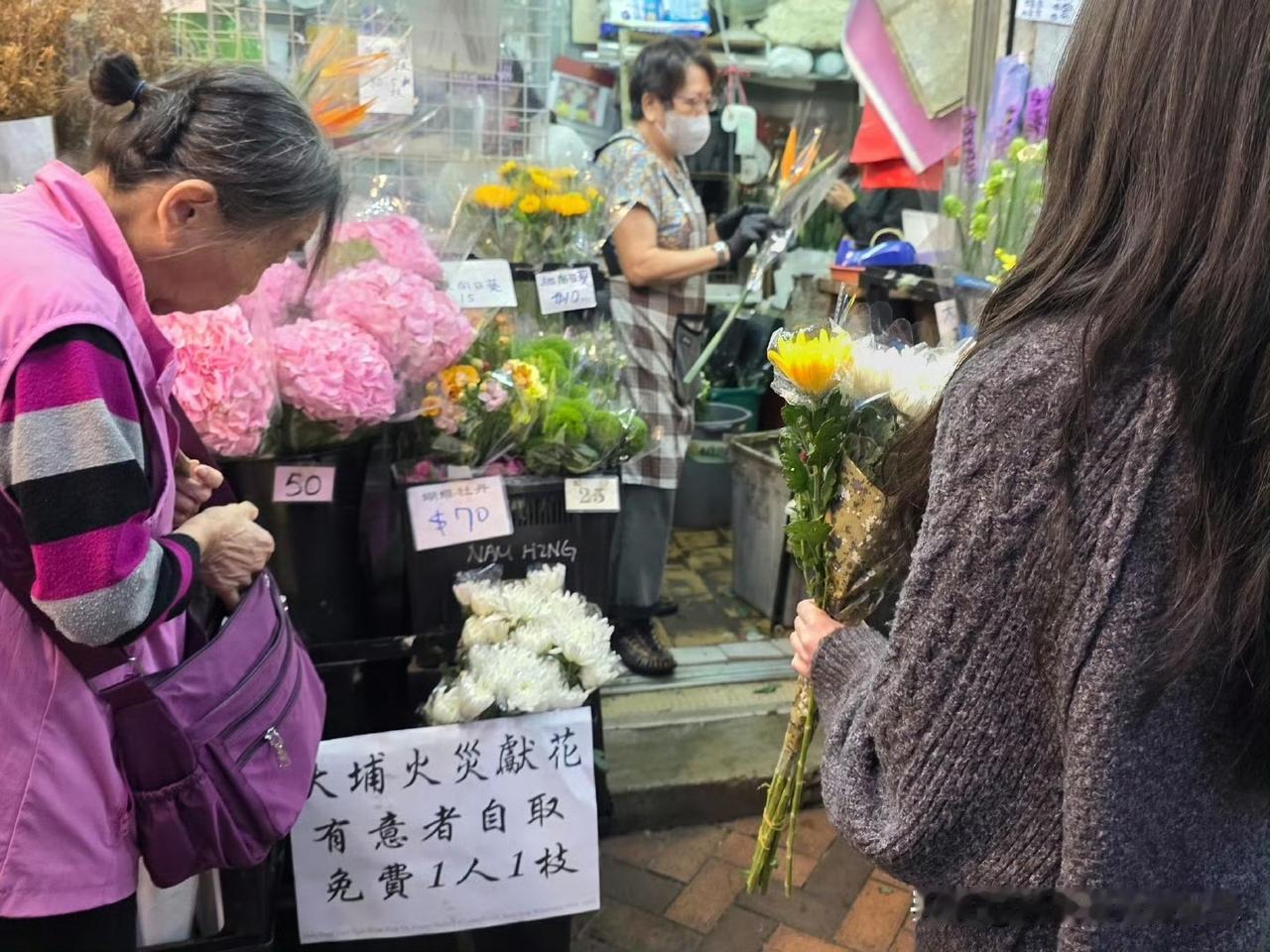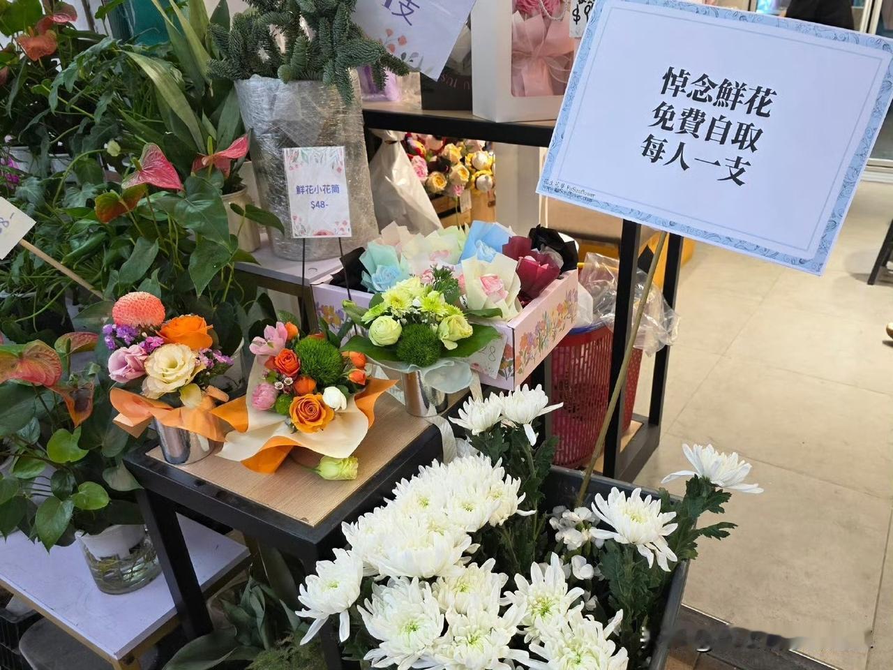 连续两天,有很多市民前往宏福苑悼念,沿途有不少花店免费提供花。