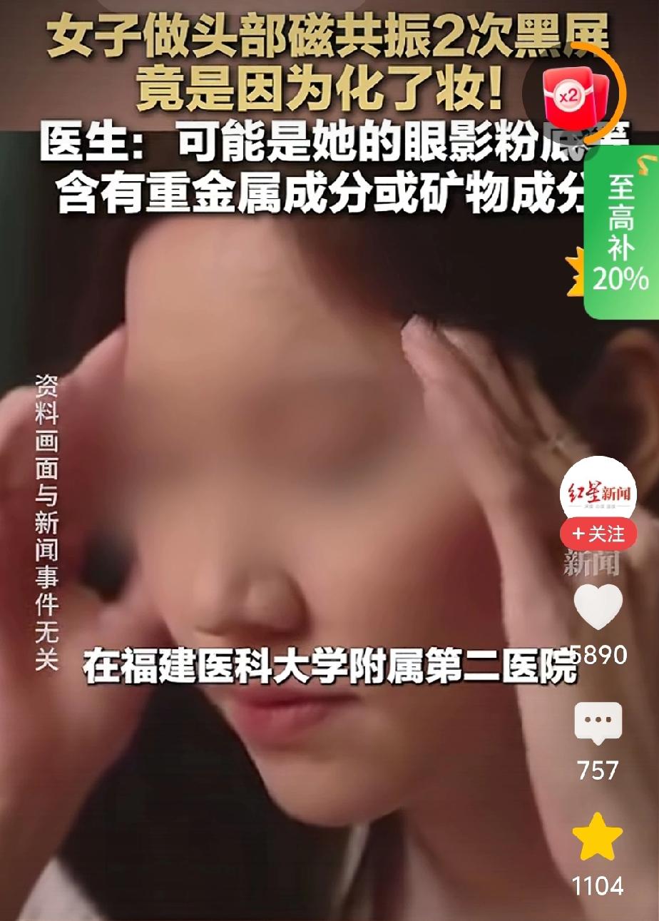 什么情况?小姐姐头痛,去做磁共振,结果,做了两次都黑屏。大夫还以为女子带假牙什么的,结果都不是。 后来,小姐姐洗过脸后,把脸上的化妆品洗掉了,再做磁共振就没事了。 哎吆!这是什么牌子的化妆品,还能隔绝磁共振? 我们都知道,做磁共振时,医生会让我们把手机或是金属物品摘下来,因为他们会影响磁场。 这么说来,大家就明白了,这应该就是化妆品含有金属,含量少了,估计都影响不了。 有网友说,化妆品无铅不白,无汞不亮,无激素不嫩。不怕死的就多往脸上呼。 还有网友说,小姐姐头痛不用看了,病因已经找到了,把妆容卸了,头痛就会好了。 还有网友留言说,自己都是用对大牌子的化妆品,应该不会有重金属。 现在人为了利益,真是什么都不顾了。甭管别人怎么做,反正对于素颜者,他们是伤不到的。难道说不是吗? 图片来自网络,侵删致歉。