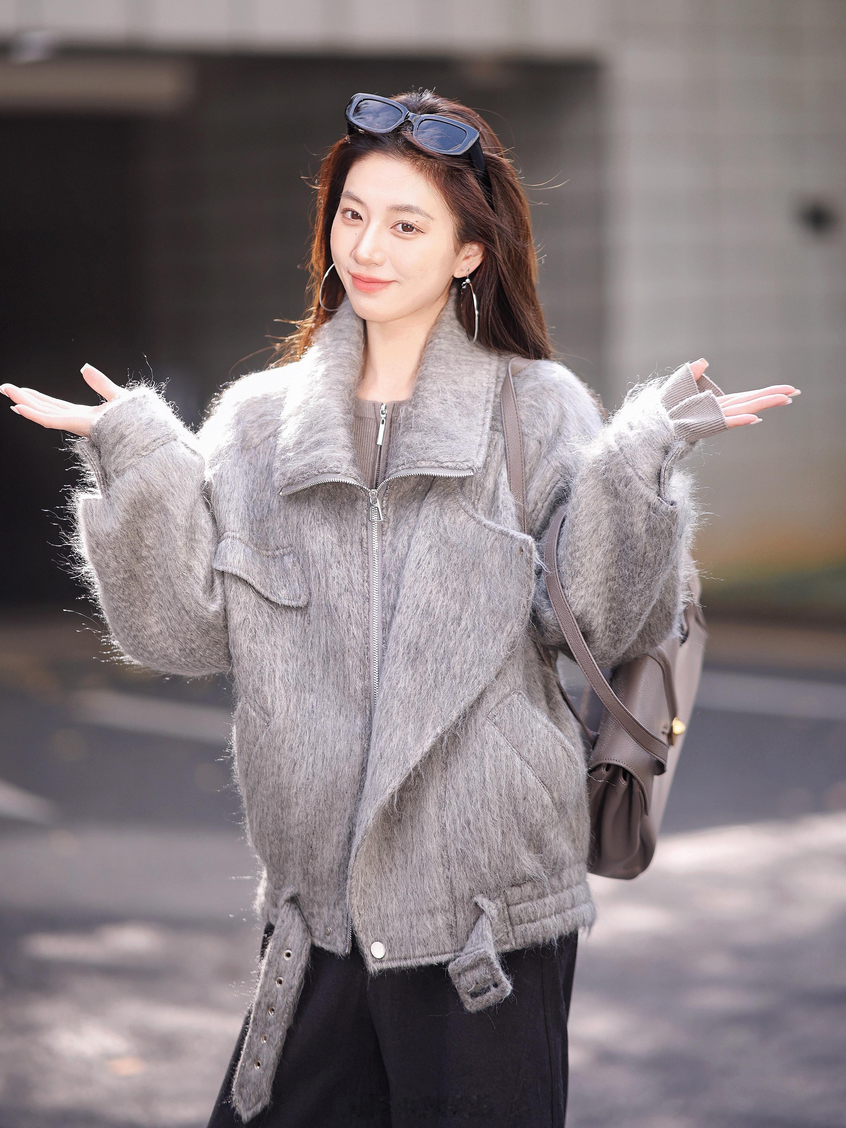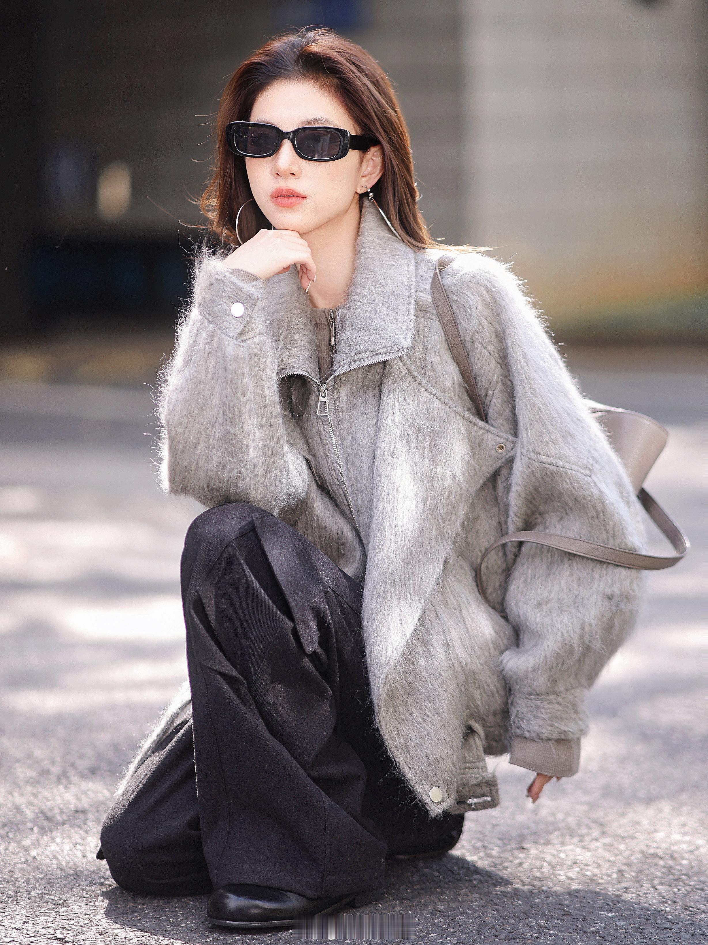 又是酷酷的一天~64支澳毛*马海毛做了拉绒工艺轻轻软软又暖和双门襟设计更挡