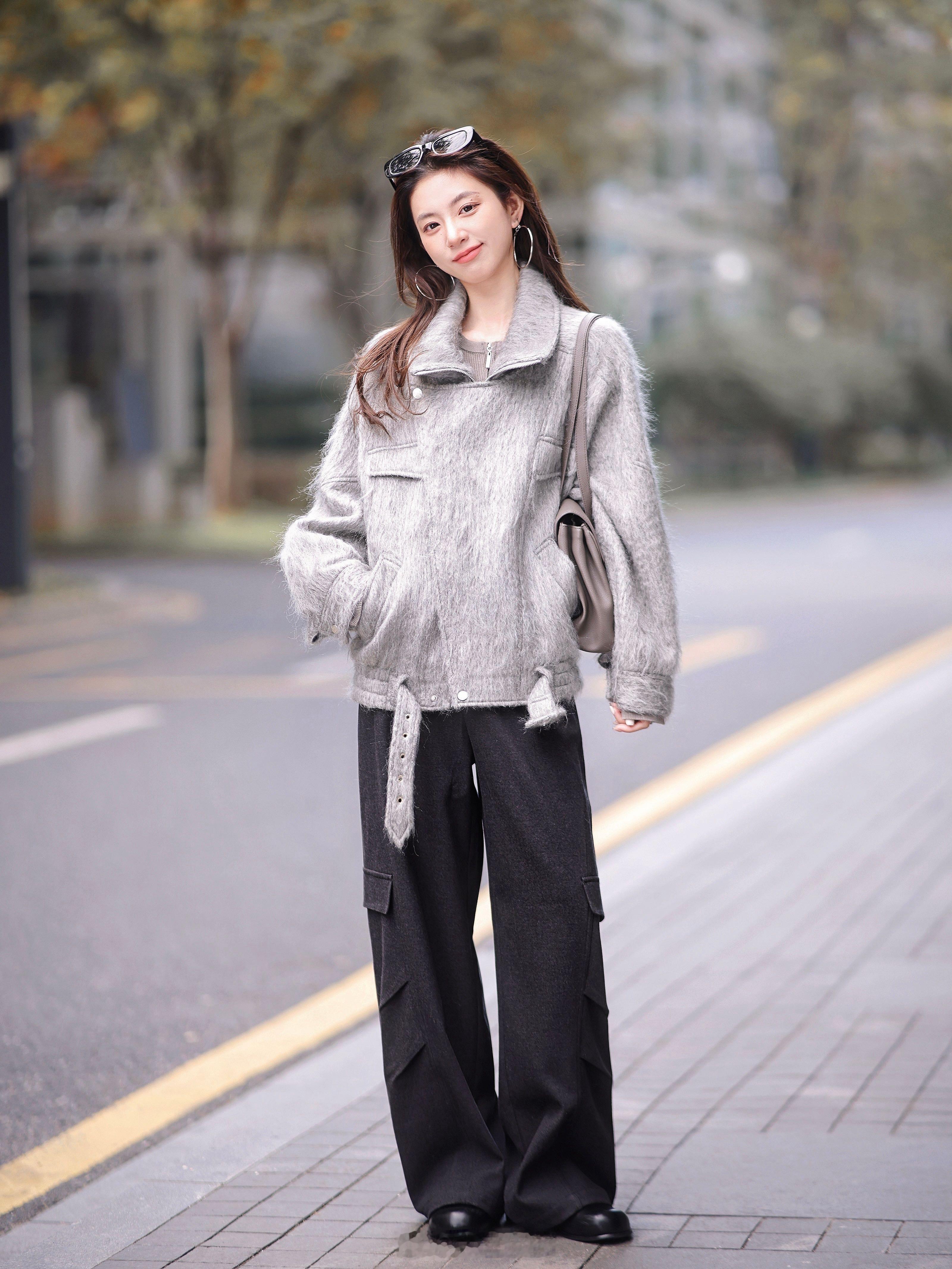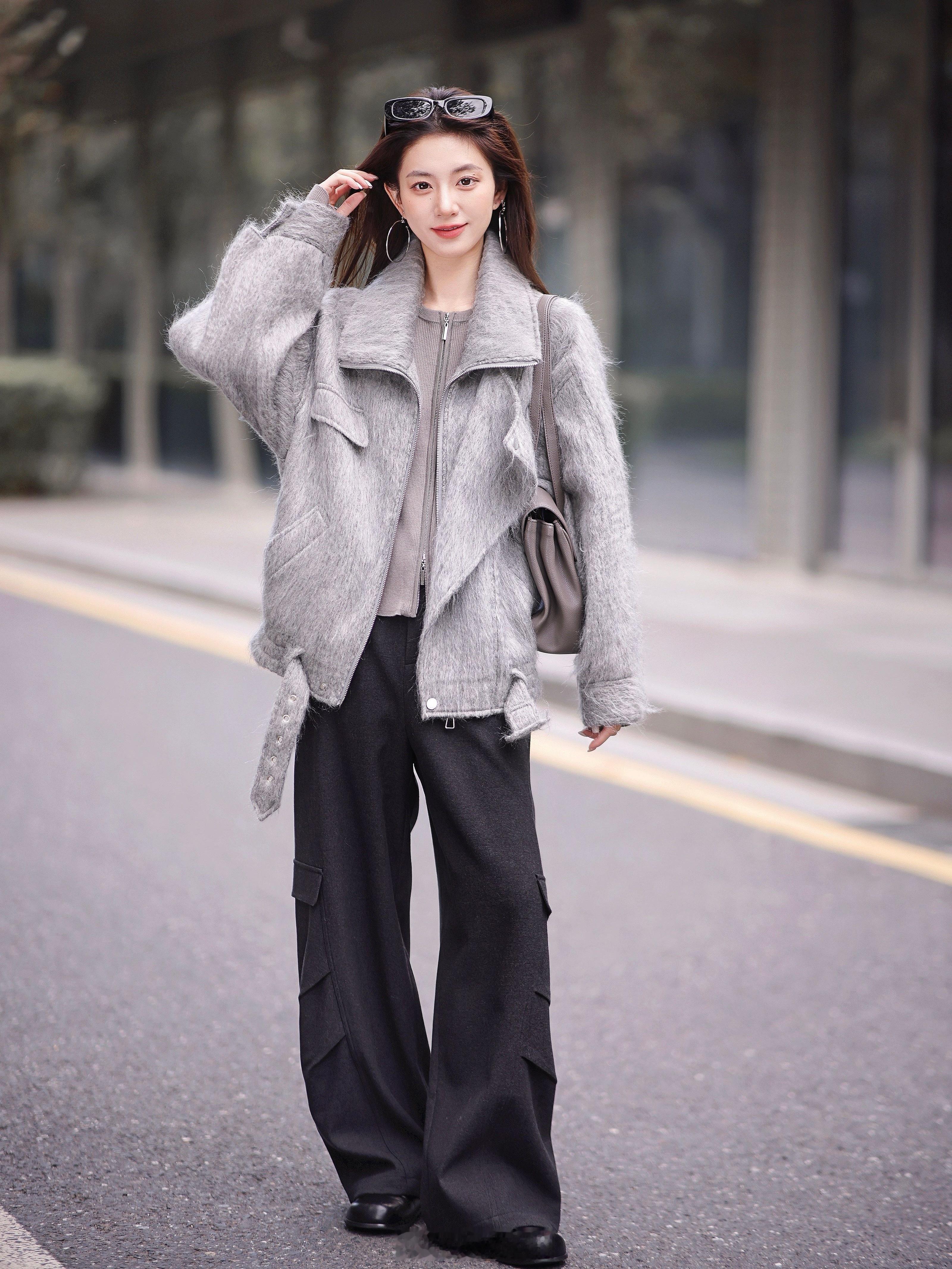 又是酷酷的一天~64支澳毛*马海毛 做了拉绒工艺 轻轻软软又暖和双门襟设计 更挡