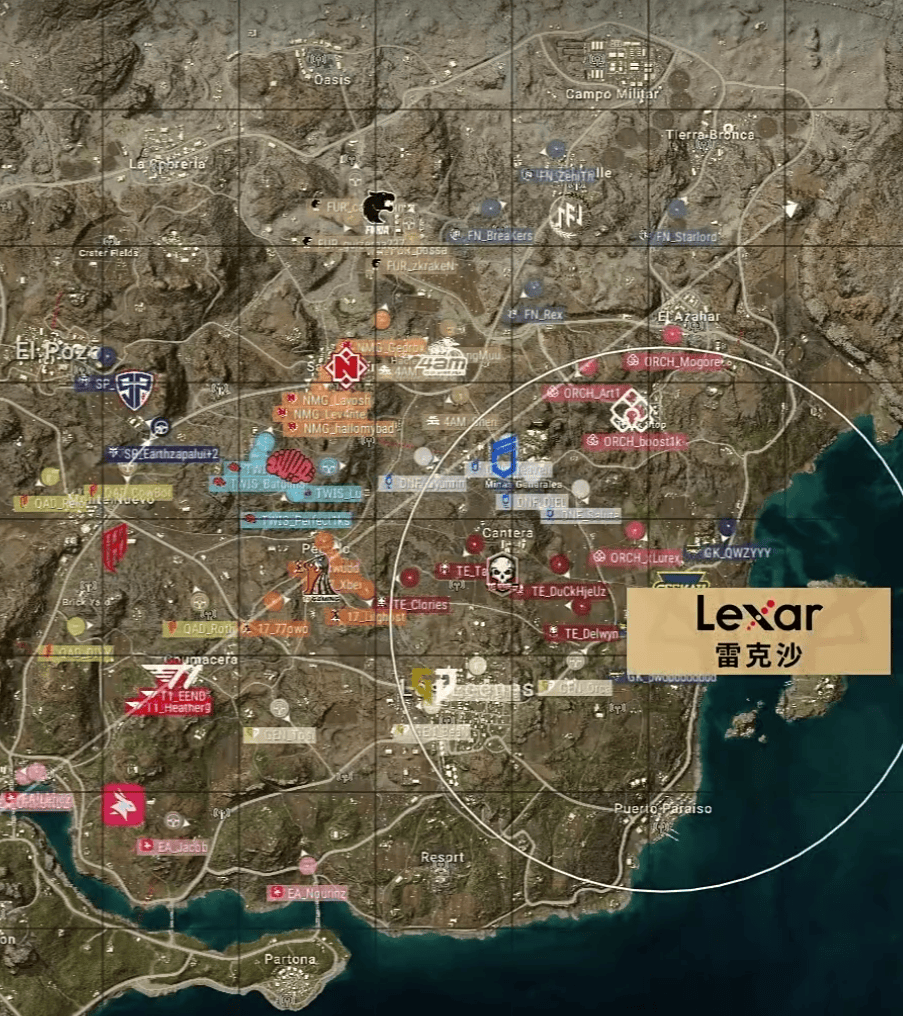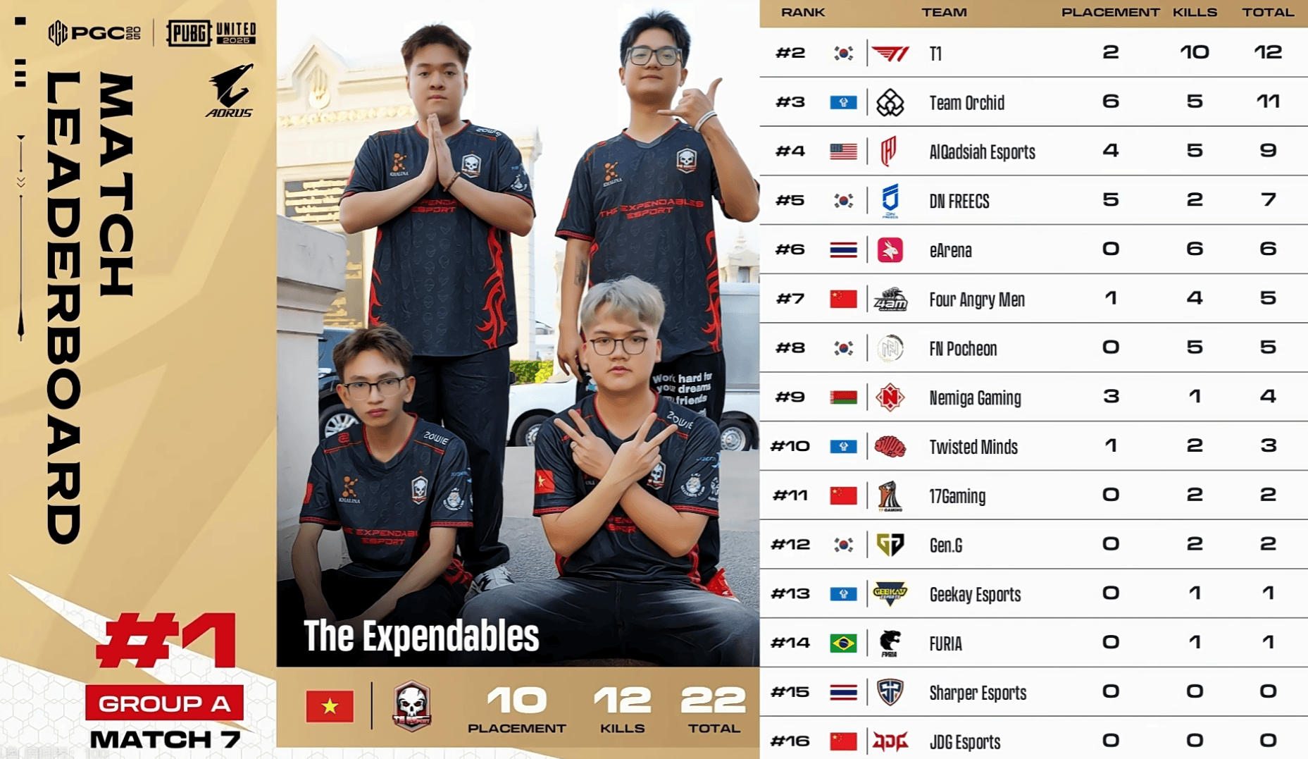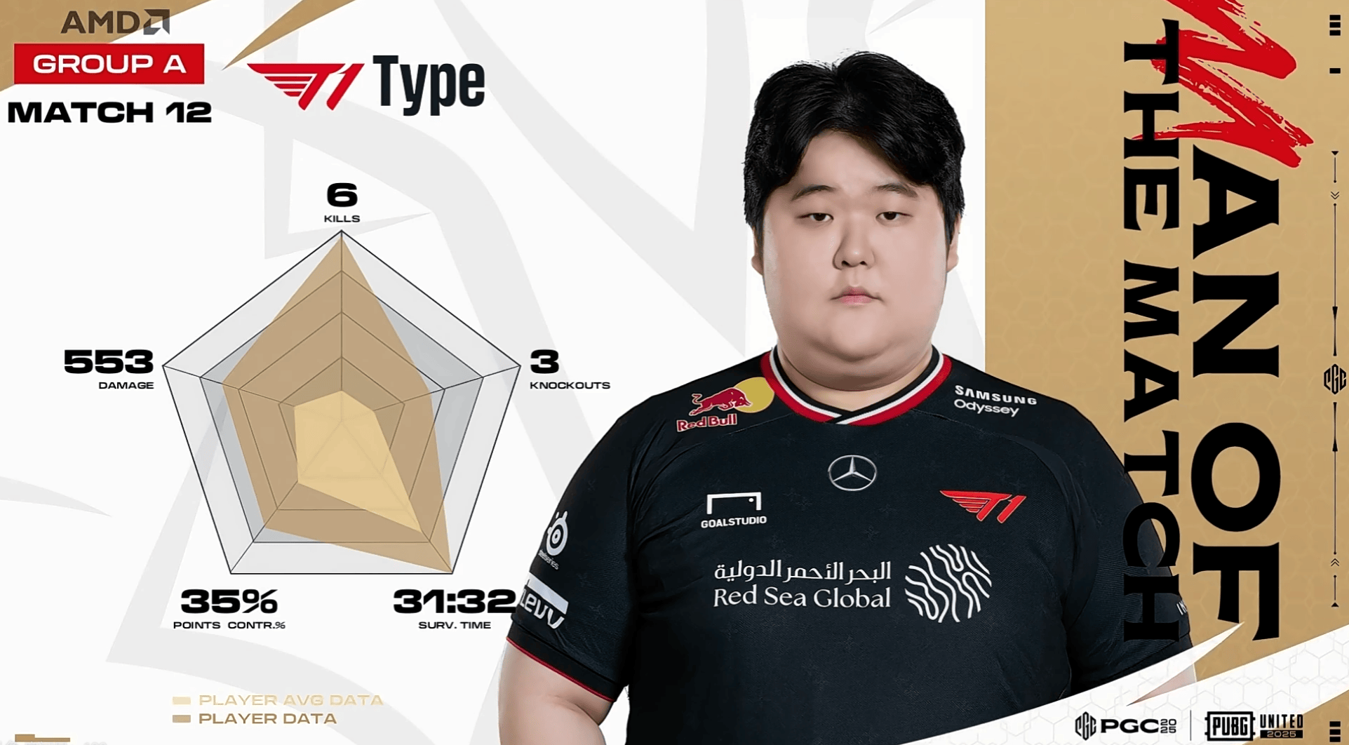 阶段8剩余6队,T1占据圈中心房区,4AM进圈先被淘汰,DNF被T1淘汰,ORCH独狼被T1淘汰。