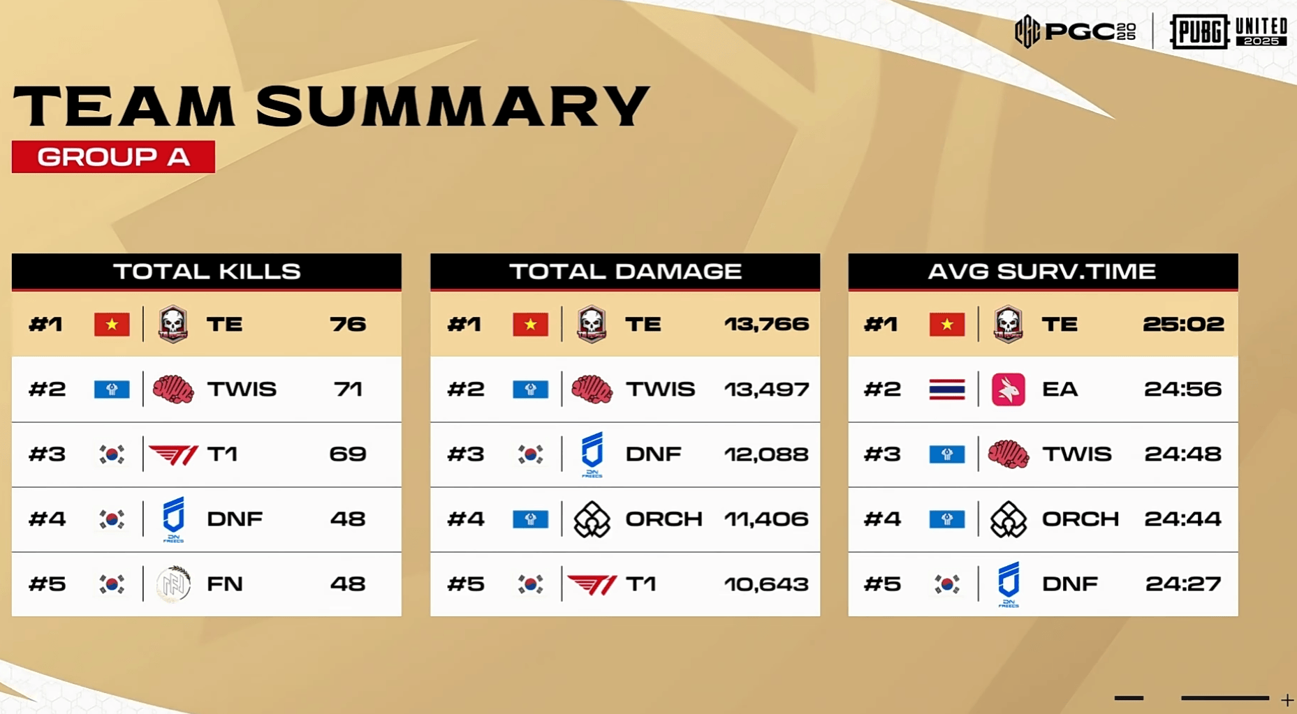 PGC2025A组小组赛D2:TE、TWIS大优势领跑,JDG垫底形势危急