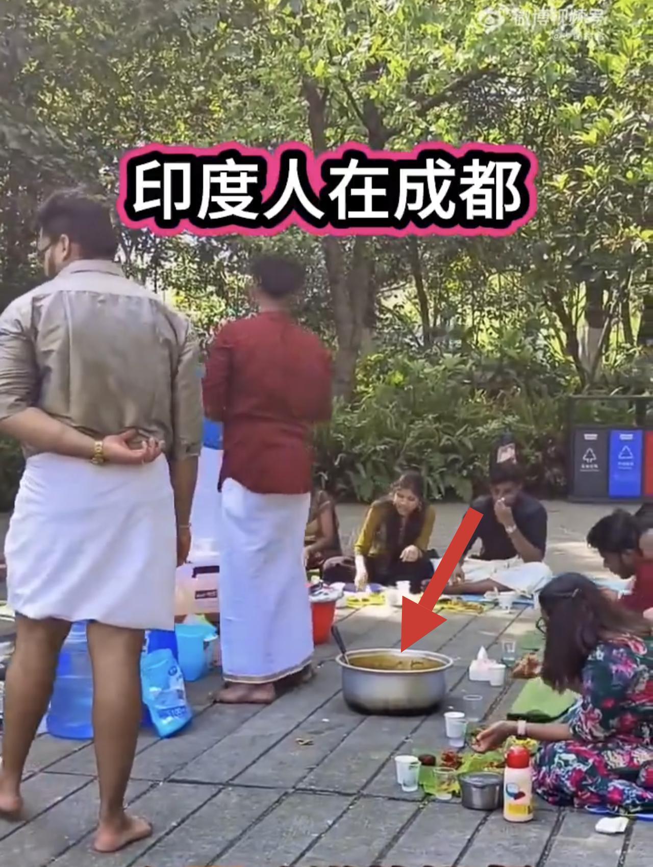 印度人到哪都要扎堆[笑哭],这真不是乱说的!近期在四川的成都,一位网友在公园内,偶遇一群印度游客,在热火朝天地煮饭[黑线]。 他们就地搭起简易炉灶,锅中煮着印度菜。一群人就直接席地围坐,一边吃手抓饭一边聊天[震惊]。网友说在老远,一股咖喱味就扑鼻而来。 印度人这松弛感,当真是名不虚传[赞]!在陌生国度都能就地做饭[大笑]!不过公园是公共场所,这些印度人未免太随意了,你对这事咋看的?说下你的看法吧!