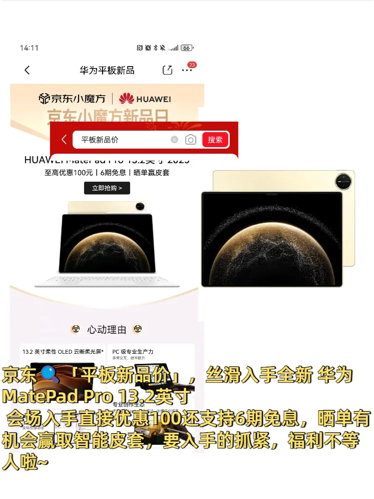 现在京东🔍【平板新品价】,直达会场入手,能减100元,还能以旧换新和支持6期免息,而且京东次日达真不是吹的,早买早享受!