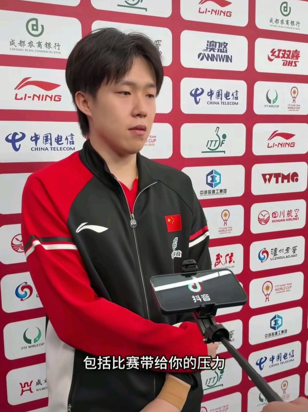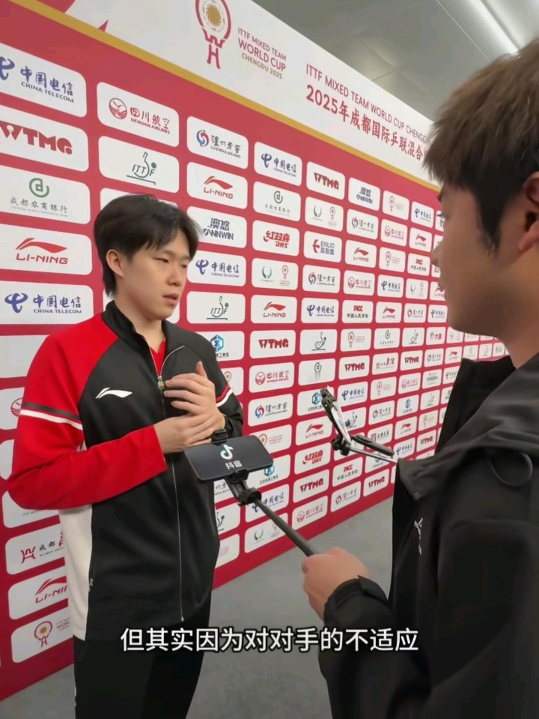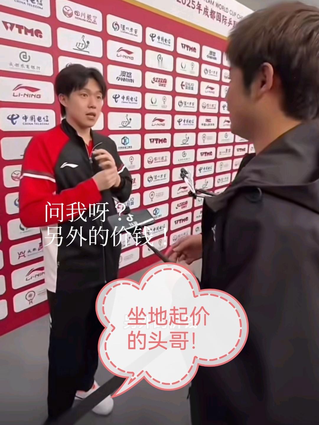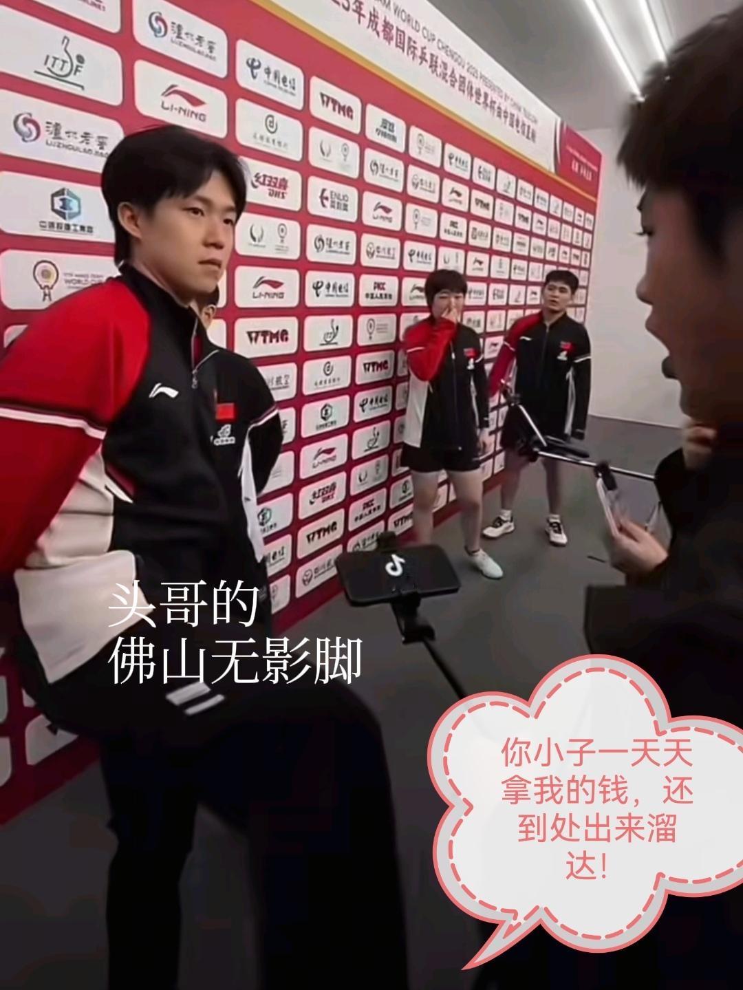 今天是一本正经调皮的王楚钦,对于熟人局曹巍的采访,王楚钦每次都能整出不同的花样。 对于成都混合团体世界杯首日的比赛,国乒队对阵港队过程有点惊险,结果非常美好。 第一盘,第一局王楚钦、孙颖莎开局即失误连连,港队黄镇廷和杜凯琹打出7:3领先的前半局,后半局国乒混双开始追分从3:7落后到8:8追平,12:10拿下第一局。 第二局国乒混双莎头组合,展现出他们自己的优势从3:3开始连续得分来到8:3,11:8国乒混双莎头组合拿下第二局。 第三局属于跌宕起伏的一局,4:1的开局莎头组合领先,局中8:3依然是莎头组合领先,港队混双组合也没有放弃,从4:9落后到9:9追平,10:9率先拿到第三局局点的港队混双未能从莎头组合手里夺回一分,莎头组合再次以12:10拿下第三局。 第二盘蒯曼对阵朱成竹,11:4、11:9蒯曼在顺利拿下前两局后,第三局5:4蒯曼领先,双方交换场地后被港队朱成竹逆转以11:9拿下第三局。 第三盘林诗栋对阵林兆恒,这是一场实力悬殊太大的较量,可以说林诗栋以不费吹灰之力拿下三局比赛,三局比赛港队林兆恒一共拿到八分,3:11、4:11、1:11,可以说林诗栋以绝对优势碾压胜出。 拿下首场比赛的胜利,国乒队一身轻松的迎接赛后采访环节,当草莓熊远远第开始比划手势庆祝国乒赢下第一轮的时候,头哥对着开始了一本正经的胡说八道,头哥问草莓熊,采访我呀!另外的价钱,还不忘给草莓熊来上一招“佛山无影脚。” 玩归玩,闹归闹,头哥回答问题还是非常认真的,就像他赛前宣誓的时候一样认真可靠。