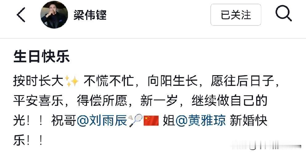 11月30日,羽毛球运动员梁伟铿发文为自己庆生,并祝黄雅琼和刘雨辰新婚快乐。 没想到梁伟铿也是广东队的运动员,因为全红婵在广东队,所以我对整个广东队的运动员格外关注。 梁伟铿发了8张照片,5张是庆生照,有3张是黄雅琼的婚礼合照。 梁伟铿用双手端着蛋糕,点了一根蜡烛,不知道他许愿没有,有两位好朋友陪他一起过生日。 梁伟铿还晒出了小时候的照片,看起来好可爱,那时候一点也不胖。 最后,祝梁伟铿25岁生日快乐,期待他在赛场上取得好成绩。