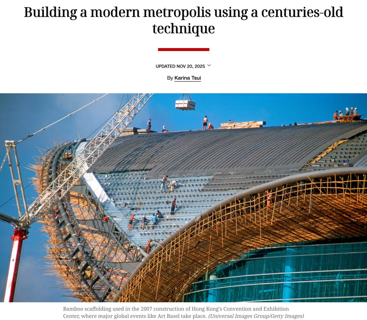 香港有专门的竹棚工会,目前全香港仍有数千名专门接受过古老竹架技术培训的建筑工人。