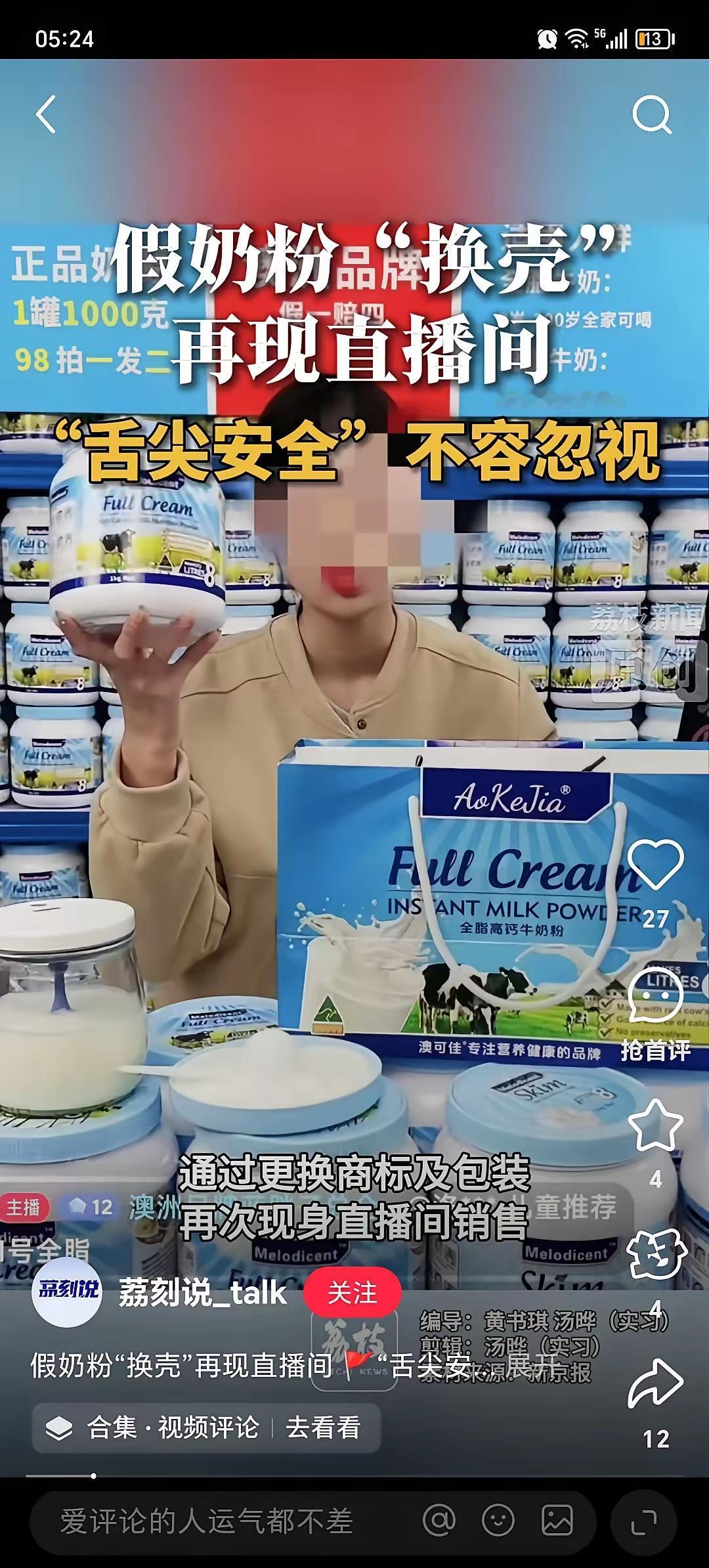 不出意外, 意外还是发生了——假奶粉靠几毛钱成本狂赚650万,这套路真的把人看傻了! 我在拼多多买的“奥纯蓝胖子”,号称澳洲进口全脂高钙,保税区发货才39.9元,趁着促销直接囤了6罐。结果看网友评论才知道,这牌子在澳洲根本没卖的,只有寄中国的代购店才有,成本3块钱卖88块,纯靠淀粉加奶精忽悠人。 现在太多假奶粉打着“进口”“保税区”旗号骗钱,包装做得比真货还像回事,家长们很容易踩坑。其实买澳洲奶粉认准德运、a2这些线下能买到的品牌,别被低价和噱头冲昏头。 黑心商家赚的是昧心钱,坑的是信任。你有没有买到过假奶粉?评论区说说你的避坑经验!