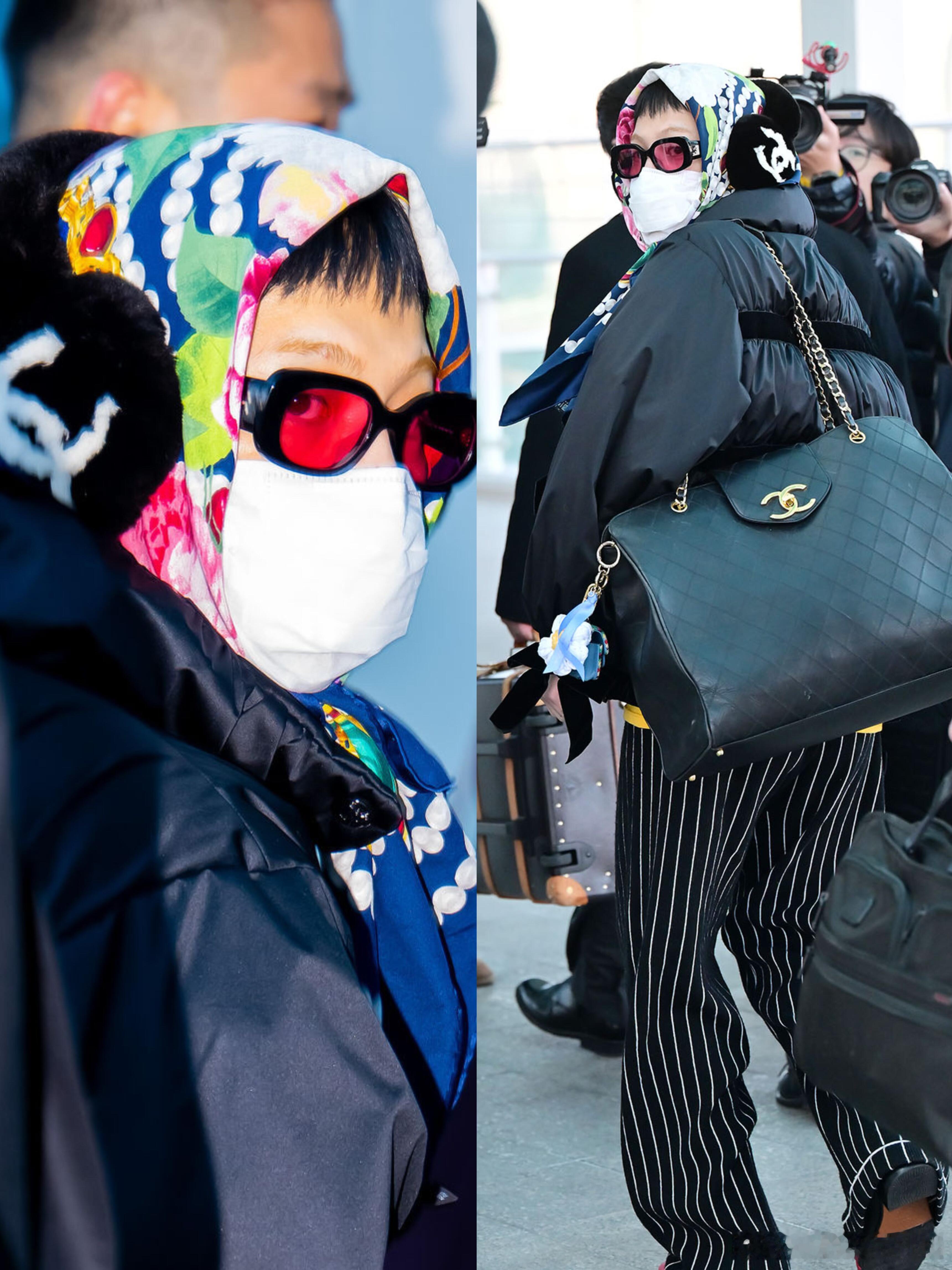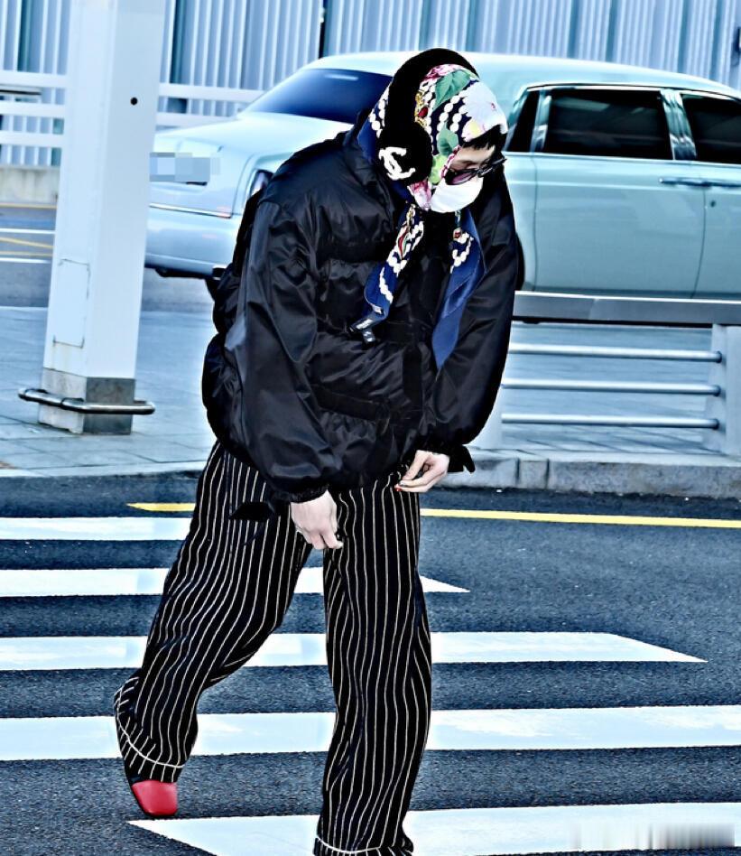 权志龙今天机场造型✈️ 这是爱上了包头巾