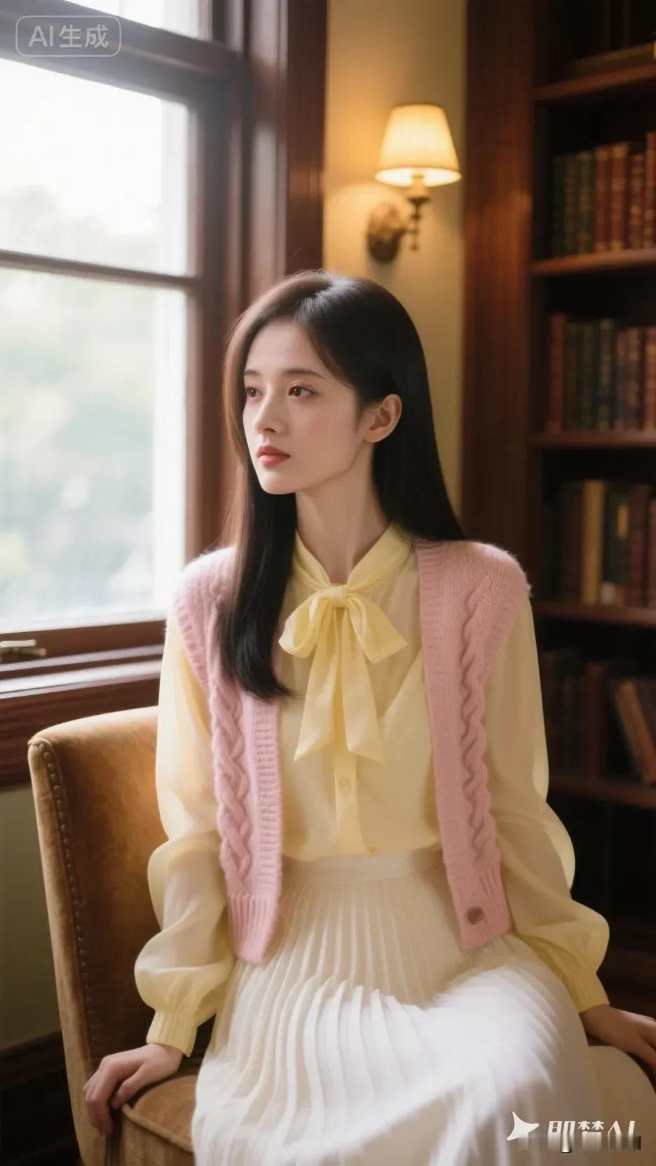 鹅黄裹着粉绒的软,领间蝴蝶结牵起窗畔的光,书页的香浸在温柔里。 温柔气质少女风 气质少女感