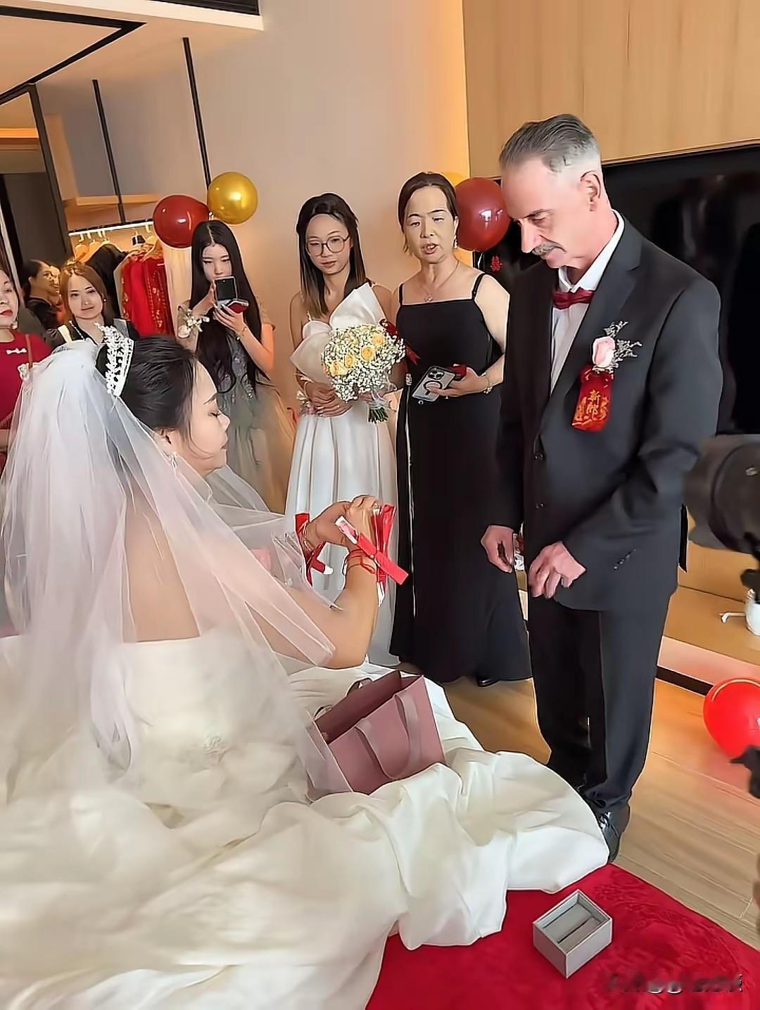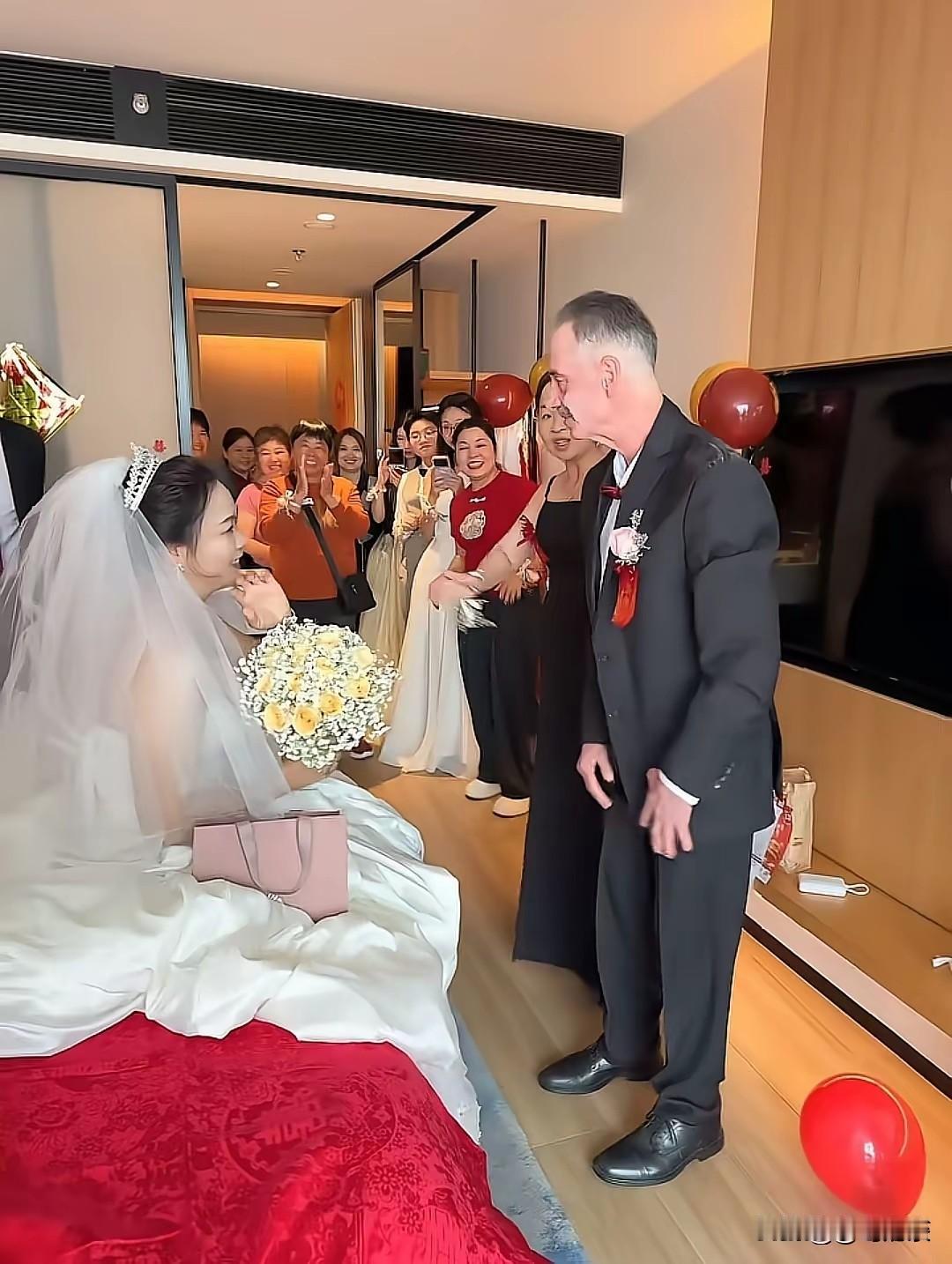中国美女如愿以偿嫁给了外国老头,高兴的抑制不住,从她喜笑颜开的脸上看到了她的喜悦,而且她的亲朋好友热烈鼓掌送上了美好的祝福,每个人都是喜笑颜开!虽然新郎官年龄不小,甚至都可以当新娘的爷爷,但是绿卡到手。 新娘的朋友们投来了羡慕的眼光,毕竟中外结合,从此攀上了高枝,生活一飞冲天,老少配也是现在流行的搭配。