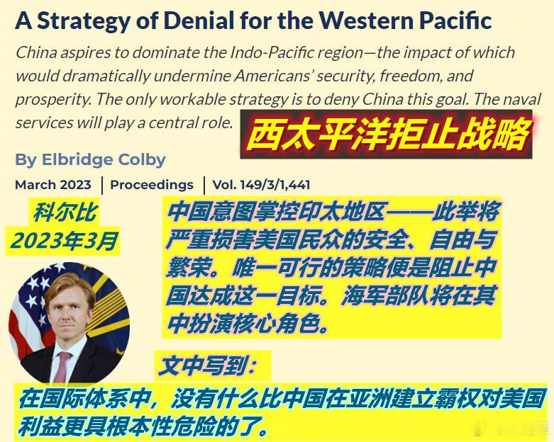 图1:2023年科尔比的文章及主要观点;图3:2025年他成为五角大楼3号人物后