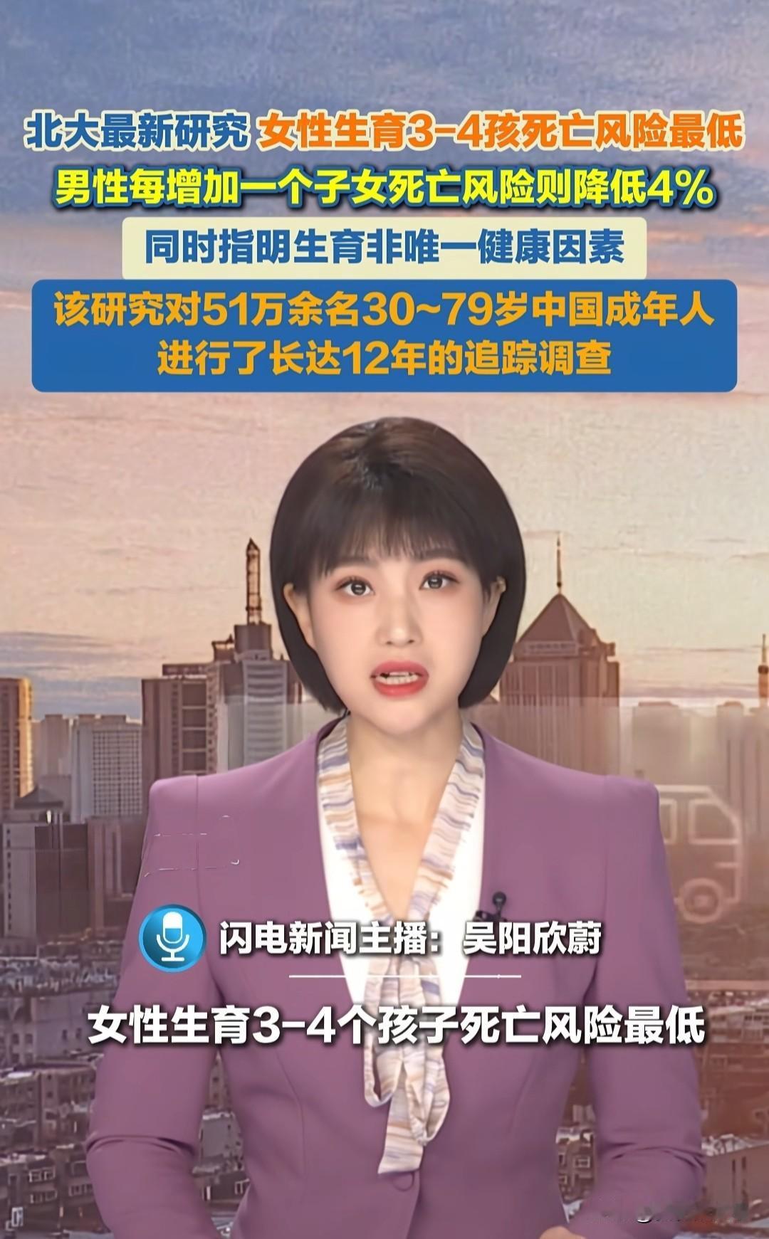 生娃能更长寿?最近有研究这么说:男性多一个娃,死亡风险就降一些;女性生3-4个,风险最低。 可我一琢磨,这结论有点站不住脚。你想啊,能生三四个的,好多都是几十年前的人了,那时候生活条件、医疗水平都不一样。再说,能多生娃的,往往身体底子好、家里条件也不差——到底是生娃让人长寿,还是本来身体好才多生娃? 感觉这类研究,不如多关心点实际的:比如少加点班,人会不会活得更舒心?或者轻松一点,大家是不是更愿意生? 你咋看?