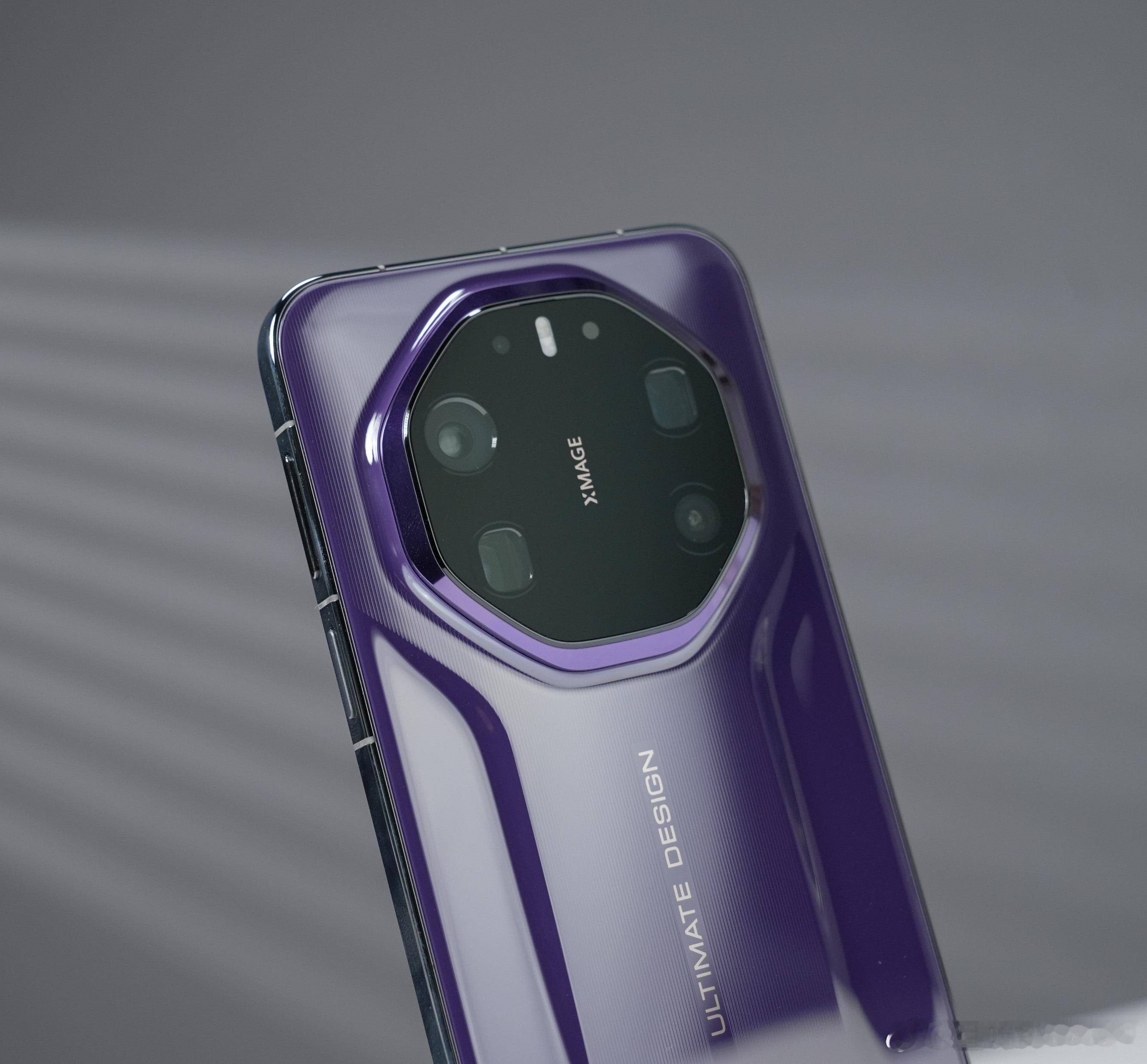 Mate 80 RS首次了使用非陶瓷的机身,为啥改为玻璃背板?重量占很大因素,毕竟RS代表极致堆料,再加上陶瓷机身,拿着确实有压力。正面是第三代玄武玻璃,背面是第二代玄武玻璃,中框是钛金属,质感和抗摔都有了,并且观感也几乎和陶瓷相同。不过玻璃工艺虽然有进步,但和陶瓷的手感还是有差别,属于是在美观与实用性上做了个平衡。80RS辨识度这一块依然拉满,八边形的Deco加机身中间稍稍凸起的造型,这台紫色看上去就俩字“贵气”,有一种紫气东来的感觉。Mate 80 RS 非凡大师,这个外观10分满分,你给几分?