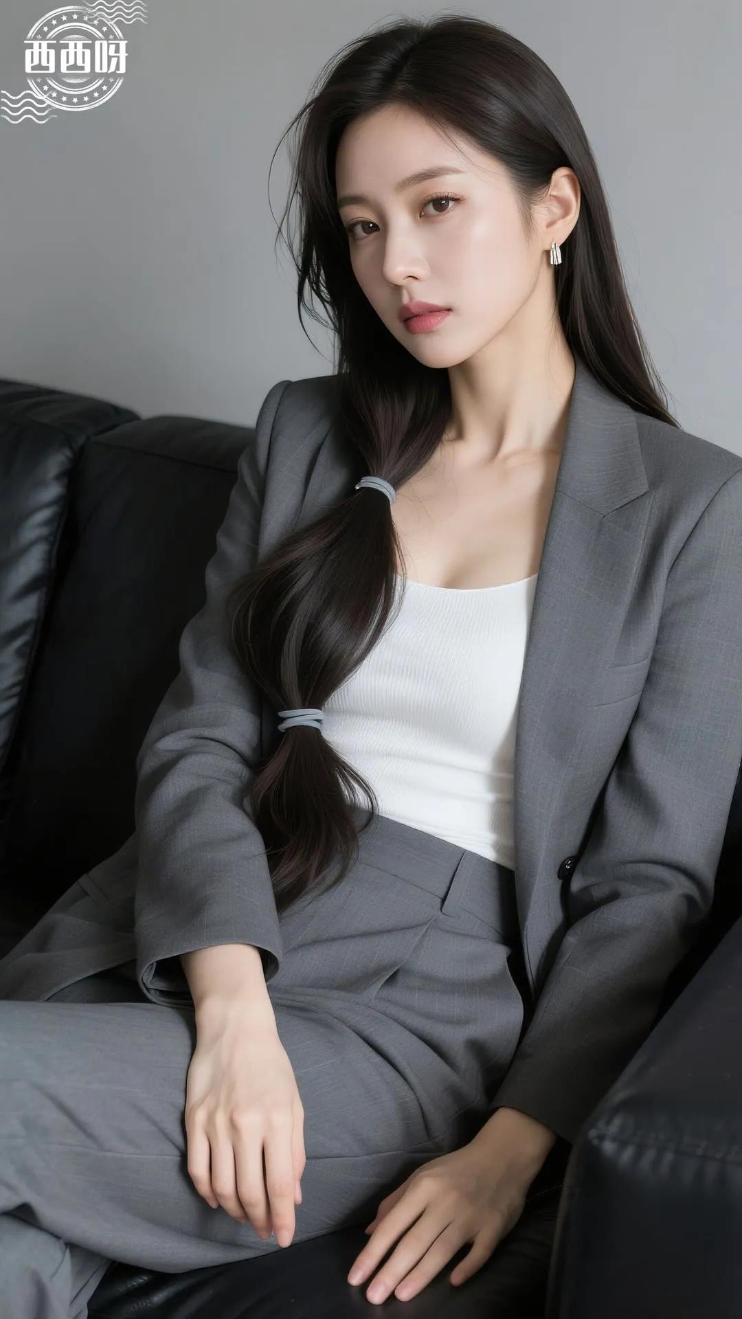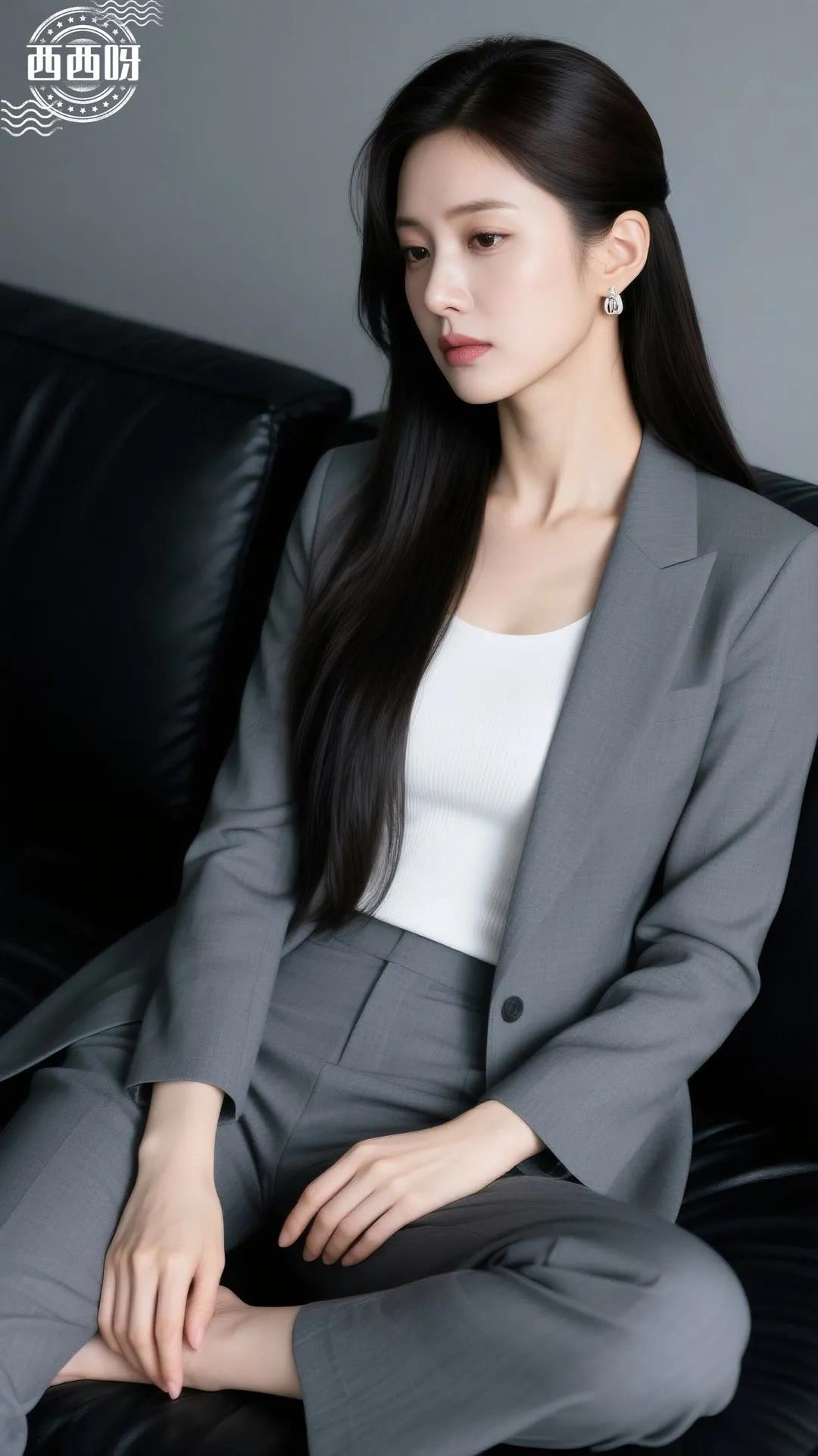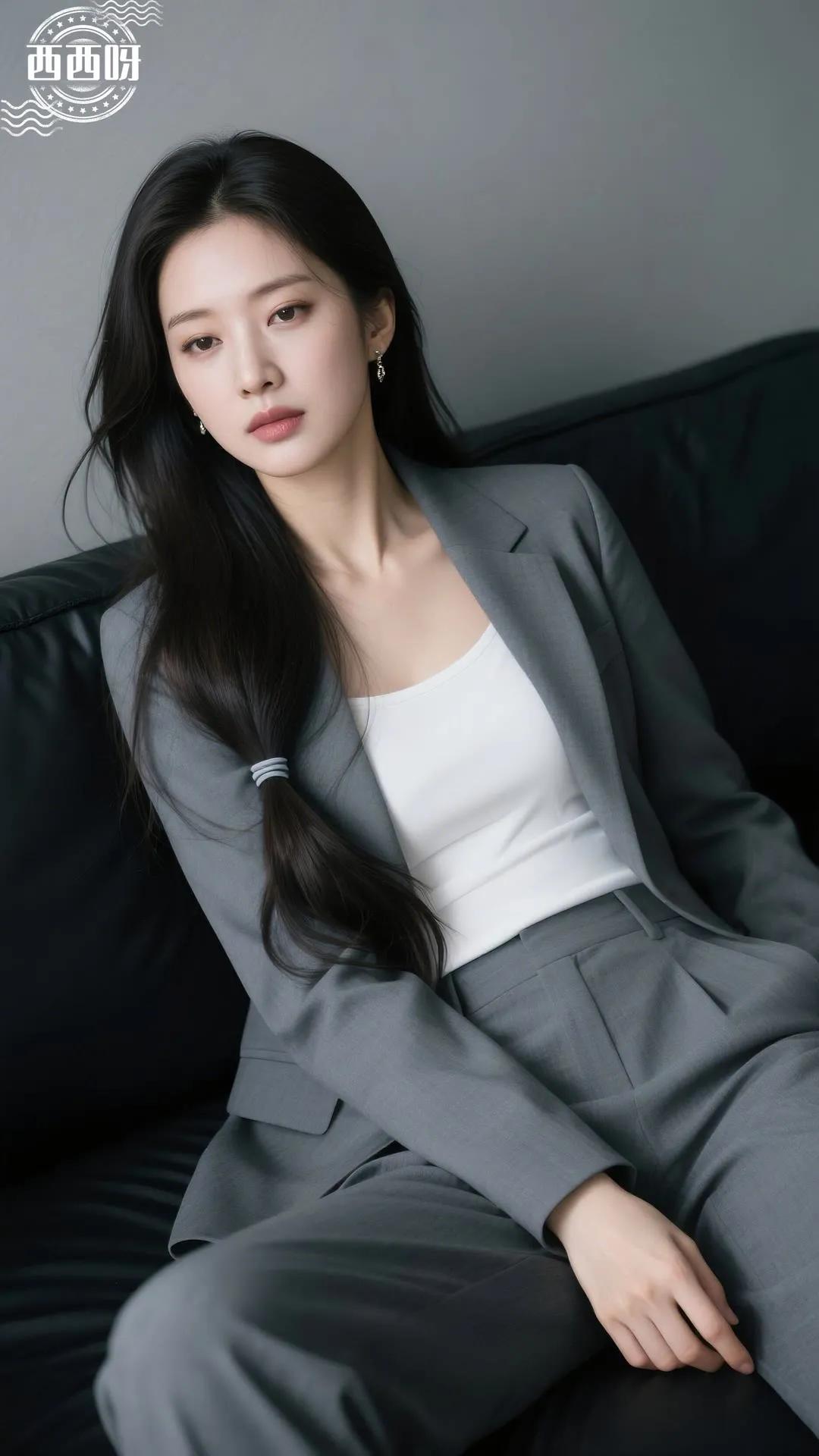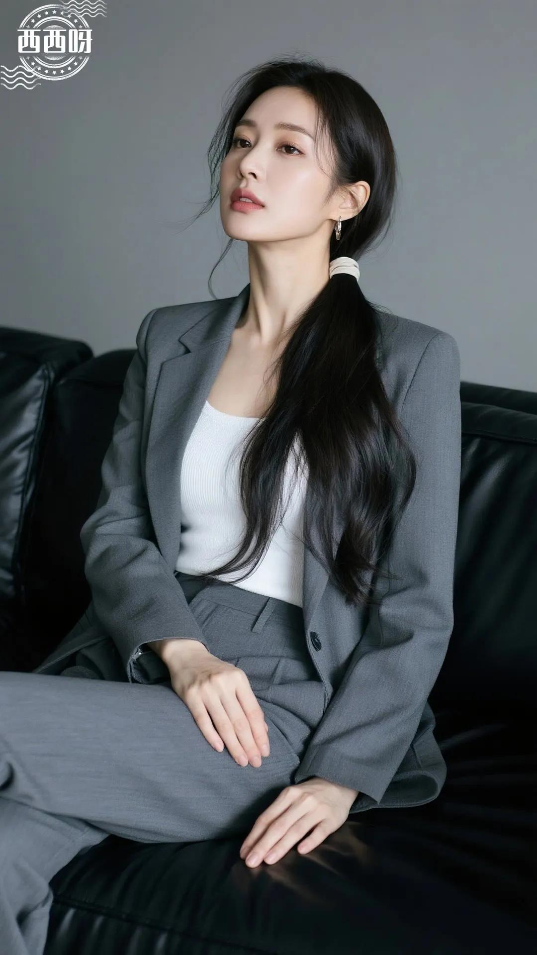 优雅职场风,灰色西装搭配白色内搭,尽显干练气质!