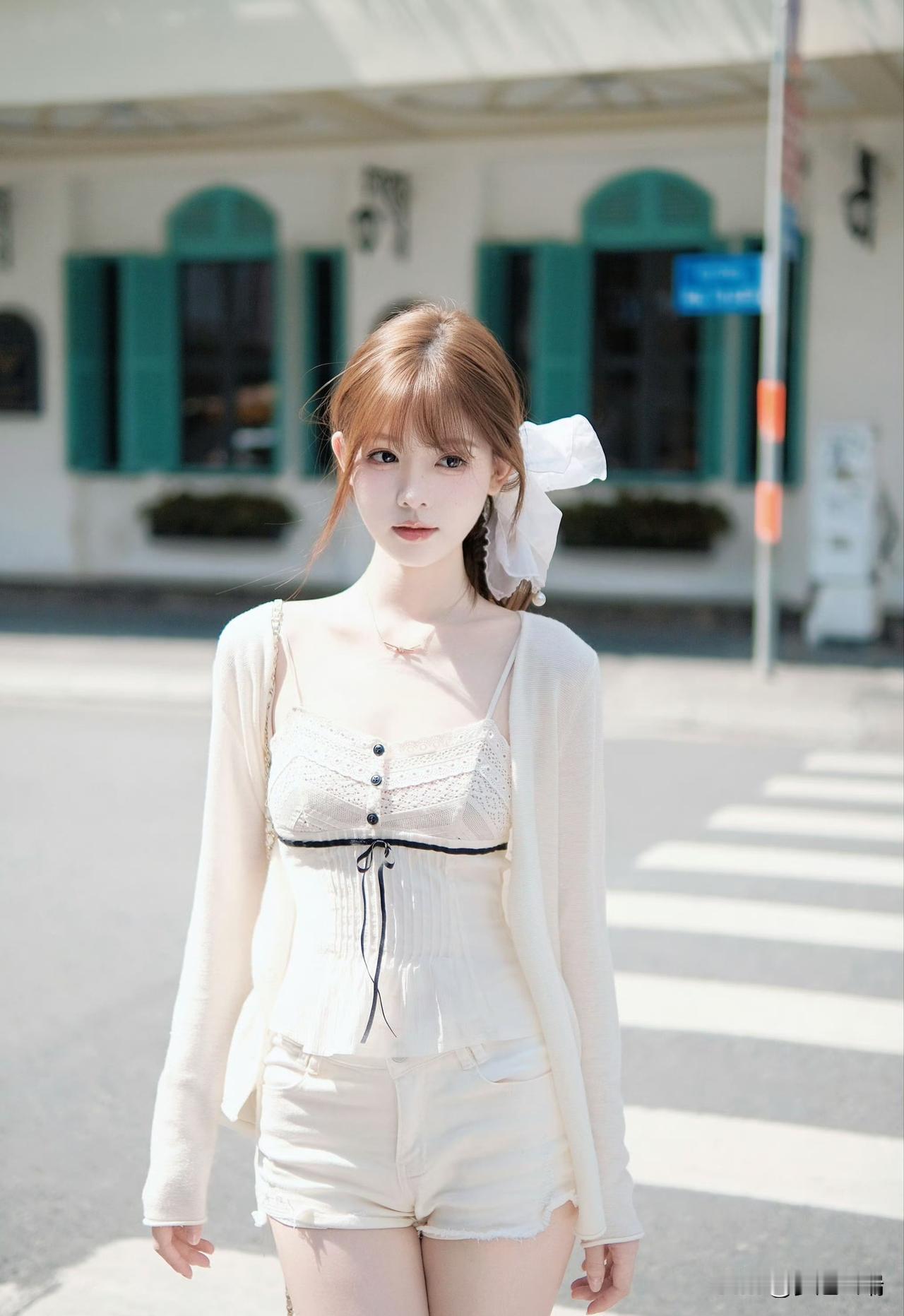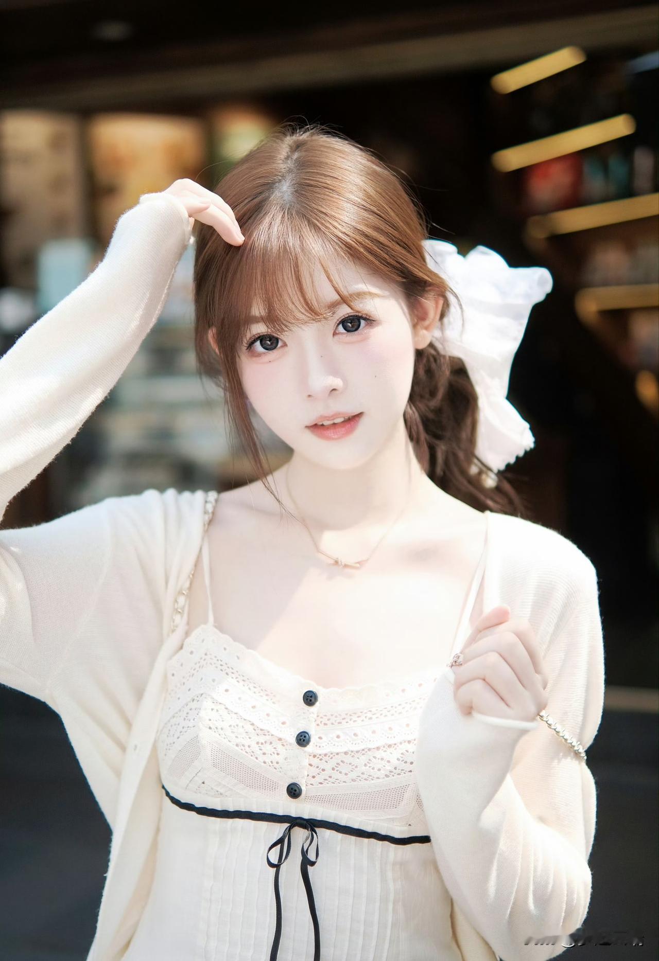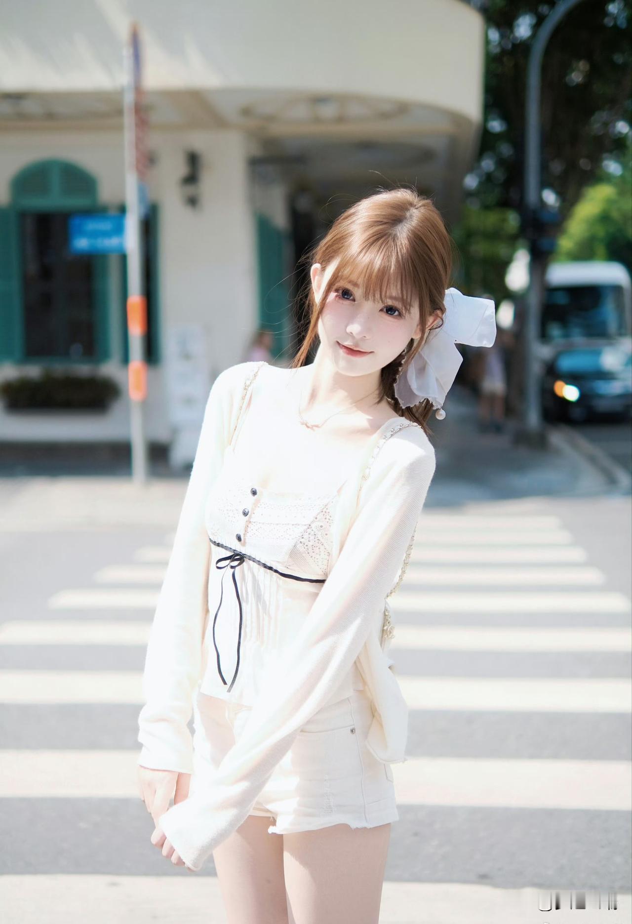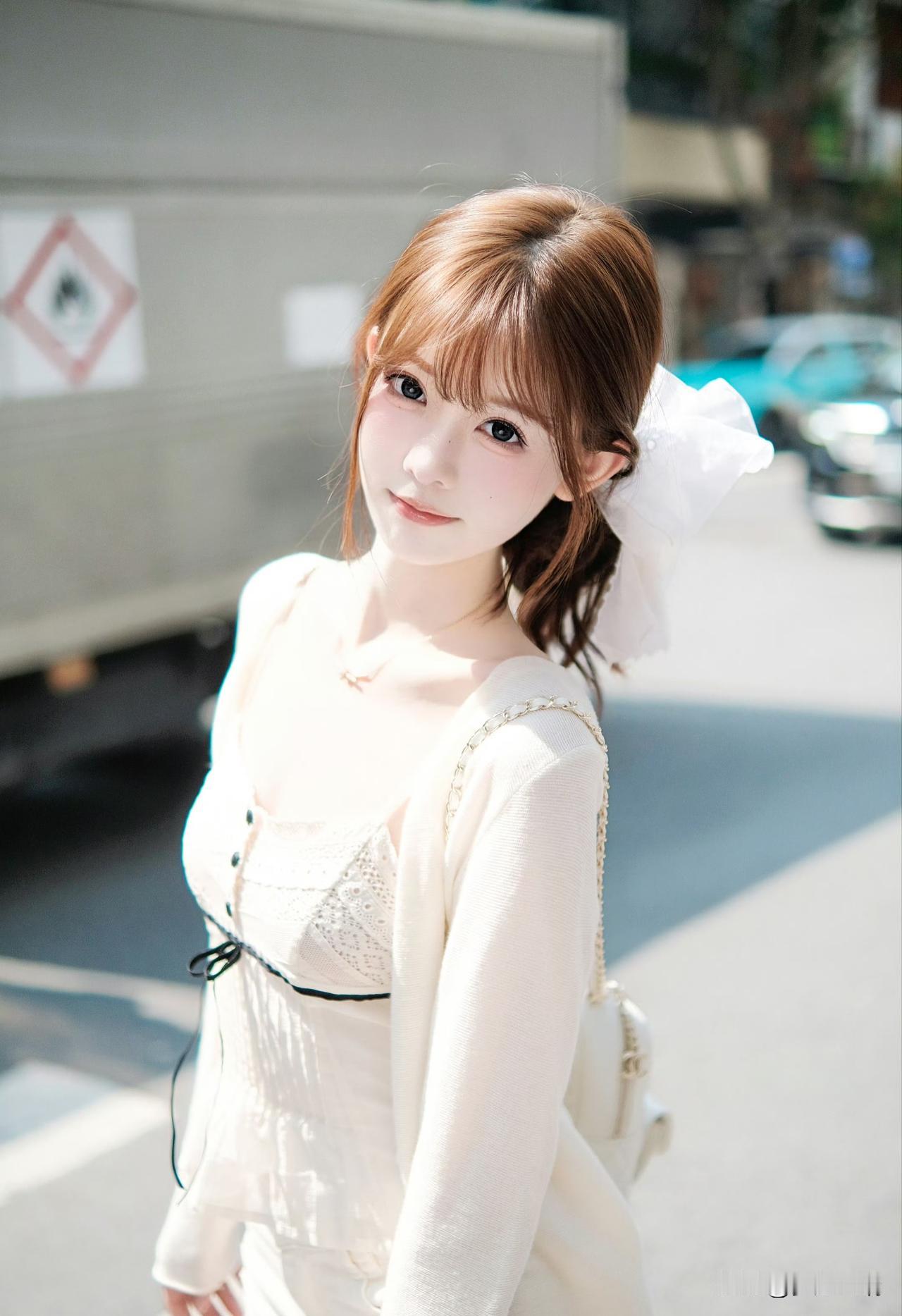 甜美少女风,白色连衣裙搭配精致发饰,清新动人!