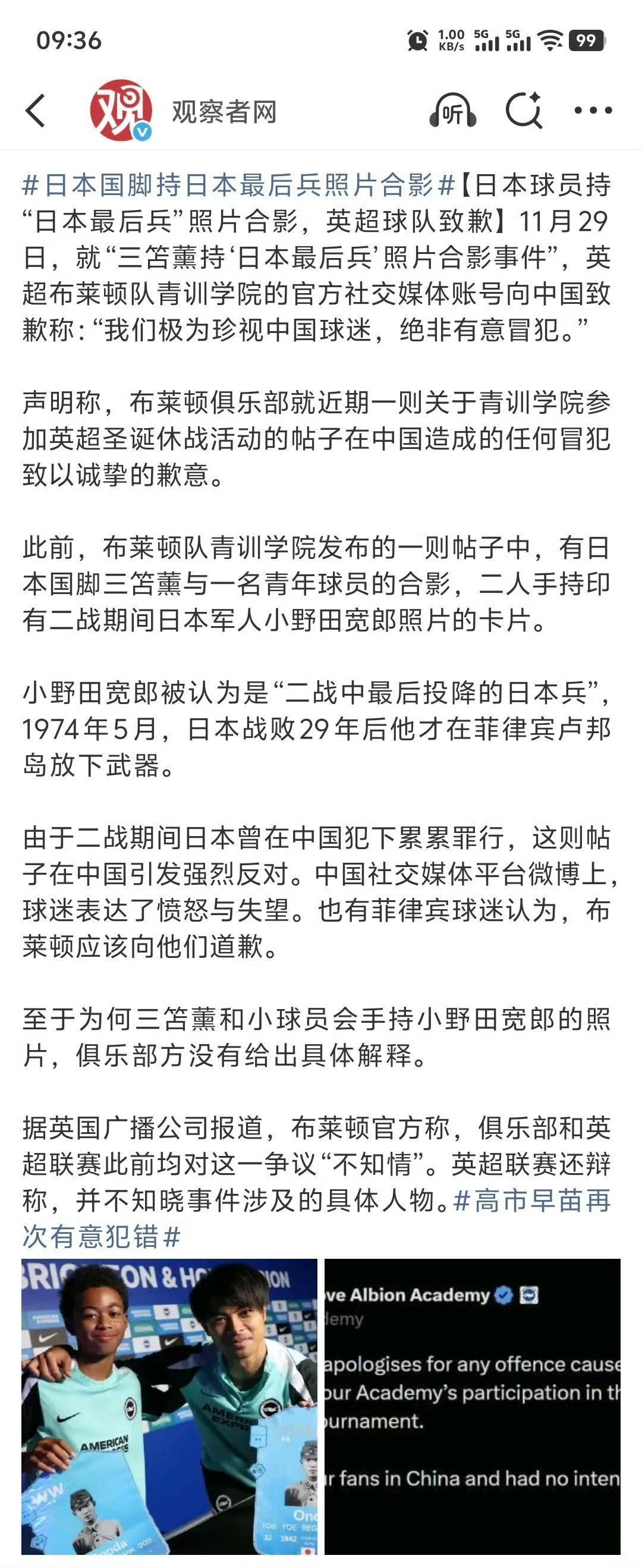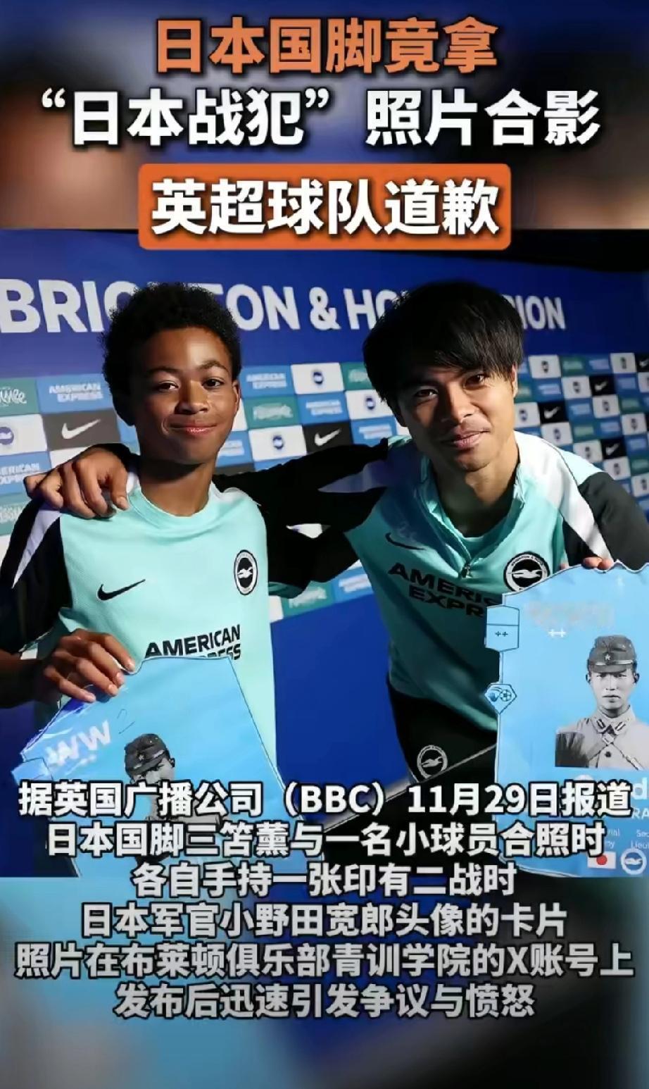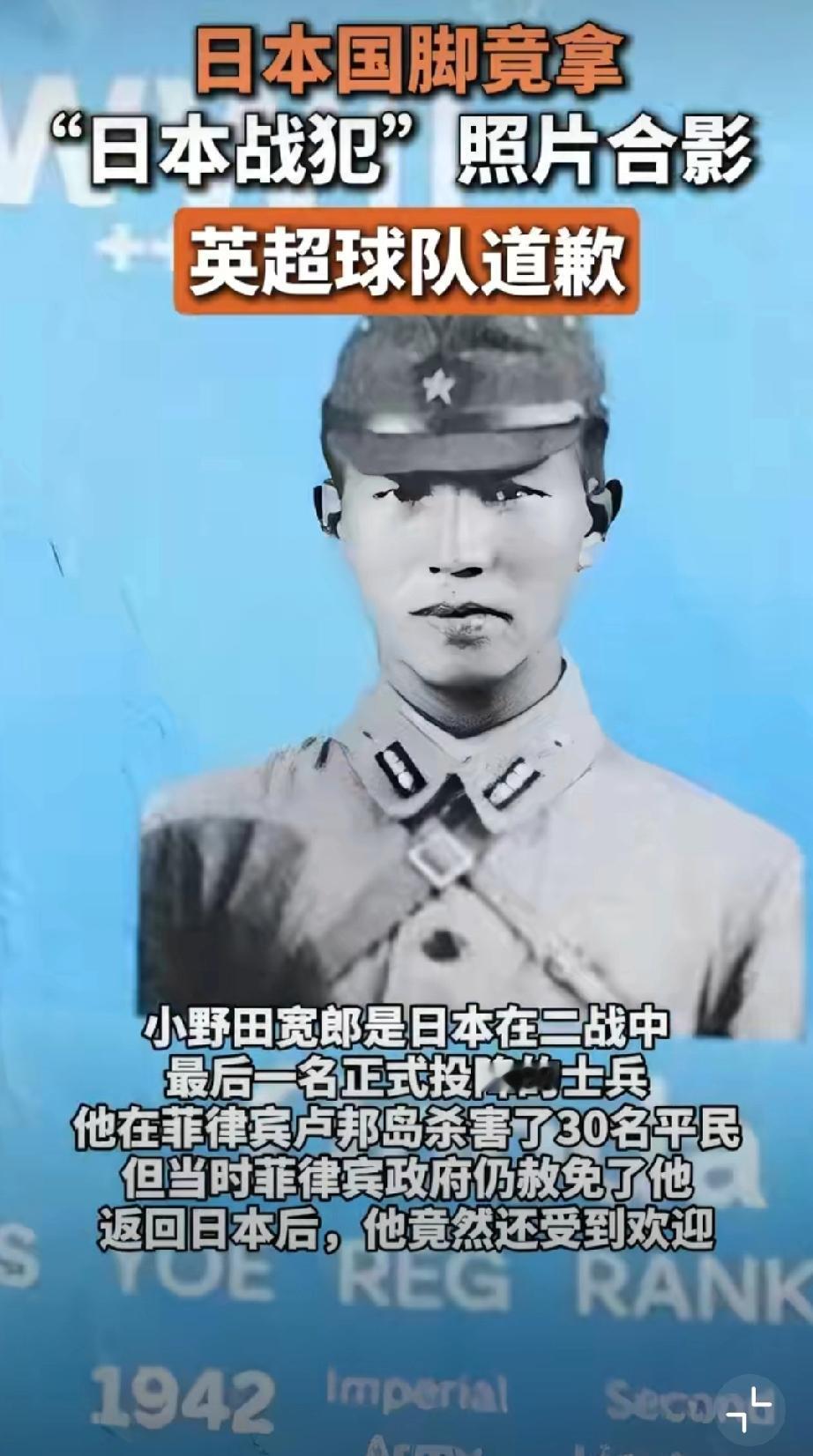 英超日本国脚手持日军军官卡片合影[发怒] 令人深恶痛绝的两大灾星联合发难是吧??? 就怕中国人忘了1840年英国发动鸦片战争和1931年日本发动侵华战争??? 从晚清的丧权辱国、割地赔款到民国的山河破碎、血流成河,罪大恶极的你们是不是没有半点悔过??? 留给英国人的时间不多了。2040年,旧账可得全部算清了能否发表一句人生的感悟 日本足球 日军合影