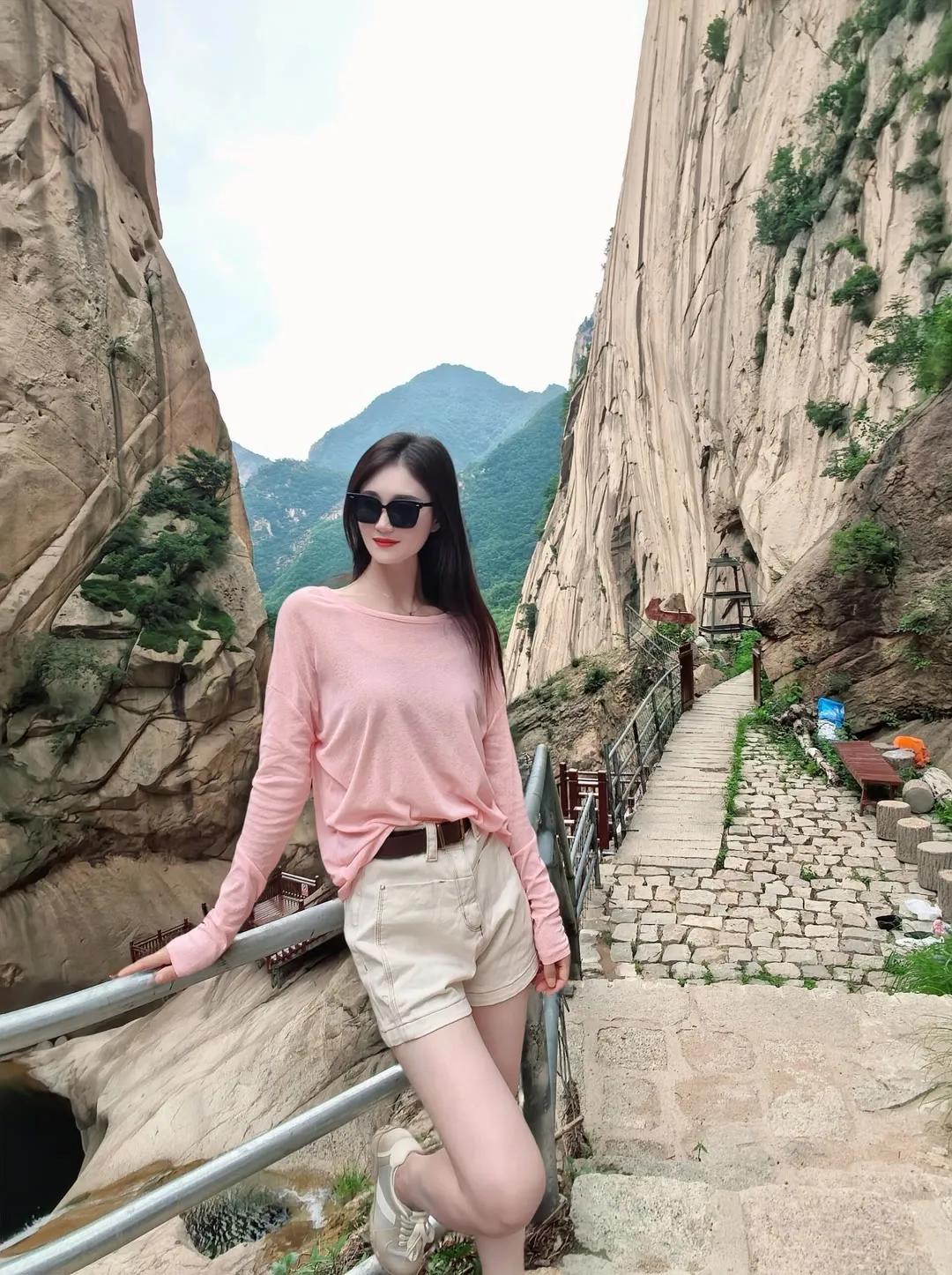 元气少女漫步山间小径,享受自然风光!街拍 高清美女
