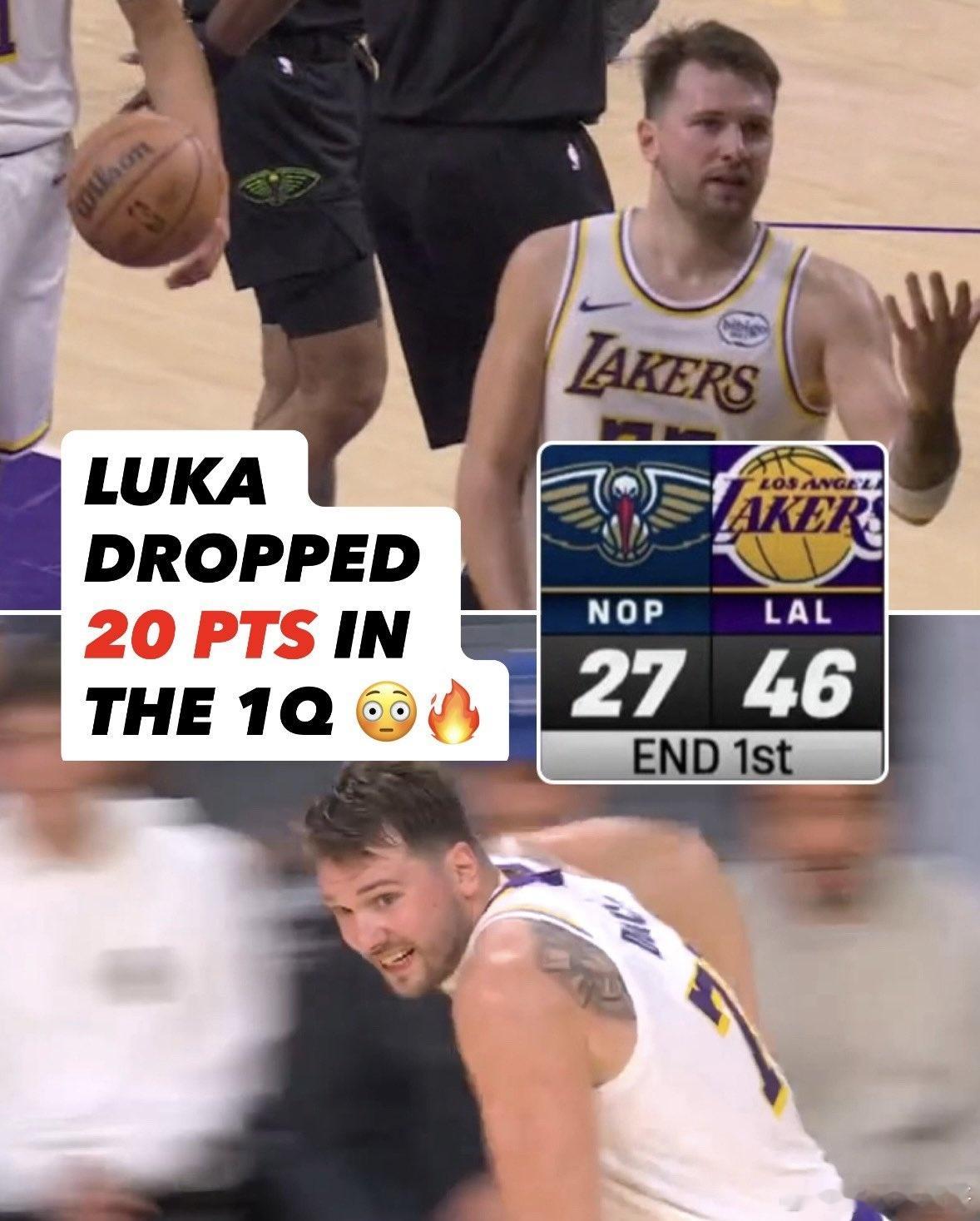 洛杉矶湖人 湖人队单节砍下46分,创下本赛季单节最高得分纪录!!!这也是湖人队史第四高单节得分!东契奇首节砍下20分,他刚一下场下场,里夫斯就立刻拿下6分!继续大火收汁……鹈鹕7人缺战湖人鹈鹕vs湖人