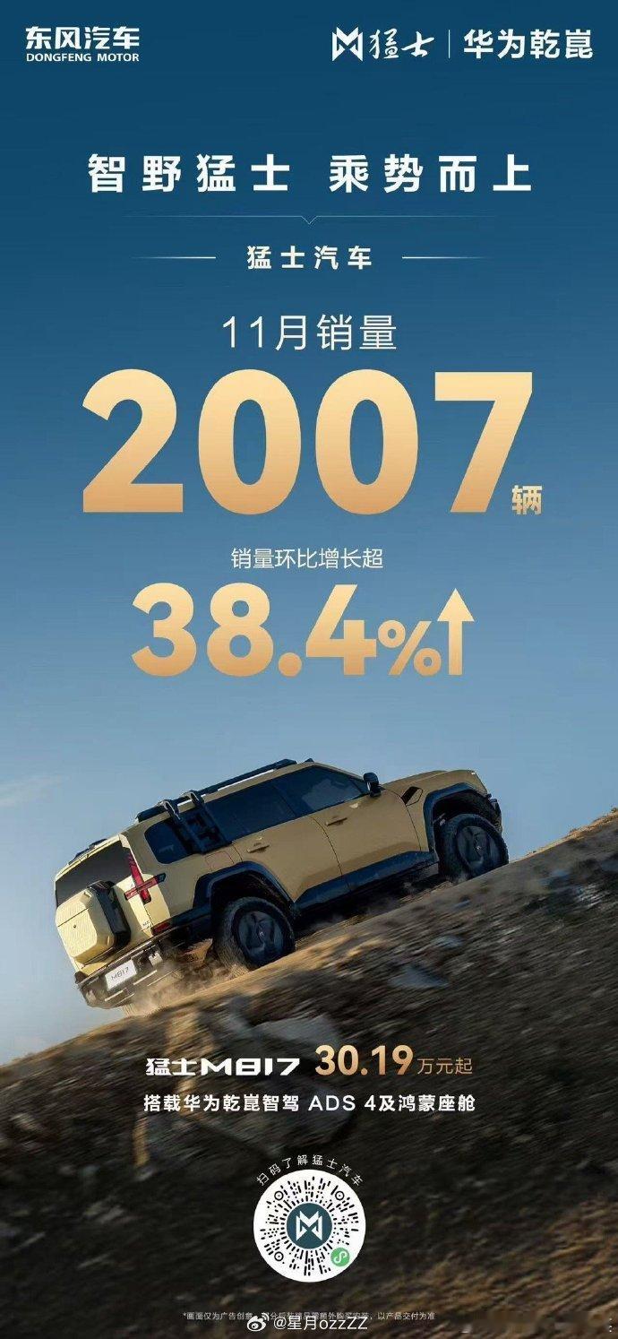 东风猛士11月销量2007辆,应该绝大部分都是817,917还是有点贵~大v聊车