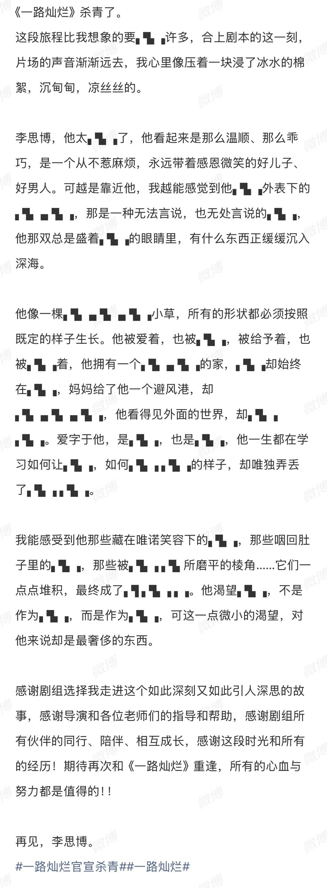 田嘉瑞 杀青作文打码 悬疑剧主演的保密自觉有多强?田嘉瑞杀青小作文写满真情,关键信息却被打码到“密不透风”,防剧透和剧宣仪式感双双拉满!