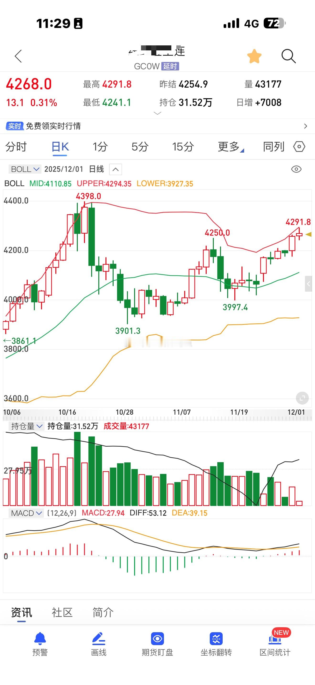 最高4291。距离4398又只有100美元了。嘻嘻嘻