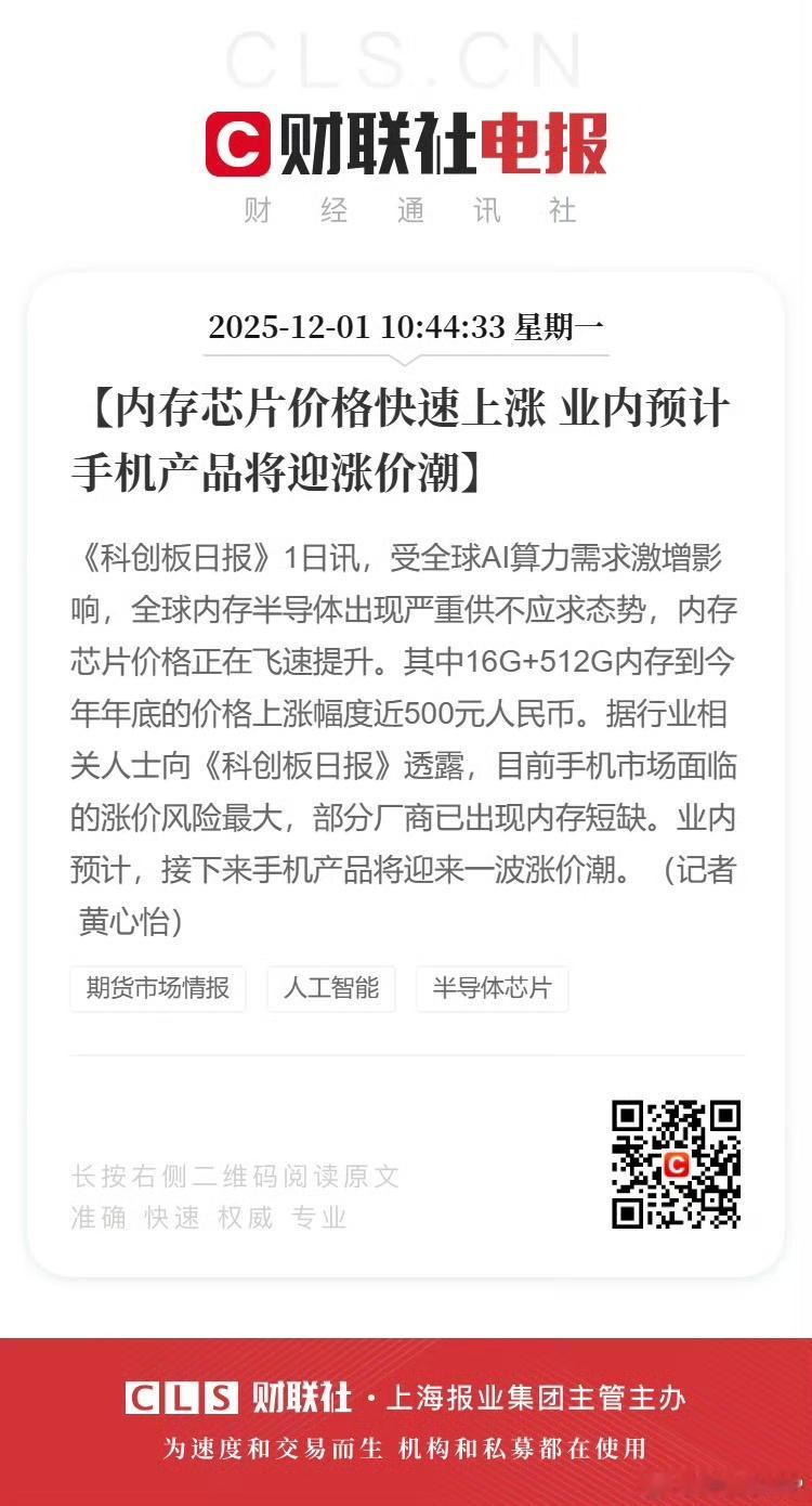 内存芯片价格大涨 如果没有张小龙,我用 256G 都够了。接下来手机要涨价了!