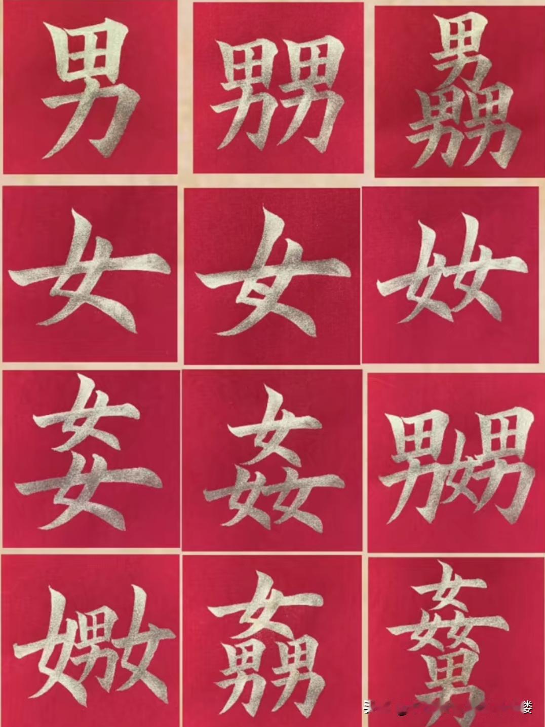 说到男女组成的字,还挺有意思。“嬲”(niǎo),男女男的组合,有戏弄、纠缠的意思,感觉就像男女之间那种小打小闹的拉扯。“嫐”(nǎo),女男女,它表示戏弄、扰惹,有种女生调皮捣蛋的感觉。“奻”(nuán),两女在一起,有争吵、争斗,也有柔和的意思,就像女生之间可能有小摩擦但也能很温柔。“玊”(sù),虽然不是男女直接组成,但“玊”和“玉”不同,这里暂且说说,“玊”指有疵点的玉,也可表示琢玉的人。这些字把男女间的状态用独特的字形展现出来,中华文化真是博大精深。