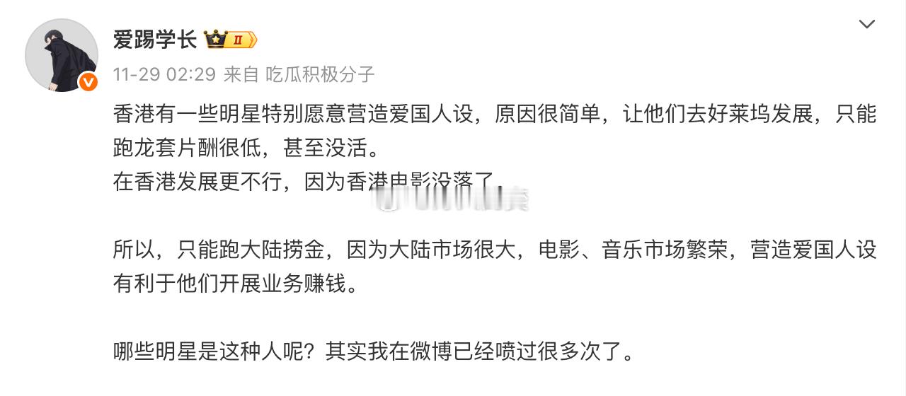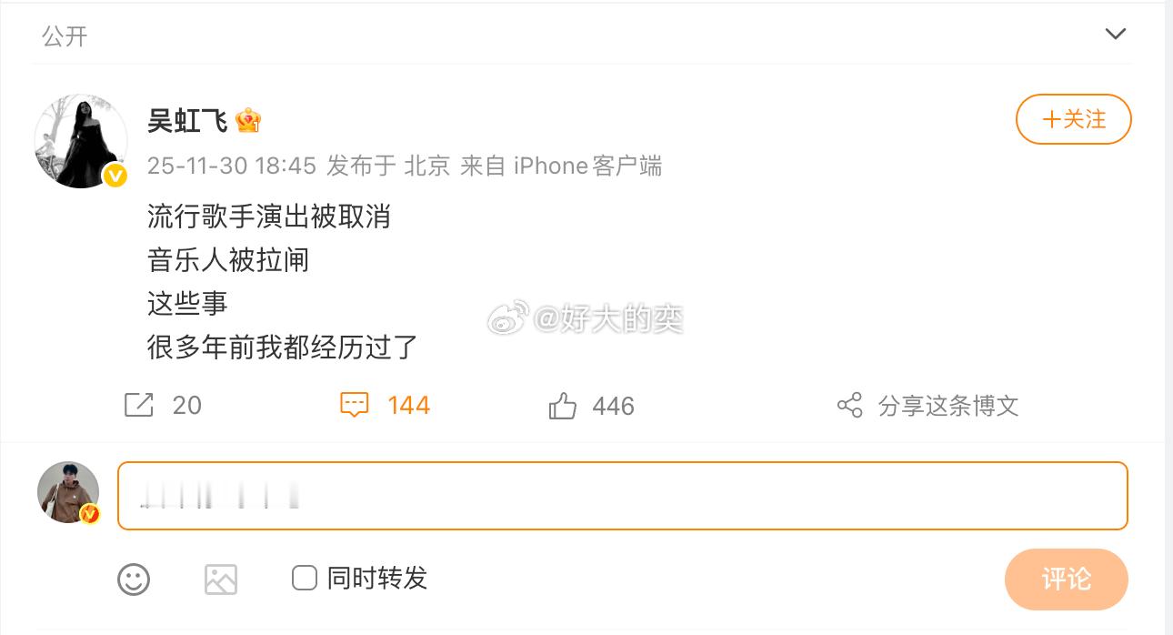 「流行歌手演出被取消、音乐人被拉闸」这事有什么出奇的吗?郑伊健在日本演出也被取消了,也是写了「不可抗力因素」,我怎么没看到有人去批判日本呢?一个滨崎步,被取消了演出,反倒一群人凑上去喊「契约精神」。甚者如图1里的吴虹飞,别光说你的演出被取消、被拉闸的结果,你倒是说说当年事情的来龙去脉啊。昨天看到说得没错,有些明星(连带大陆这边)表面一套,背地一套。你哪天真去揭开他们的面孔,你会发现,有些人完全就是香蕉人。